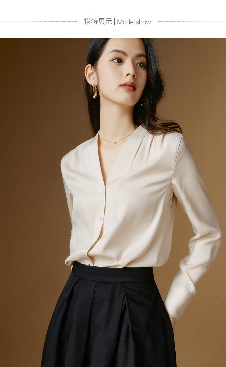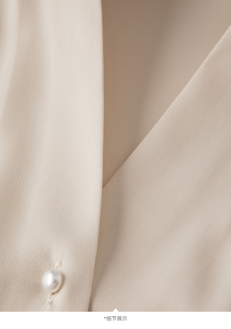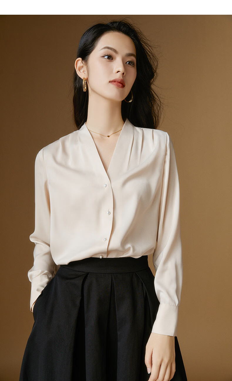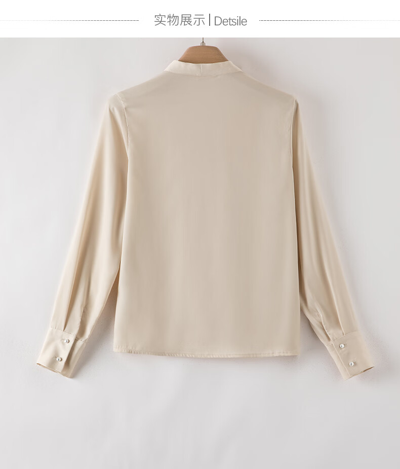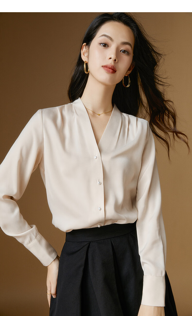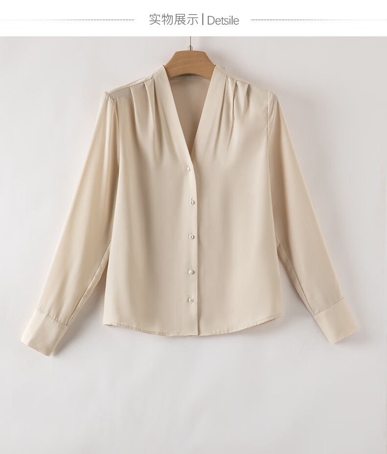 晚白【断码清仓】时尚气质衬衣休闲V领通勤百搭衬衫女 杏色 S