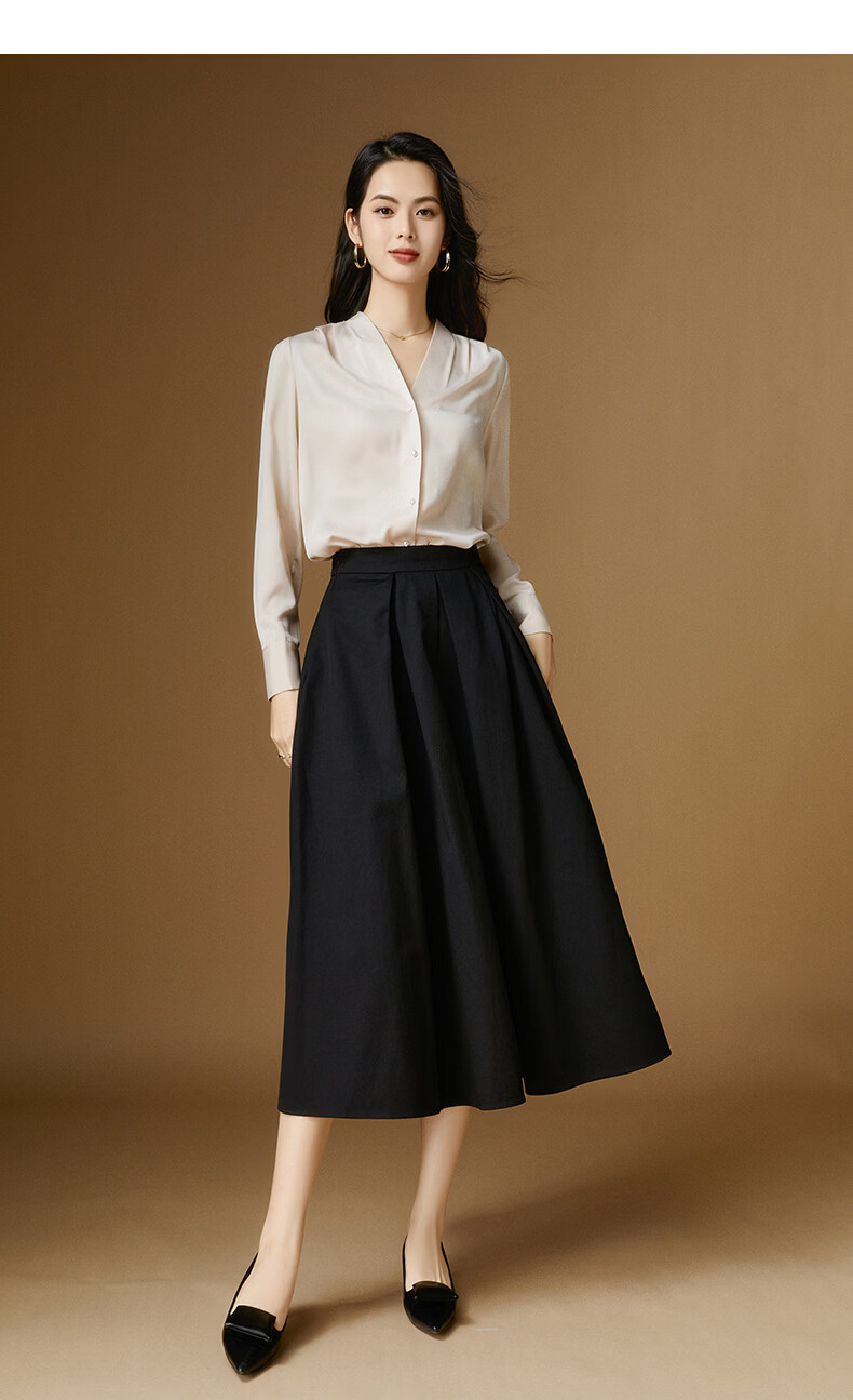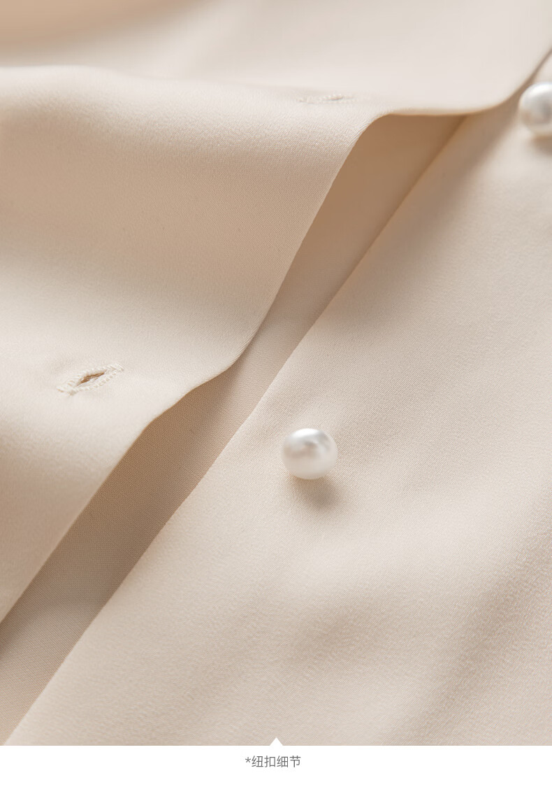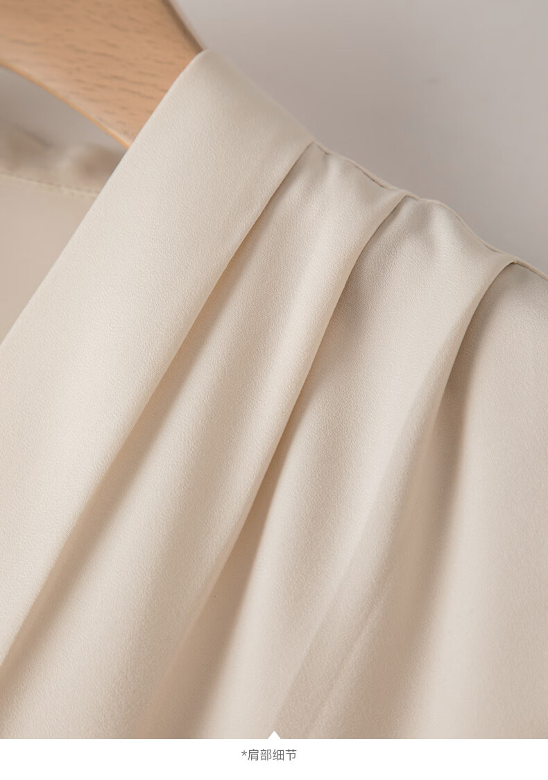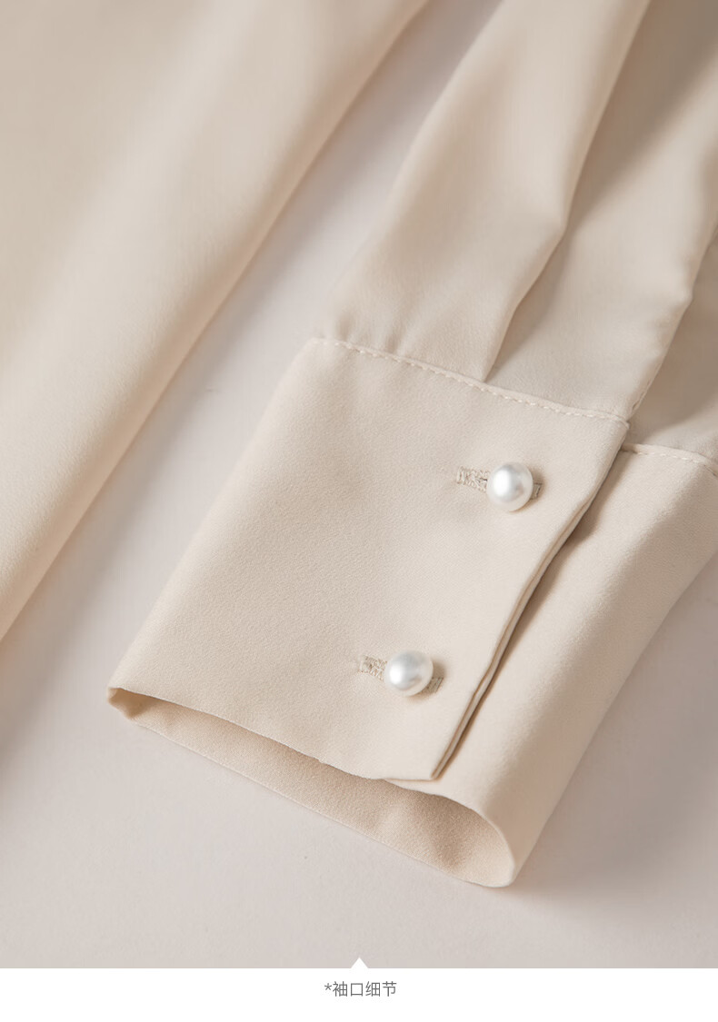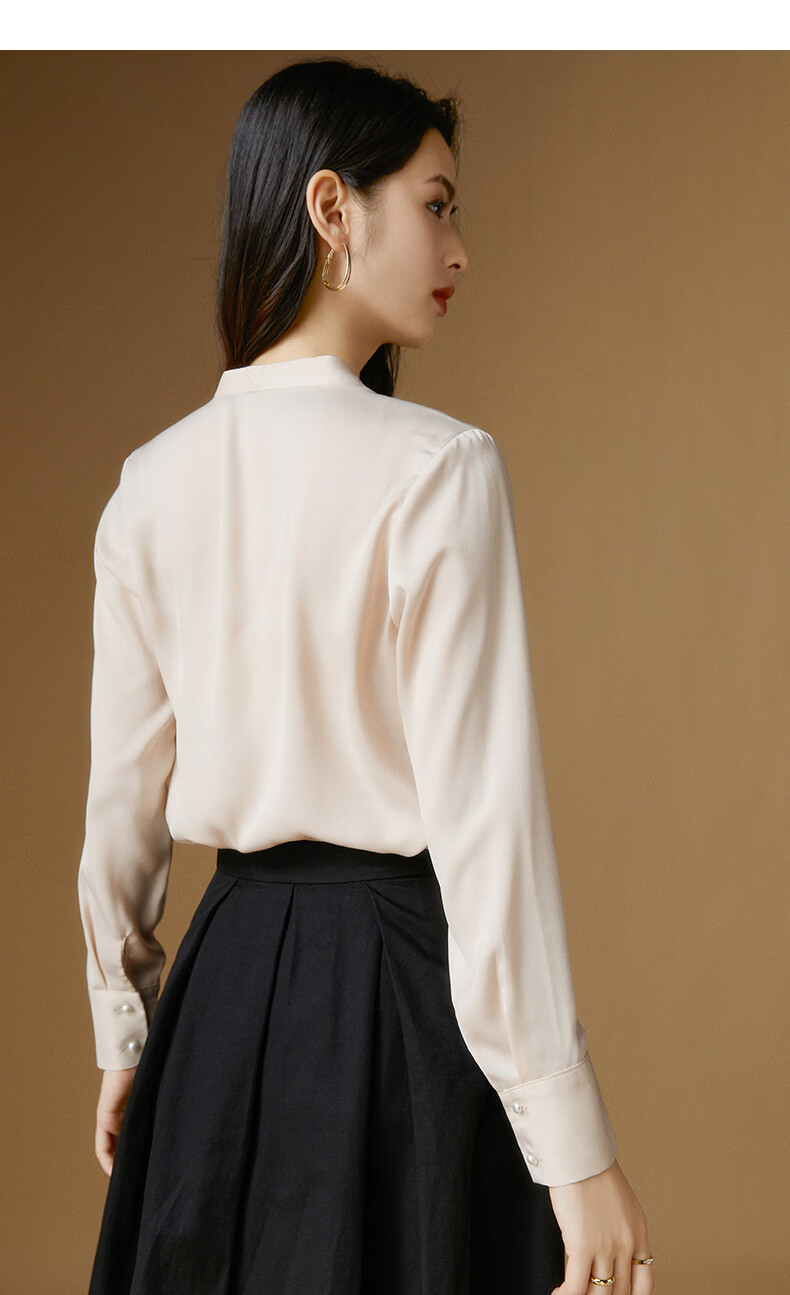 晚白【断码清仓】时尚气质衬衣休闲V领通勤百搭衬衫女 杏色 S