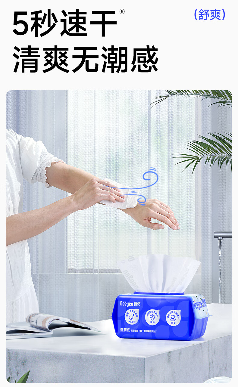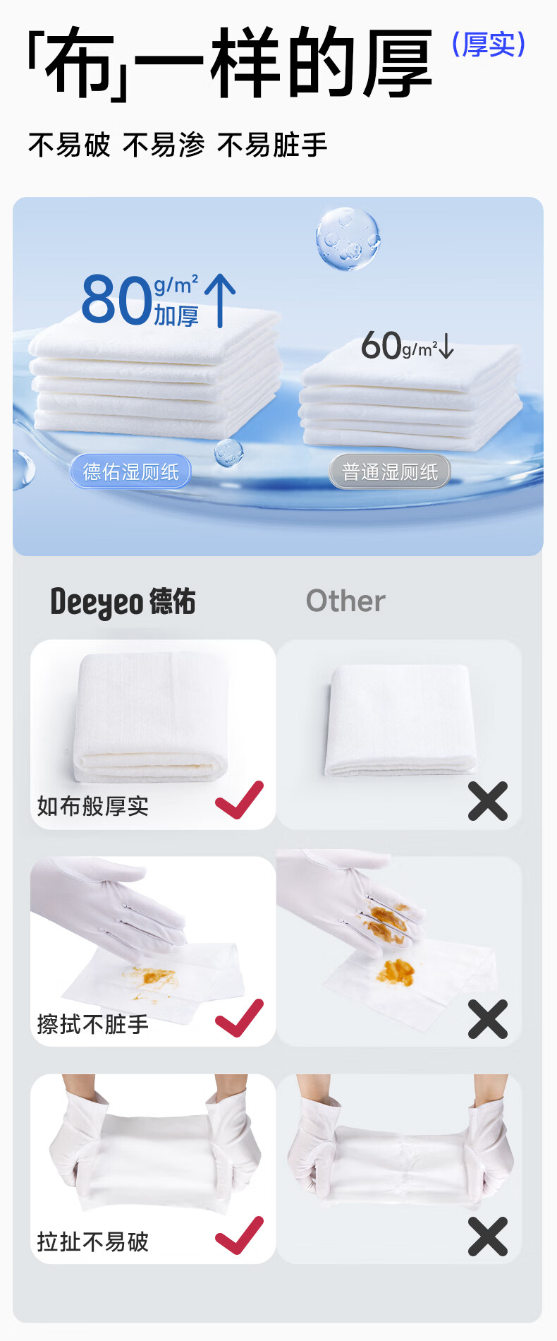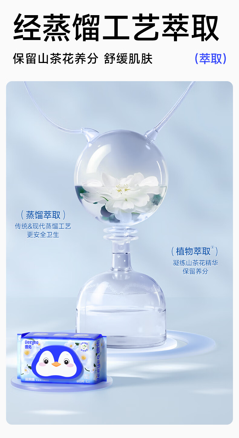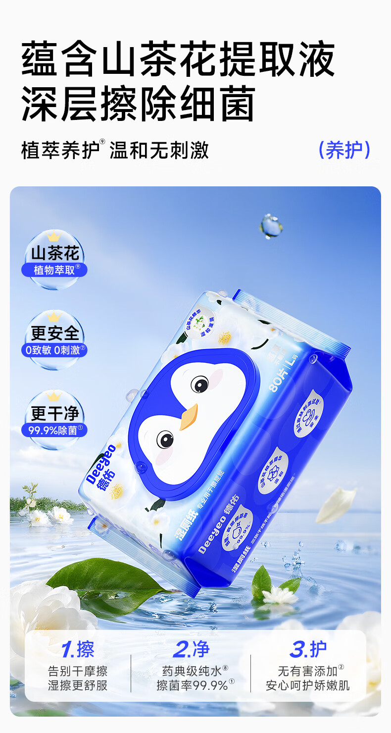 德佑山茶花湿厕纸尝新装80抽*3包 经期厕纸湿巾洁厕如厕湿纸 温和亲肤