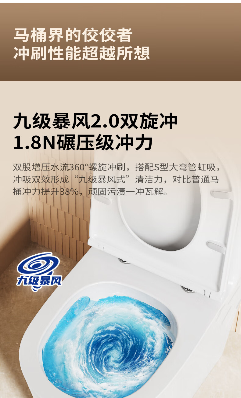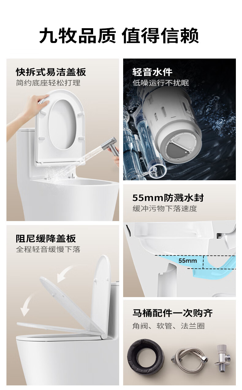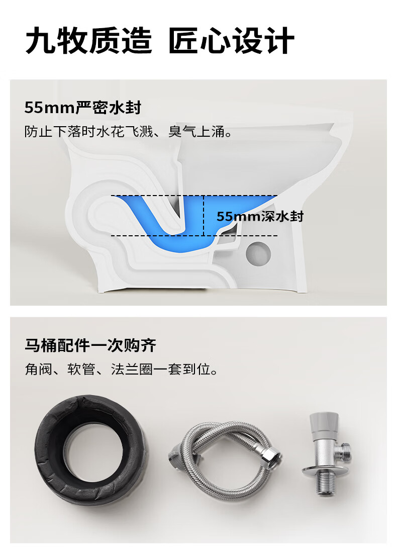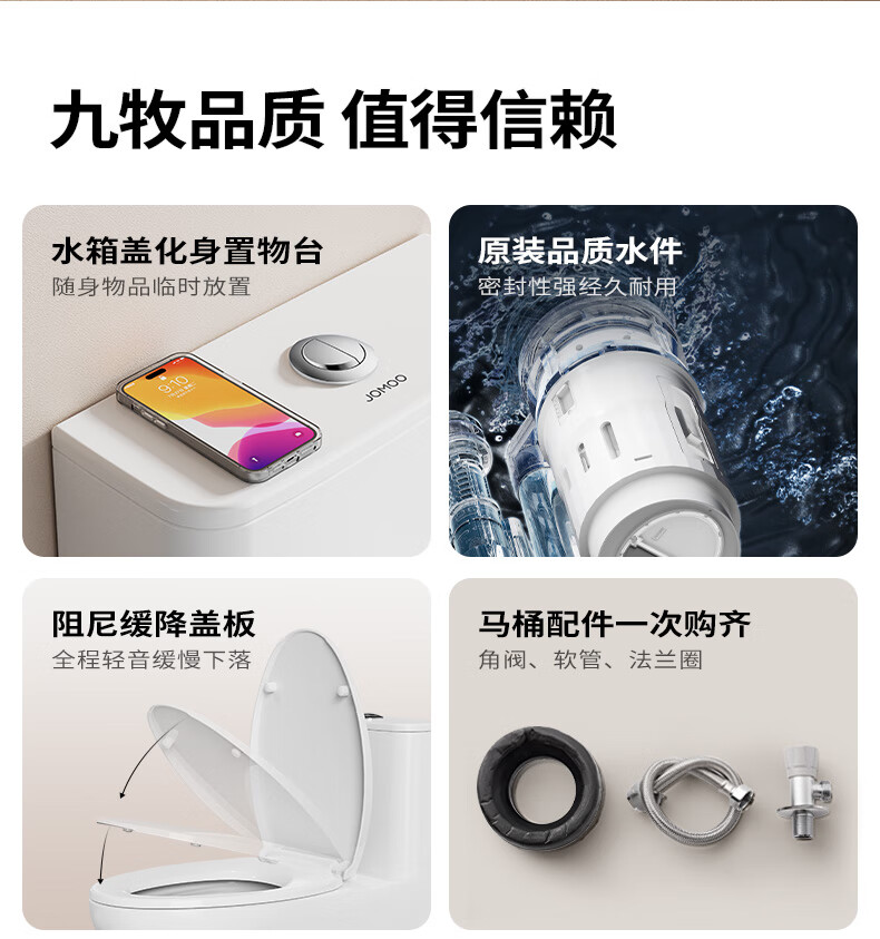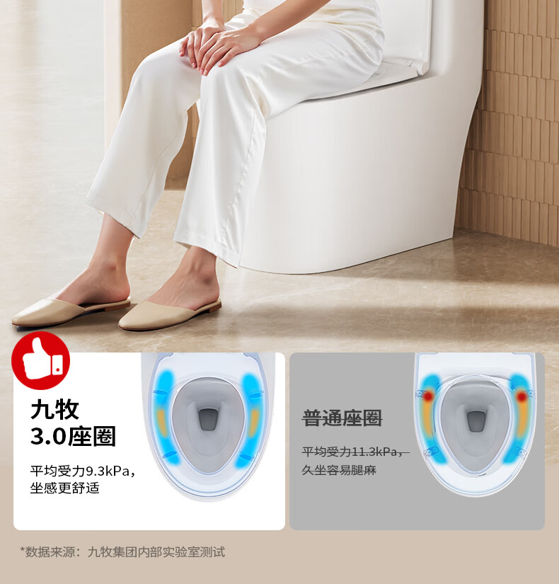 九牧(JOMOO)马桶家用防臭大冲力坐便器小户型大口径虹吸式抽水马桶陶瓷座便器 【一级水效抗菌大冲力】11264 305/300mm