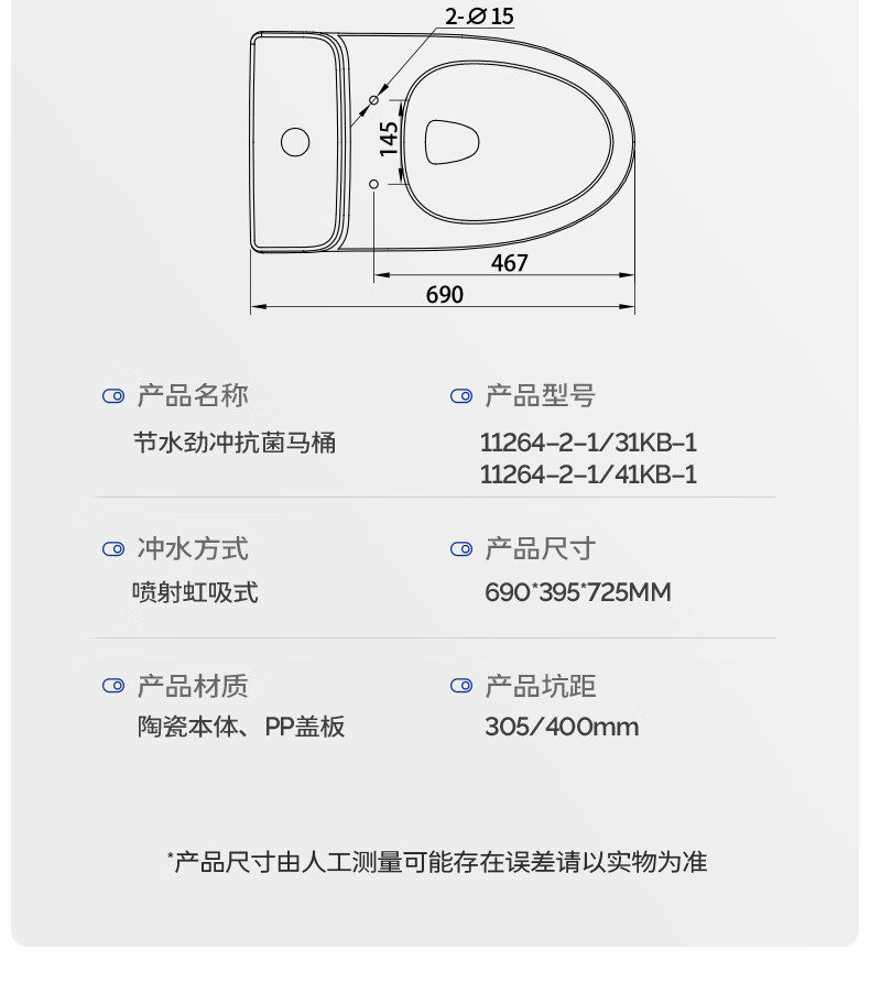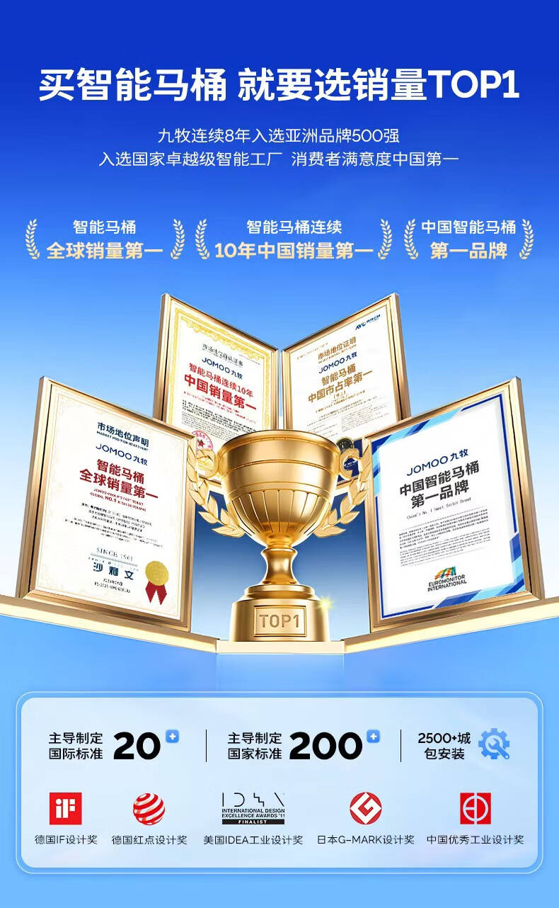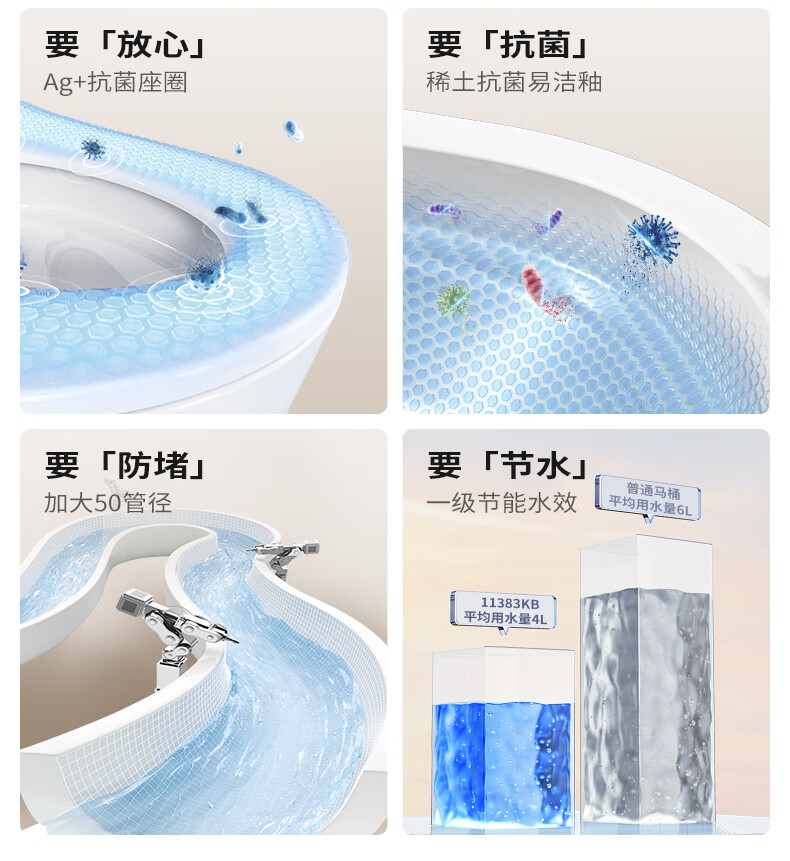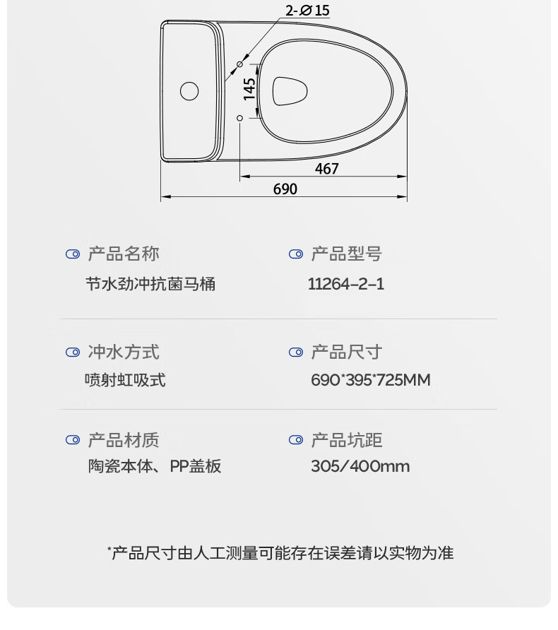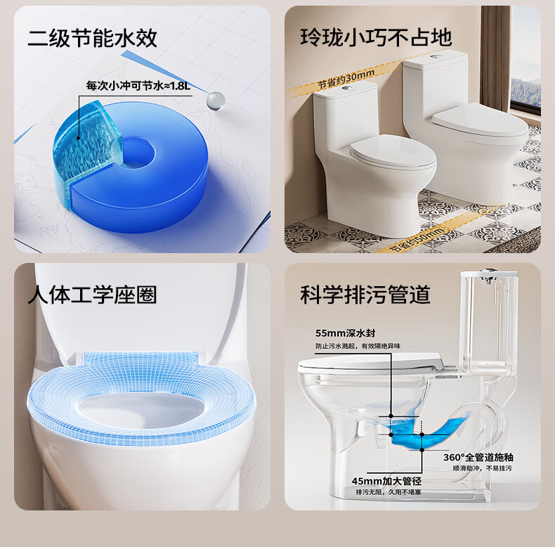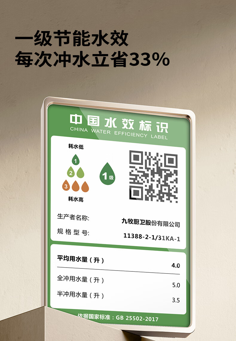 九牧(JOMOO)马桶家用防臭大冲力坐便器小户型大口径虹吸式抽水马桶陶瓷座便器 【一级水效抗菌大冲力】11264 305/300mm