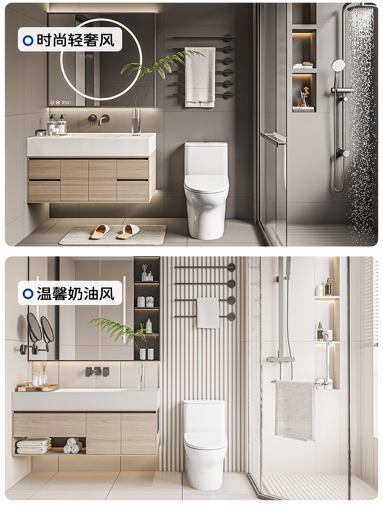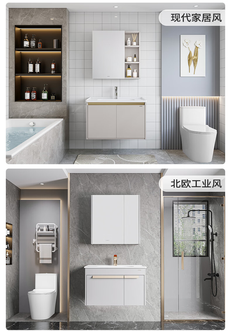 恒洁(HEGII)浴室柜E0级陶瓷一体盆折叠镜柜双抽BC2522(BM2201-75Q卡其灰智能