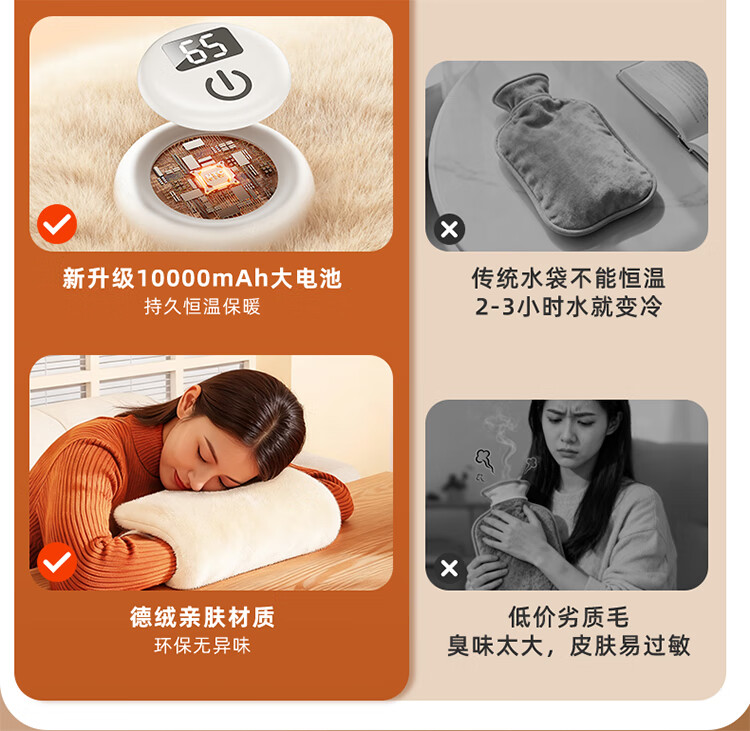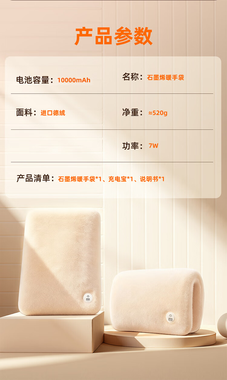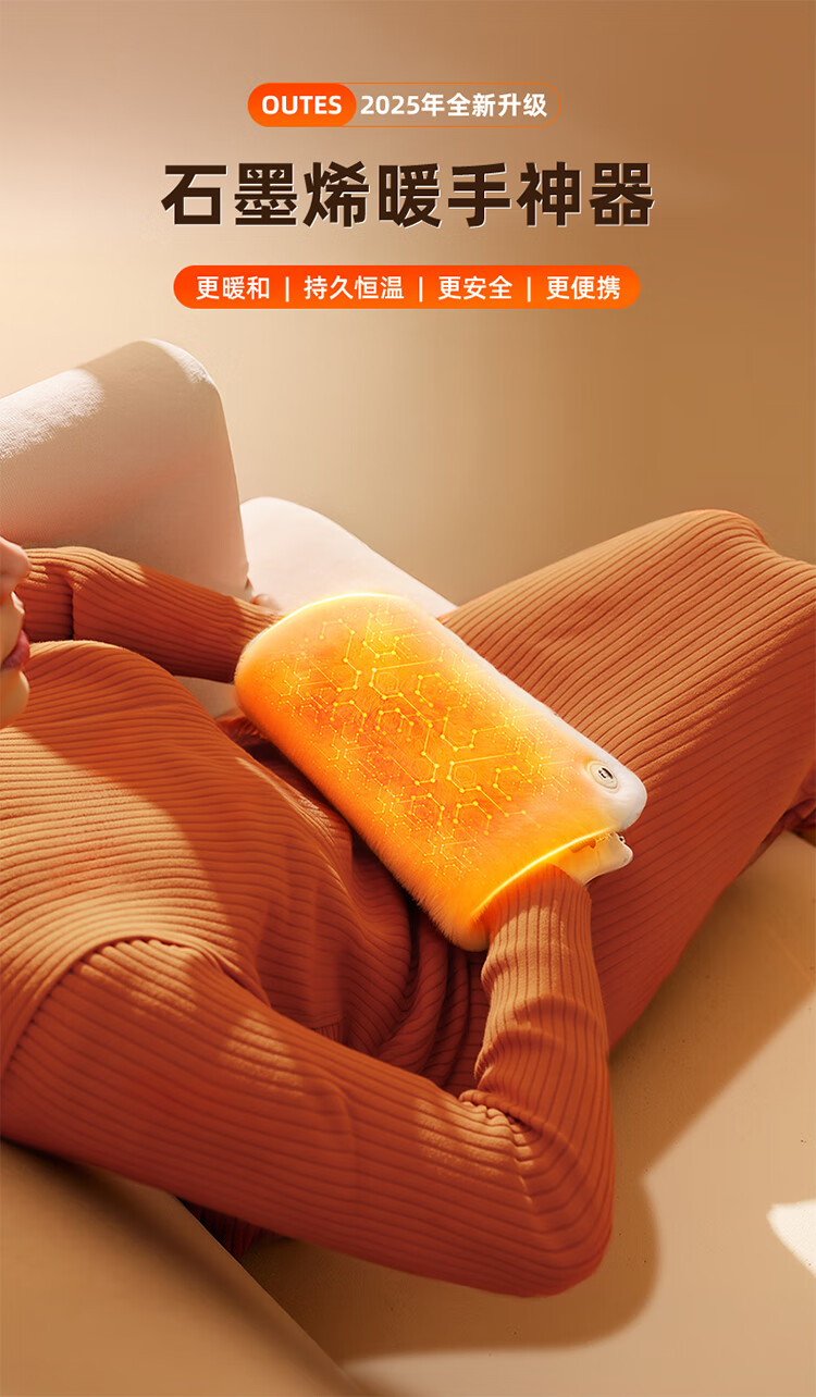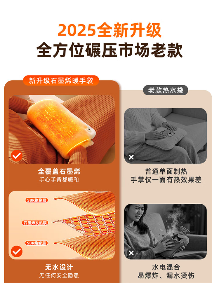 筏芯德国石墨烯暖手袋2025新款充电式热水袋暖水袋电热暖手宝暖宝热敷 【米月白-插电版】石墨烯速暖全身-优质德绒