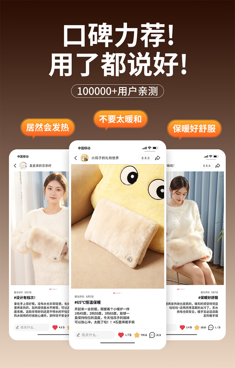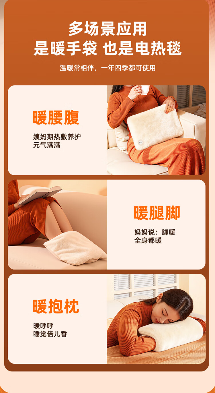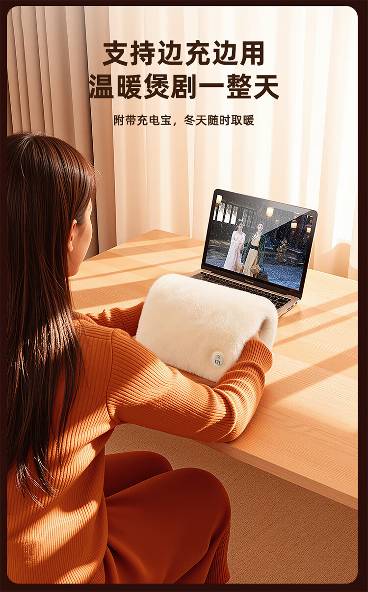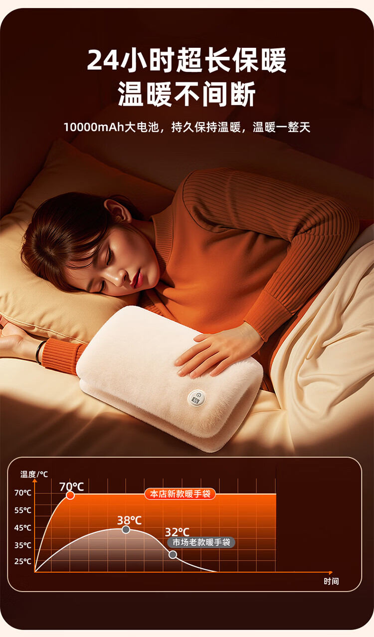 筏芯德国石墨烯暖手袋2025新款充电式热水袋暖水袋电热暖手宝暖宝热敷 【米月白-插电版】石墨烯速暖全身-优质德绒