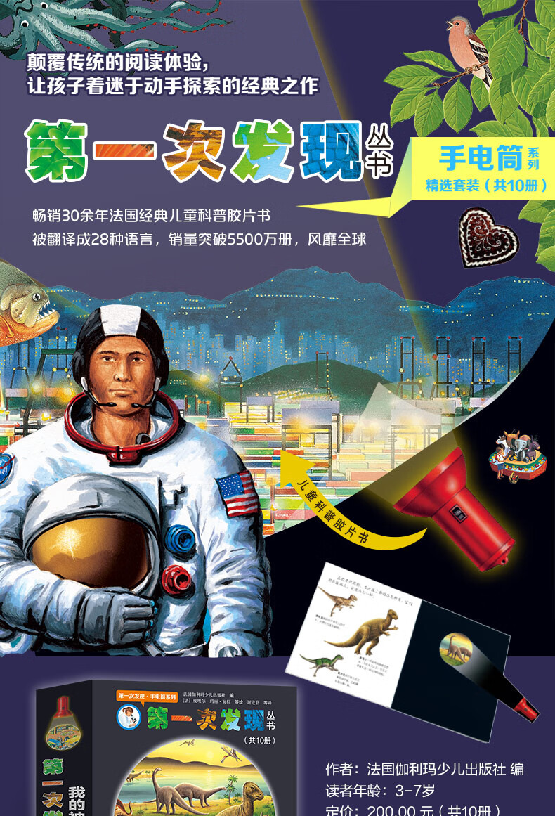 【官方直营】第一次发现丛书手电筒系列 全10册 3-6-7岁儿童科普胶片益智游戏百科绘本恐龙走进森林我们的身体小学生书籍