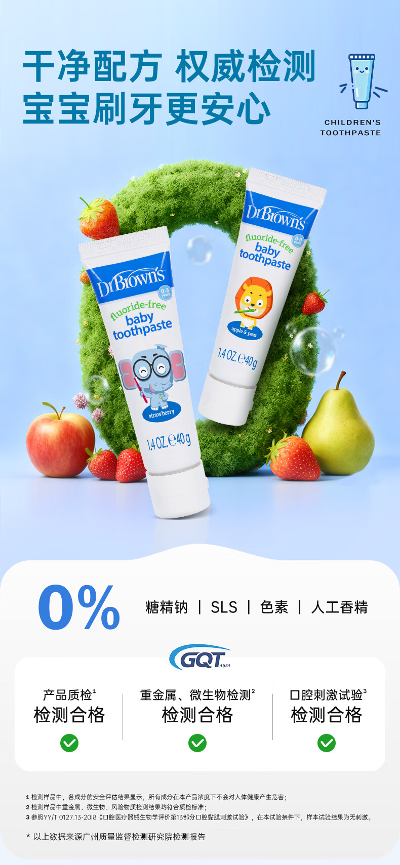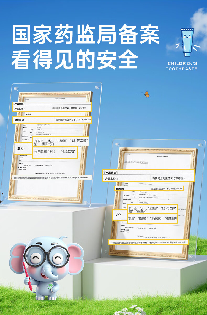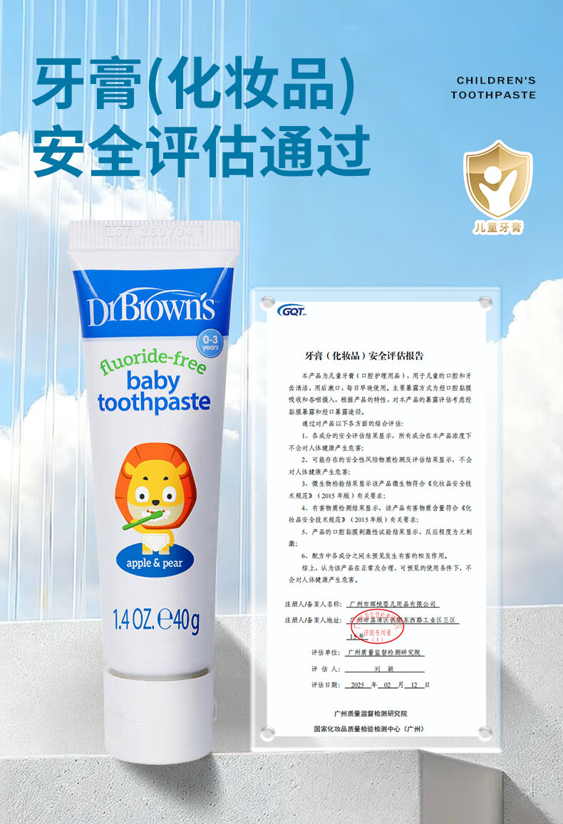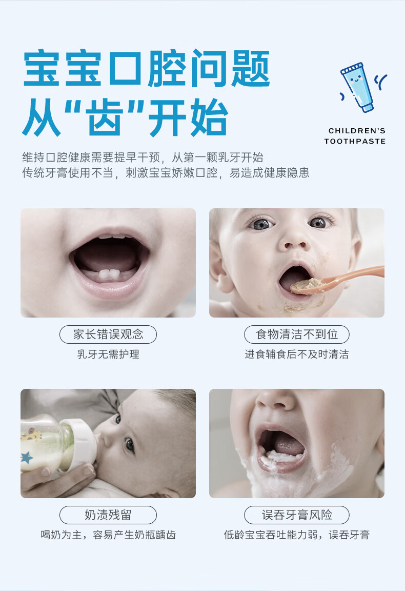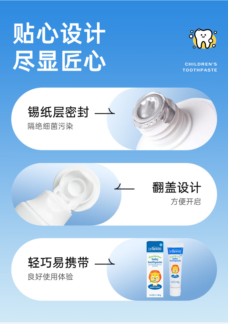 布朗博士儿童牙膏 无氟木糖醇配方防龋齿 0-3岁宝宝婴儿 双口味 牙刷组合 护齿组合1-小象牙膏+小象牙刷