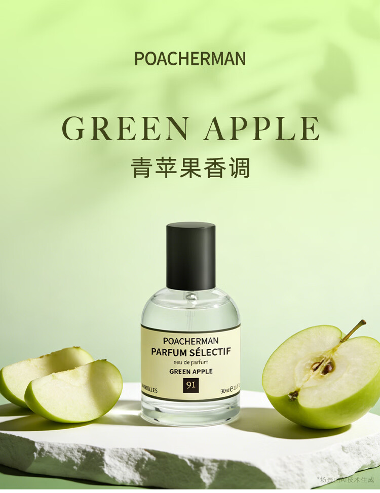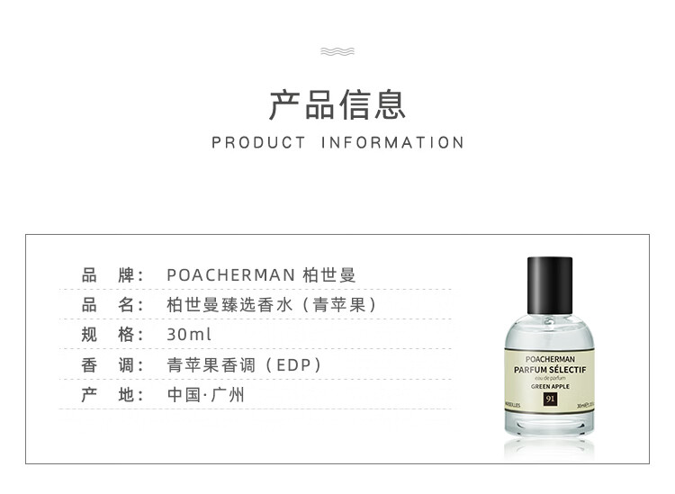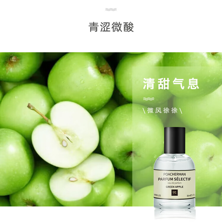 柏世曼(poacherman)青苹果味香水GREEN APPLE青苹果水果味酸甜清新持久留香中性香水 【鲜活果味】91号青苹果10ml