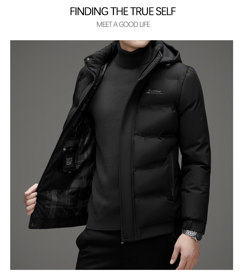 海澜之家(HLA)羽绒服男25新款立领石墨烯保暖挺括外套男冬季 黑色1A L 175/92A 推荐140-160斤