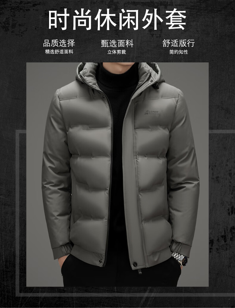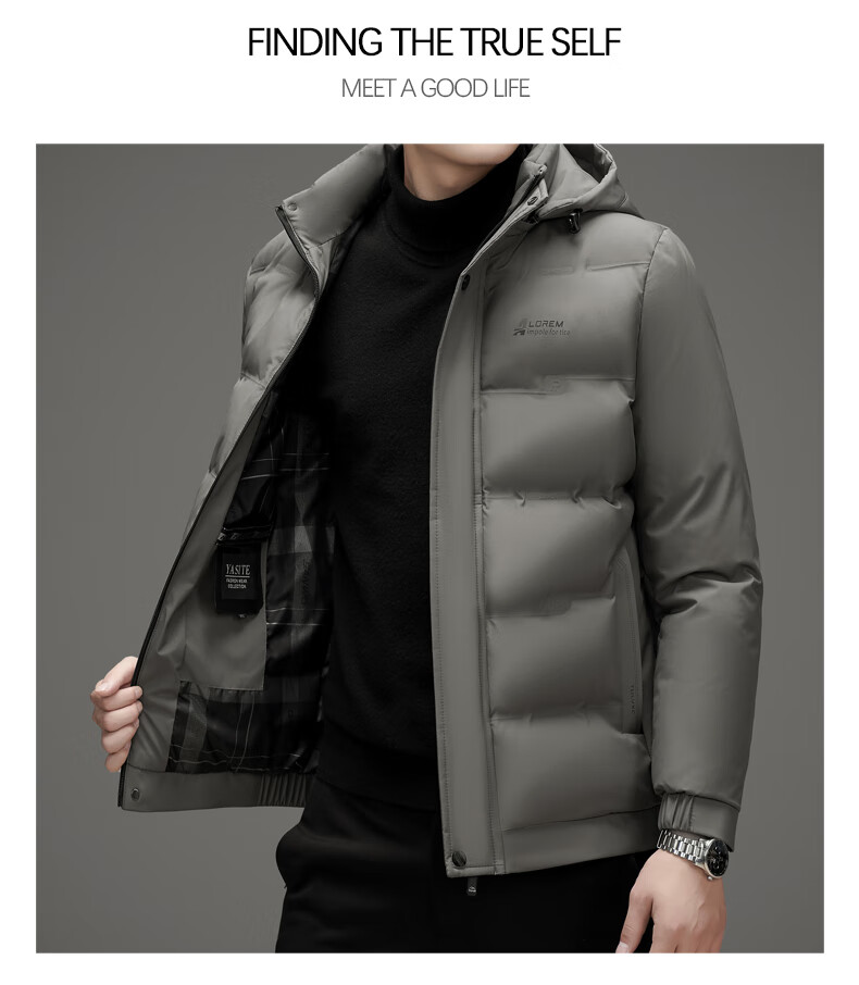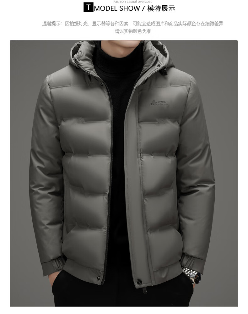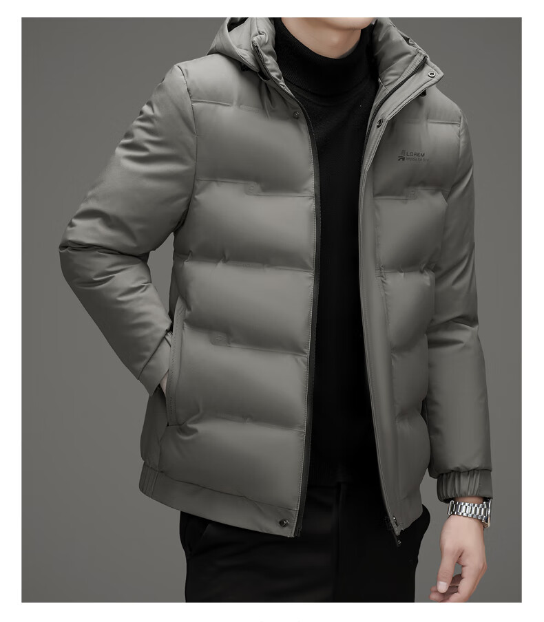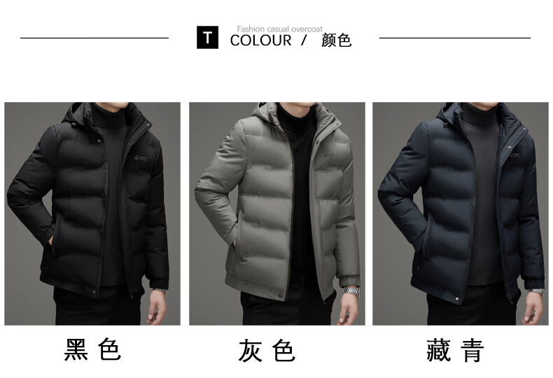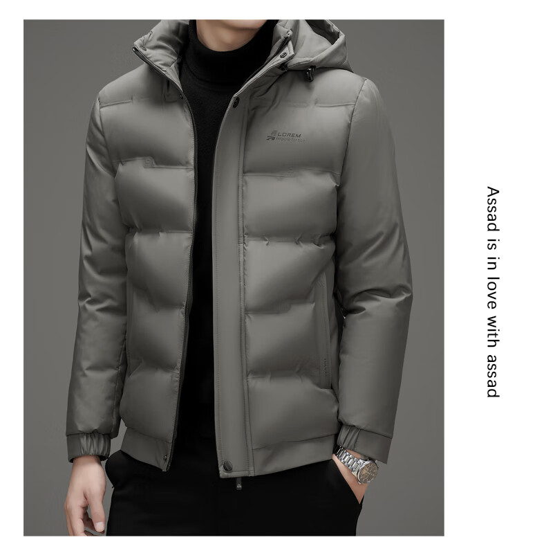 广凡阳晋江棉服男短款连帽纯色加厚高档款棉袄冬款中年宽松保暖运动外套 灰色 5XL (建议170-195斤)