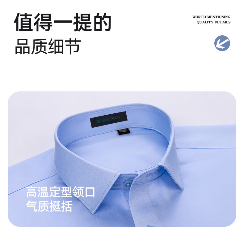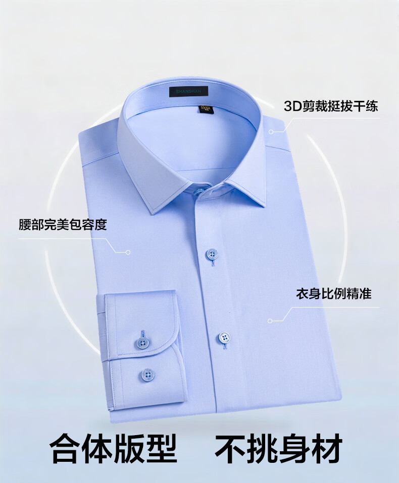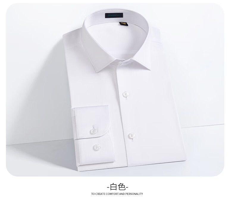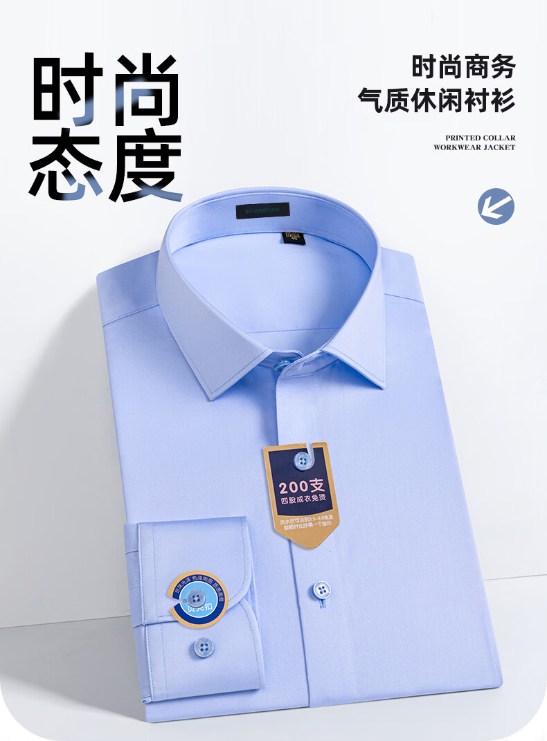 SHANSHAN杉杉【200DP免烫】长袖衬衫男纯棉春秋商务简约贝壳扣正装衬衣 白色 38