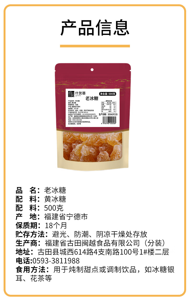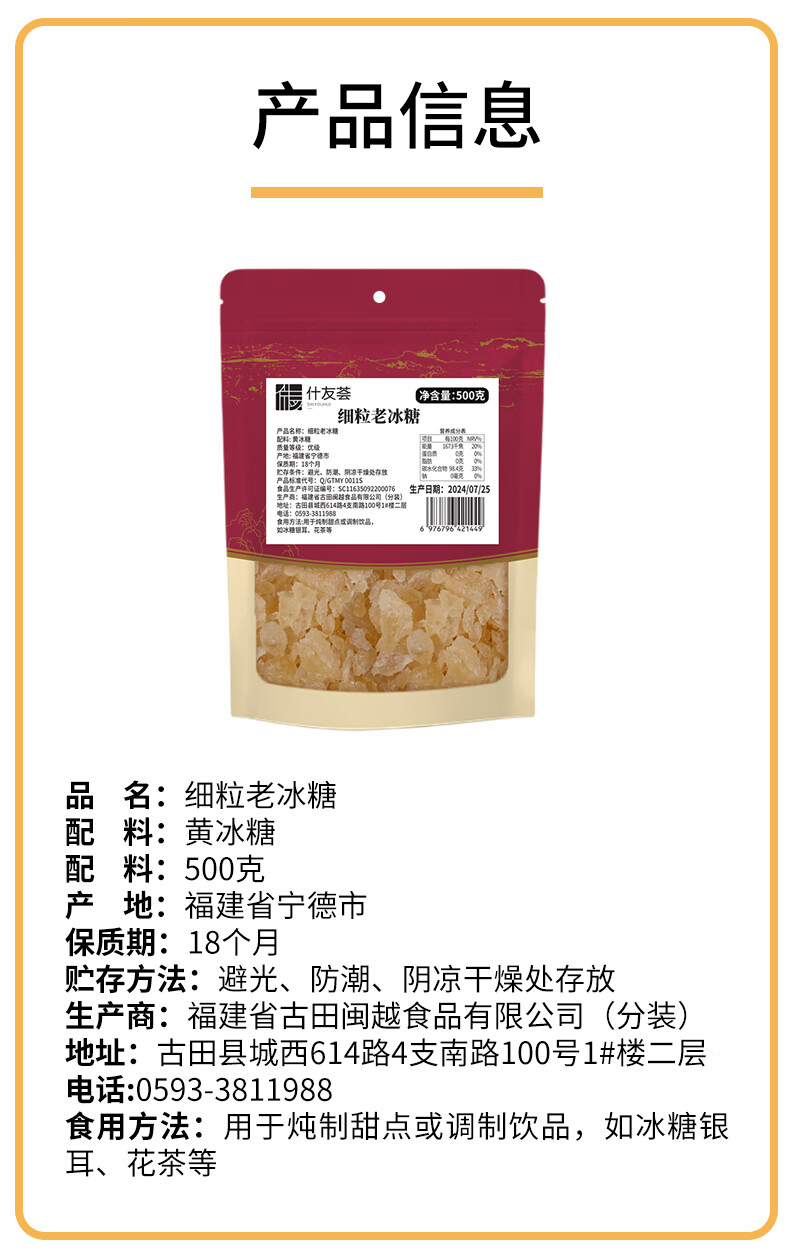 什友荟黄冰糖500g手工老冰糖细粒小块蔗糖多晶甜而不腻调味煲汤甜品正宗 【小颗粒】1斤袋装
