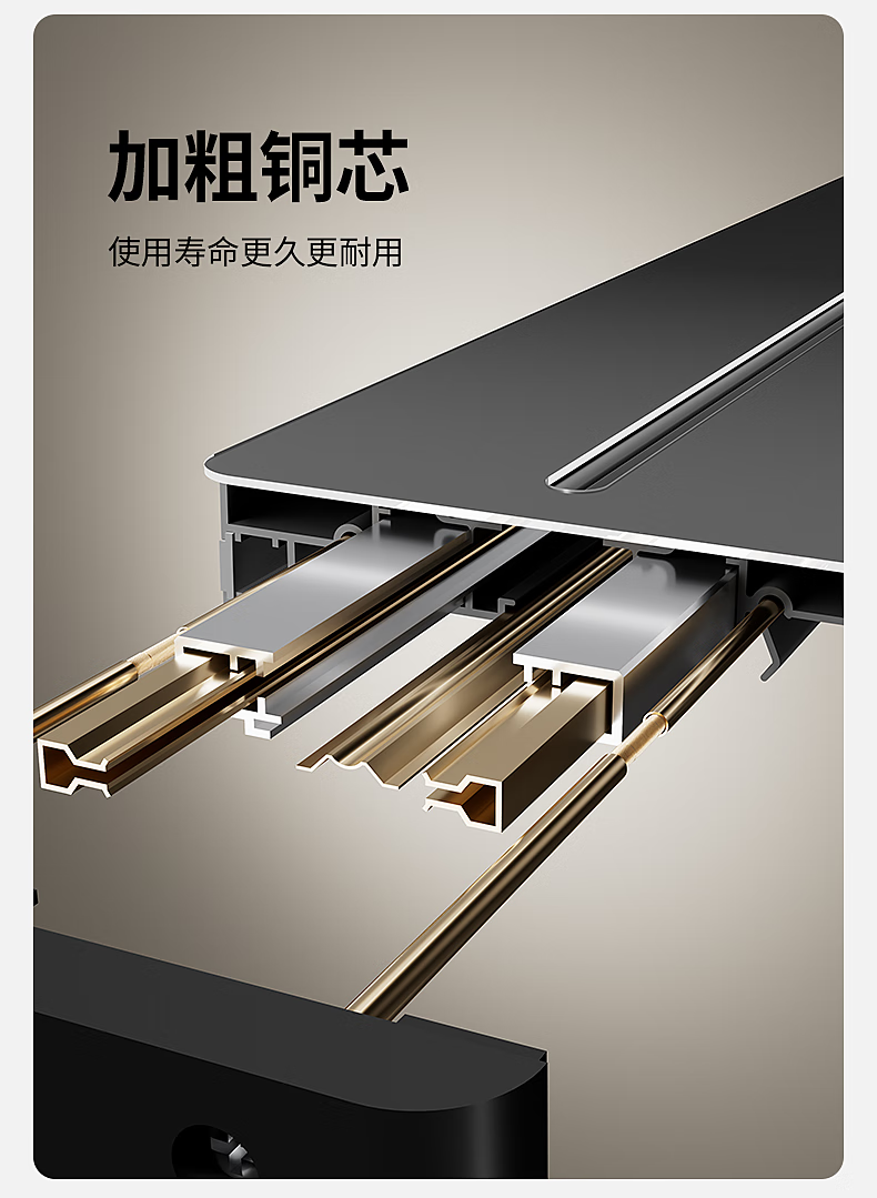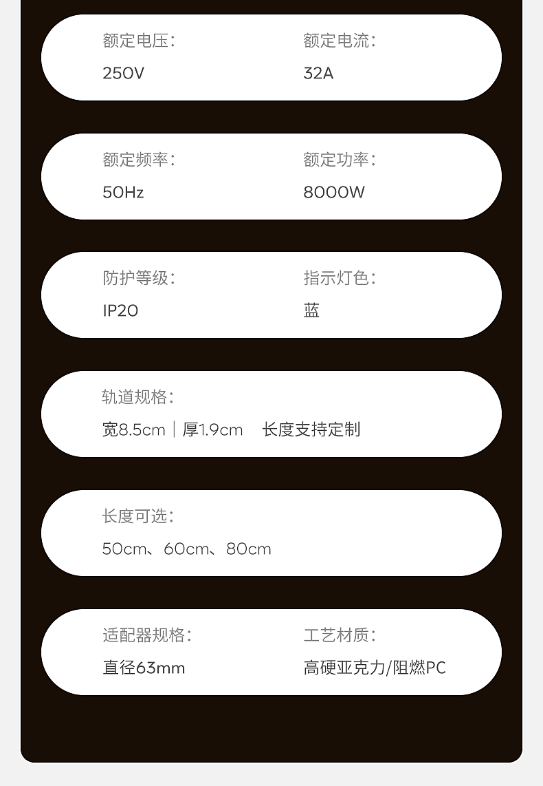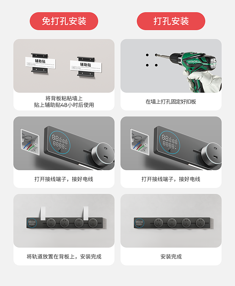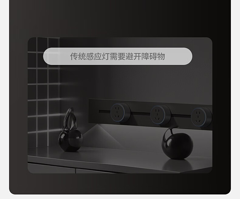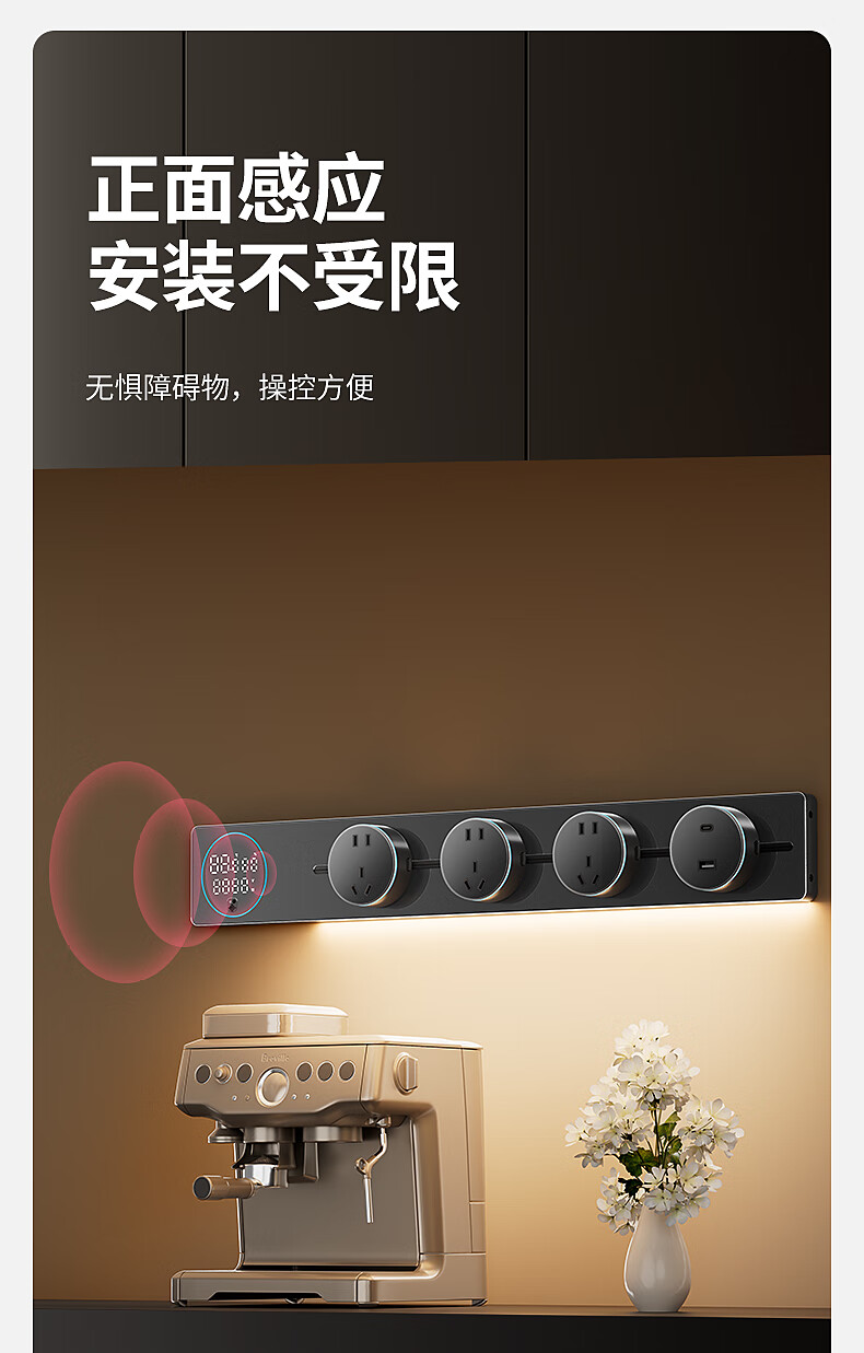 国际电工智能数显屏轨道插座带感应灯明装导轨左右接线家用厨房餐边柜滑轨 灰色 (亚克力感应灯数显轨道)60厘米+5个大五孔