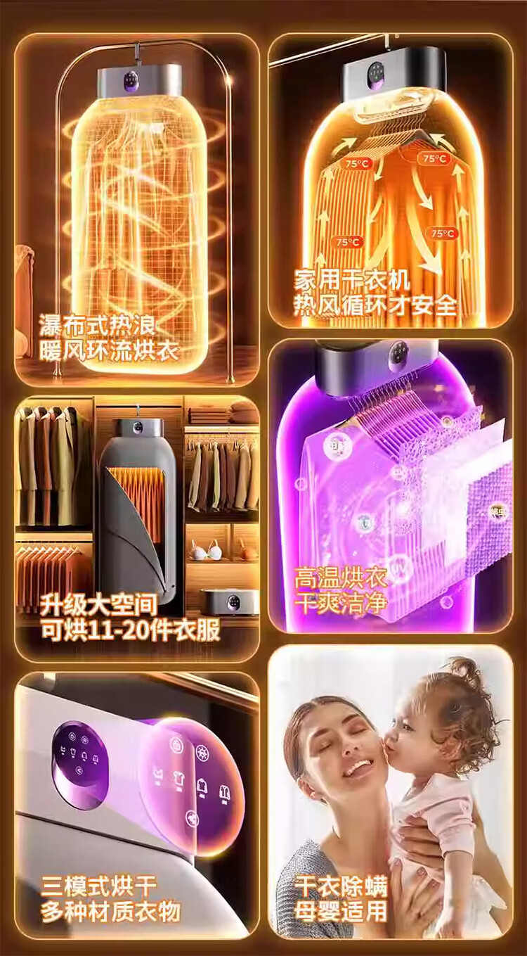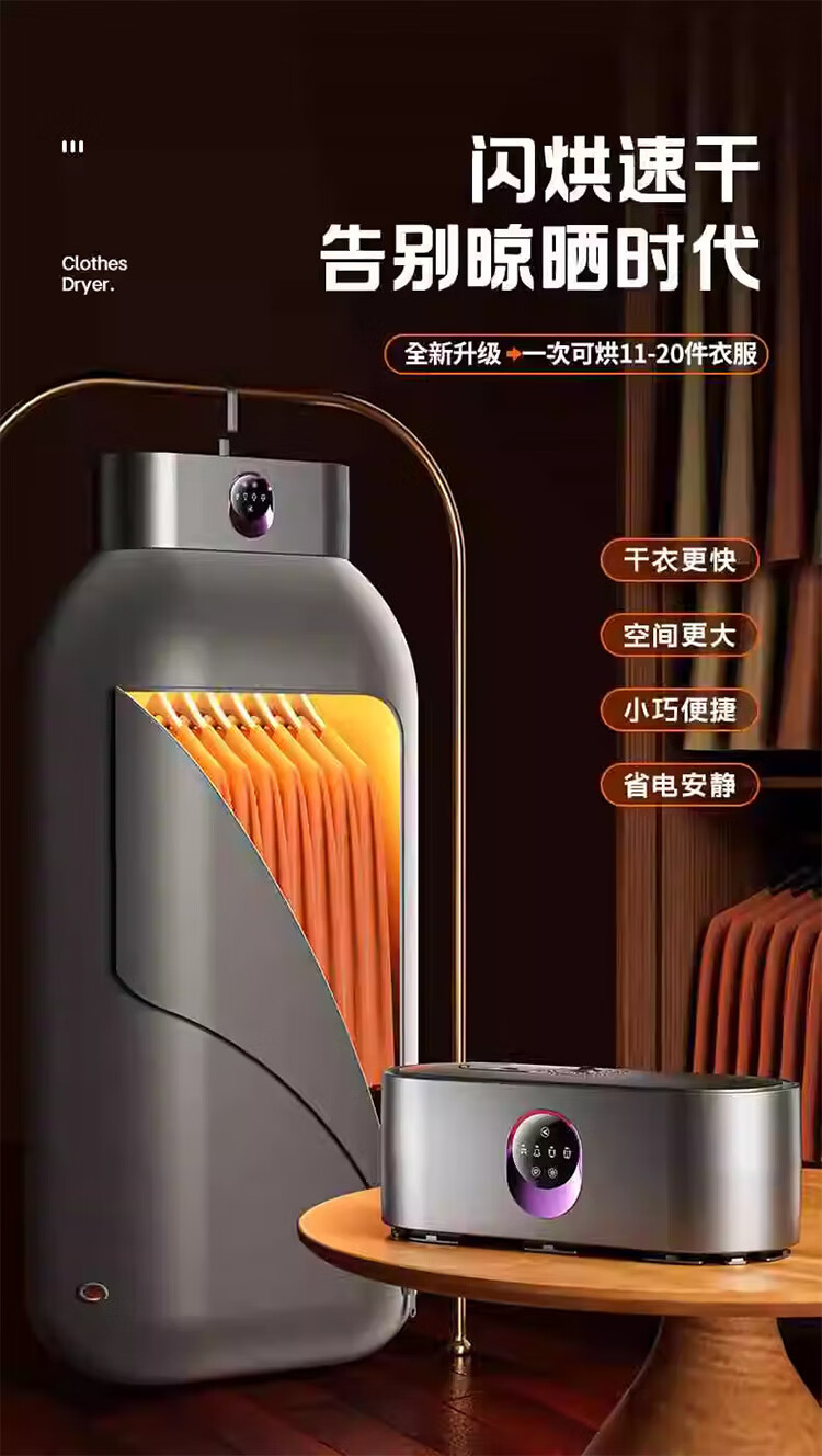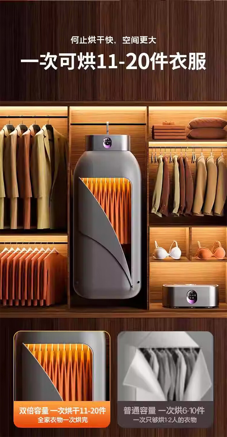筏芯德国烘干机家用2025最新款干衣机小型烘干衣柜折叠便携巴氏杀菌智能定时恒温温控干衣 【雅致灰】遥控款 闪烘速干 袪味除螨 1L
