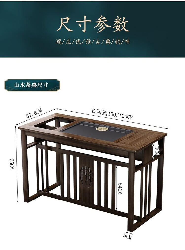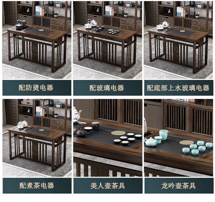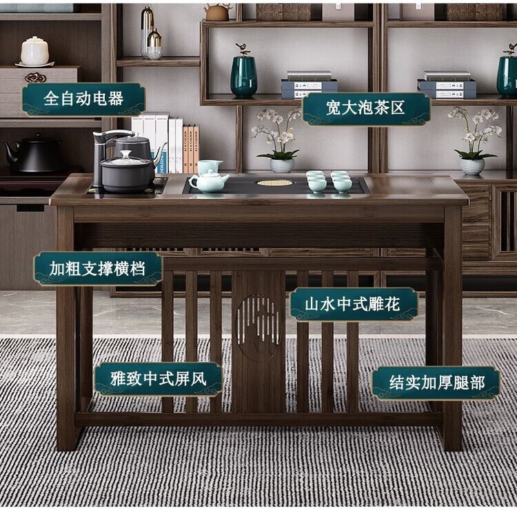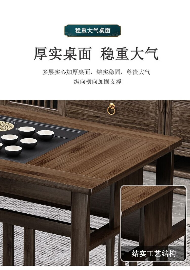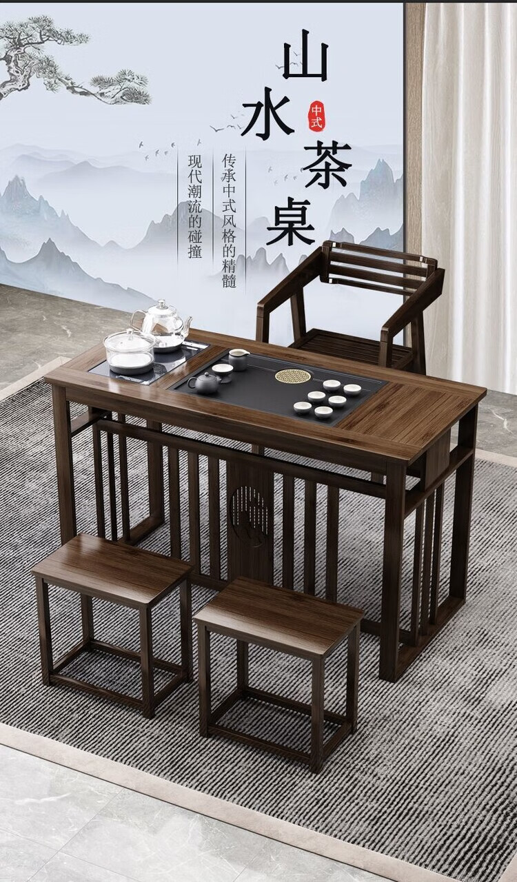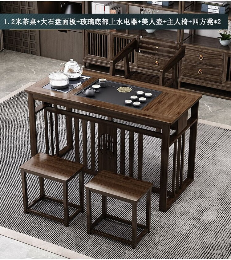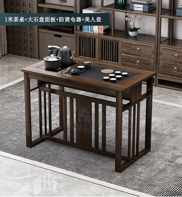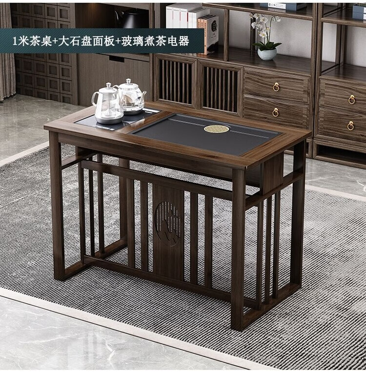 迈途森阳台喝茶桌椅组合新中式办公室家用小户型功夫茶几烧水一体泡茶台 1米茶桌 组装
