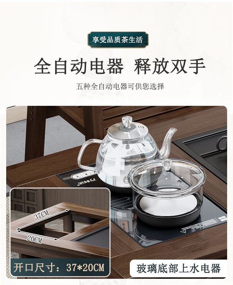 柏帝奇移动茶桌小茶台家用沙发边几非实木茶几茶具套装烧水壶一体茶水柜 65款-无盖板