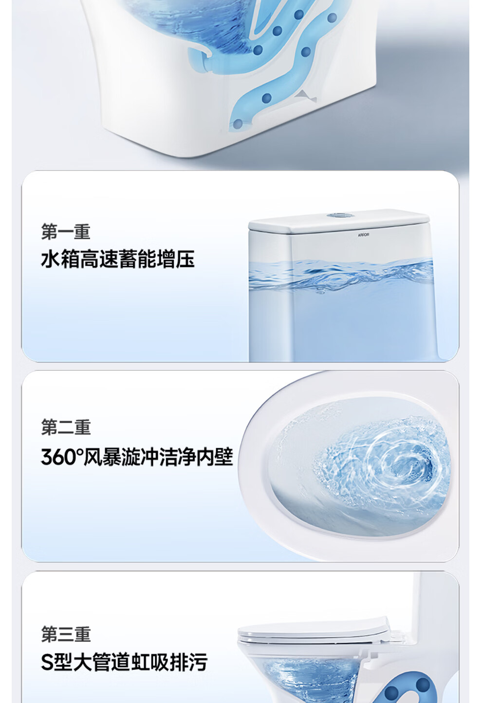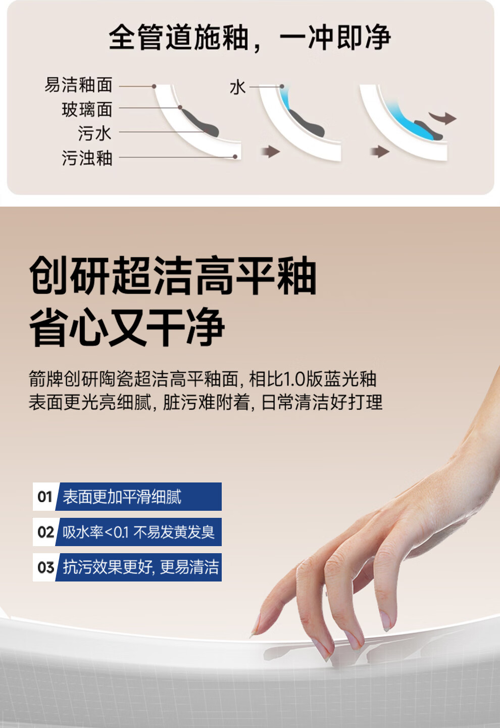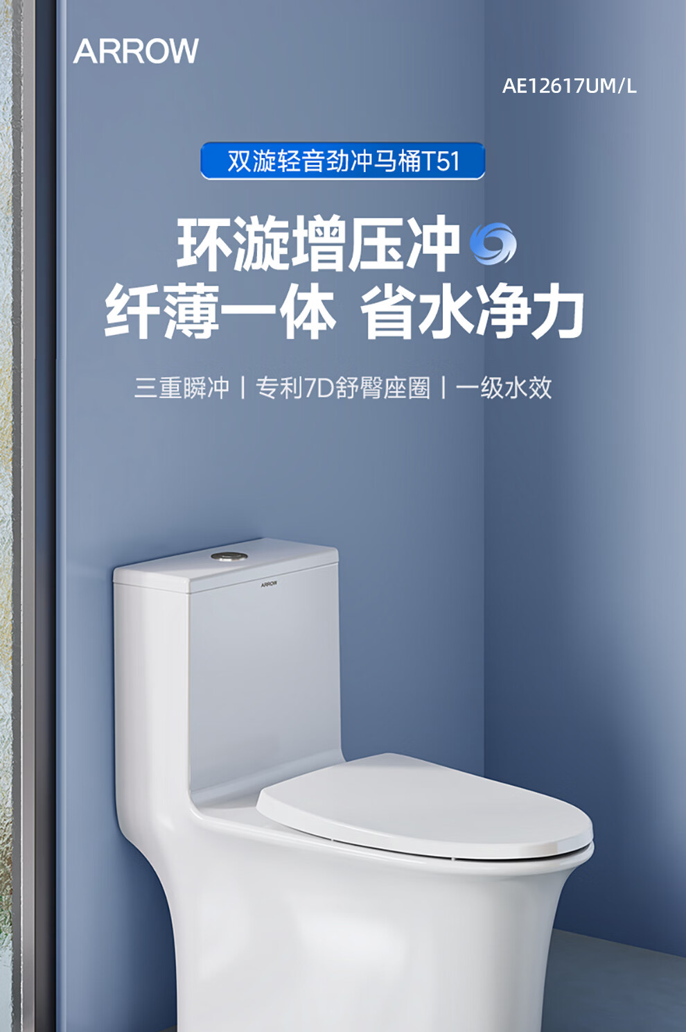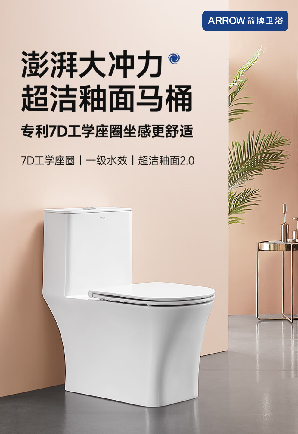 箭牌(ARROW)马桶家用大冲力人体工学座圈喷射虹吸防臭防堵一级水效抽水坐便器 大冲力人体工学座圈1182U 400mm