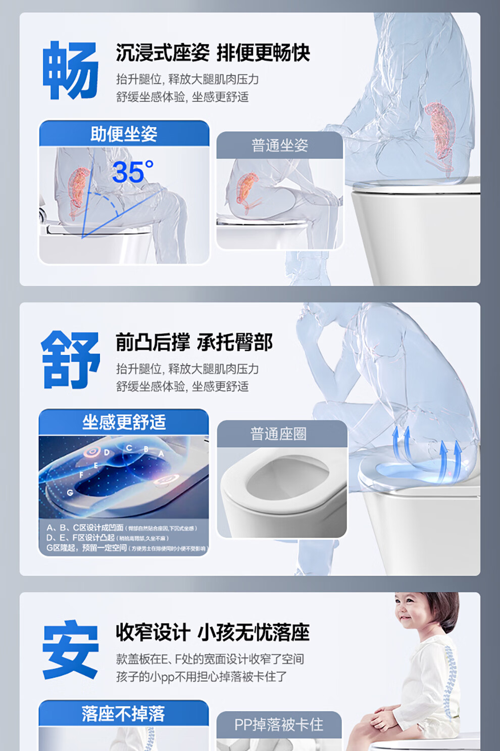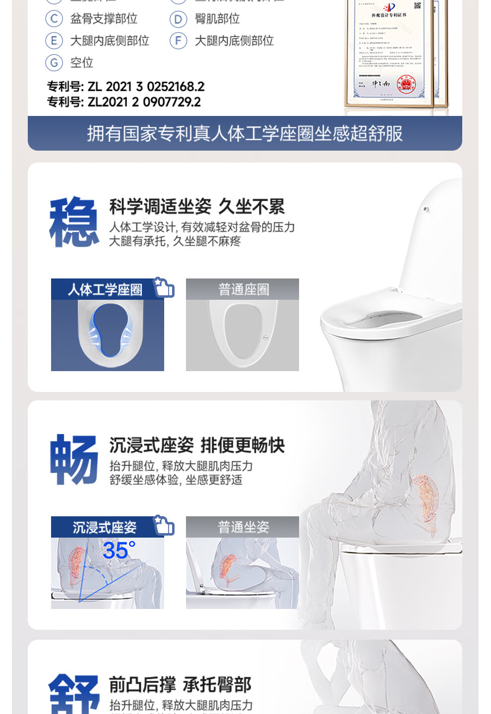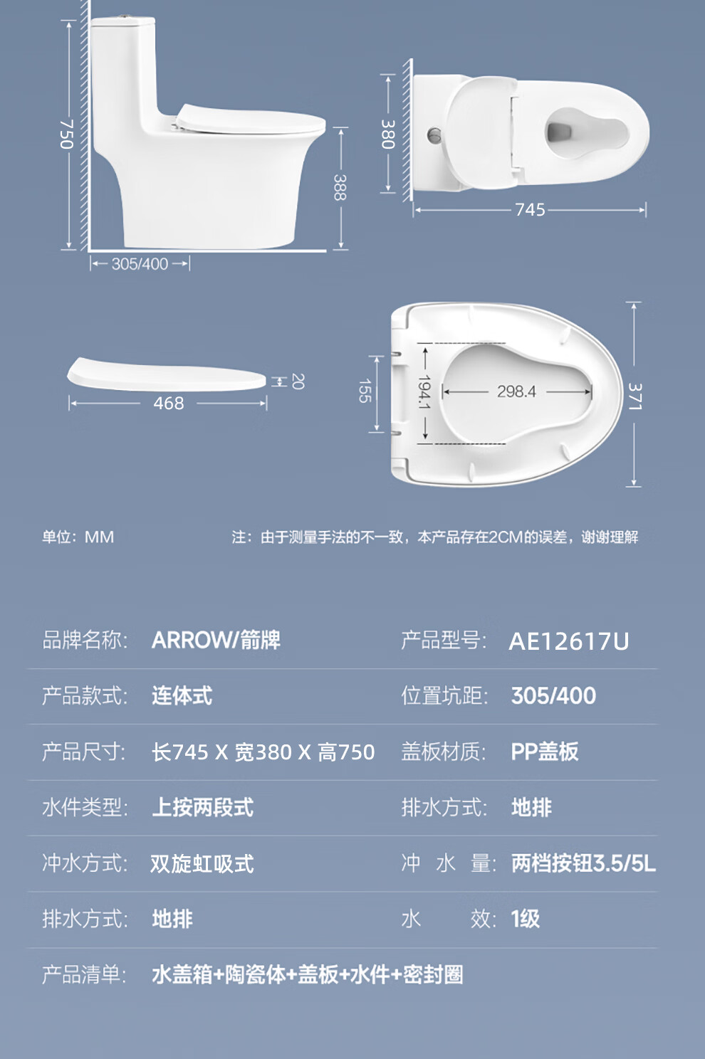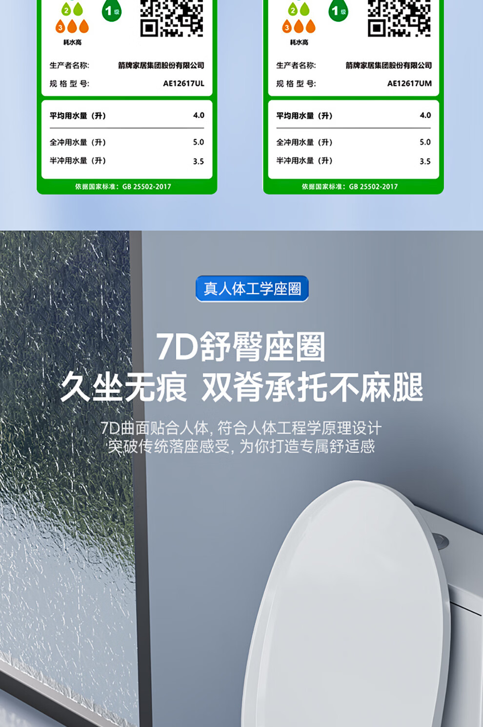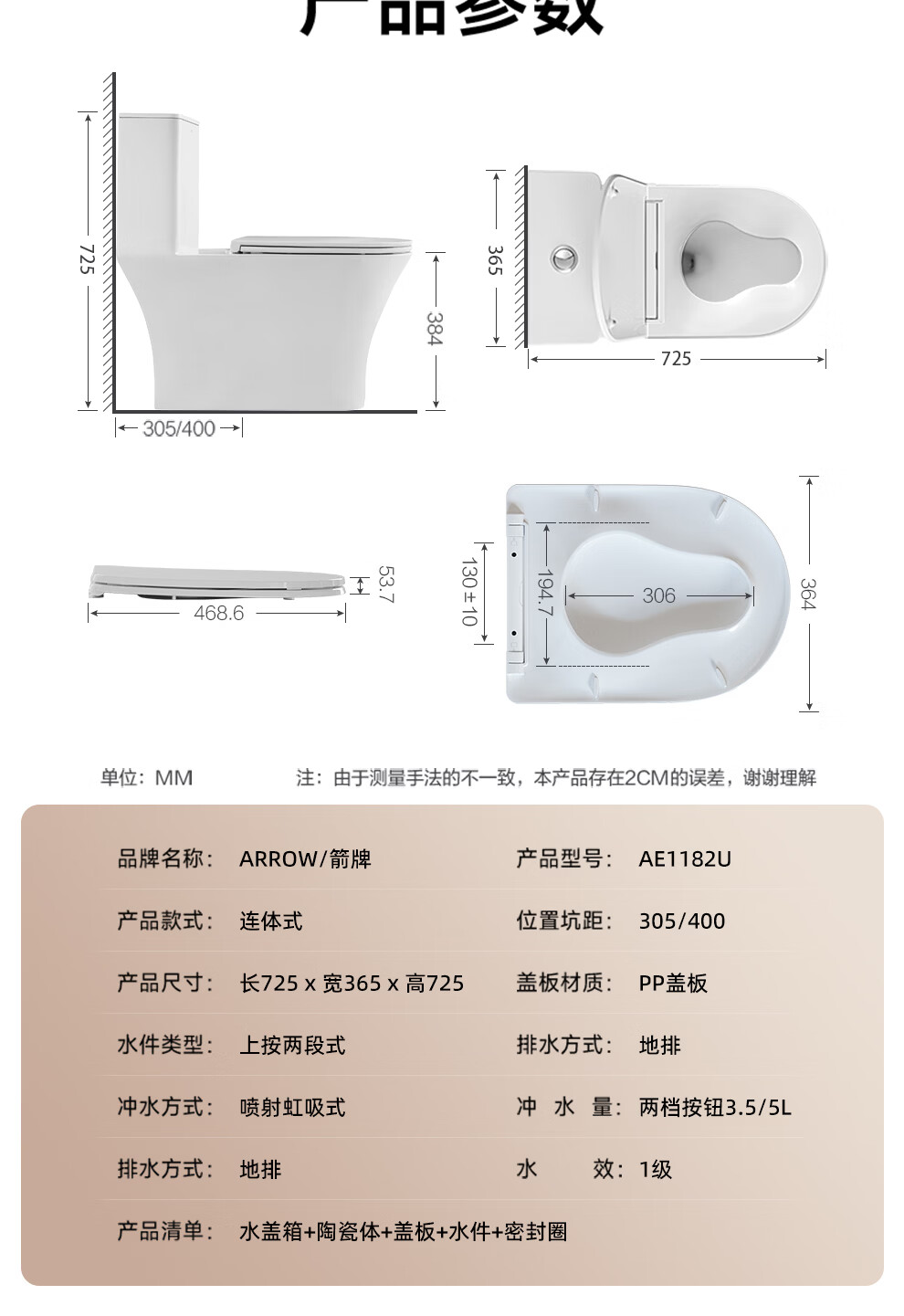 箭牌(ARROW)马桶家用大冲力人体工学座圈喷射虹吸防臭防堵一级水效抽水坐便器 大冲力人体工学座圈1182U 400mm