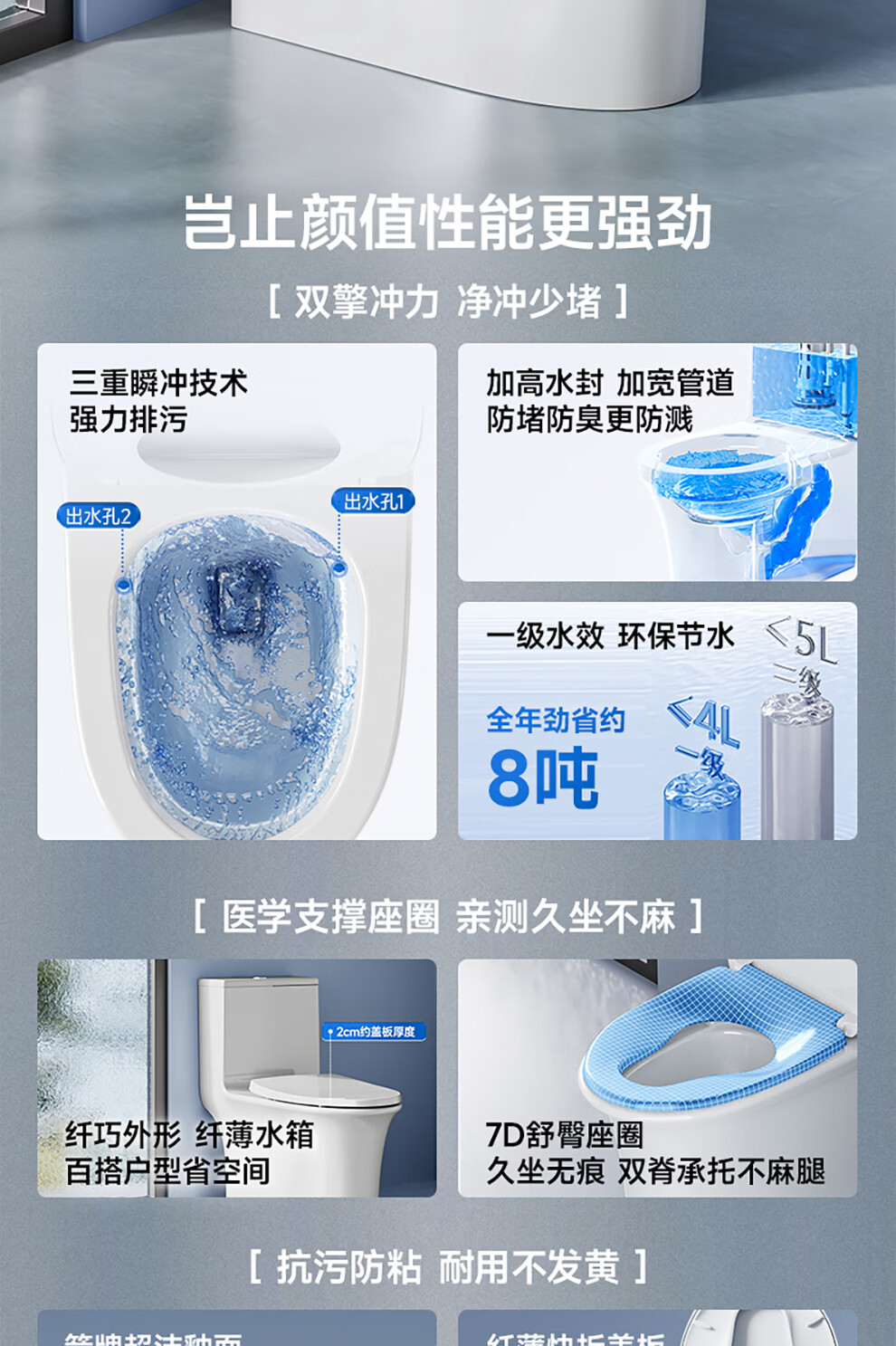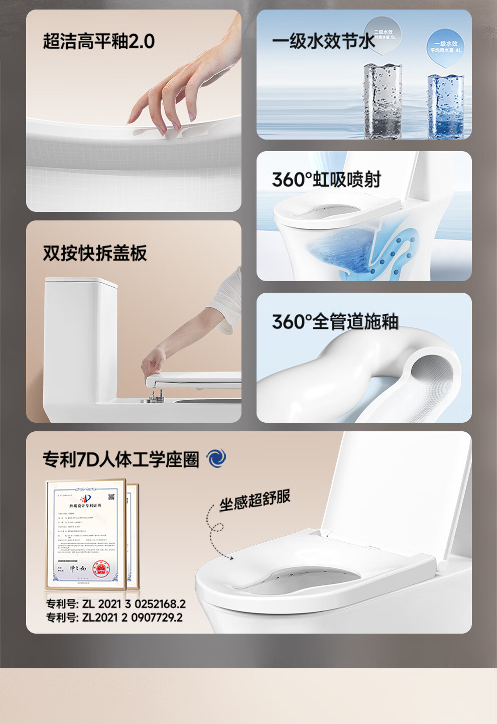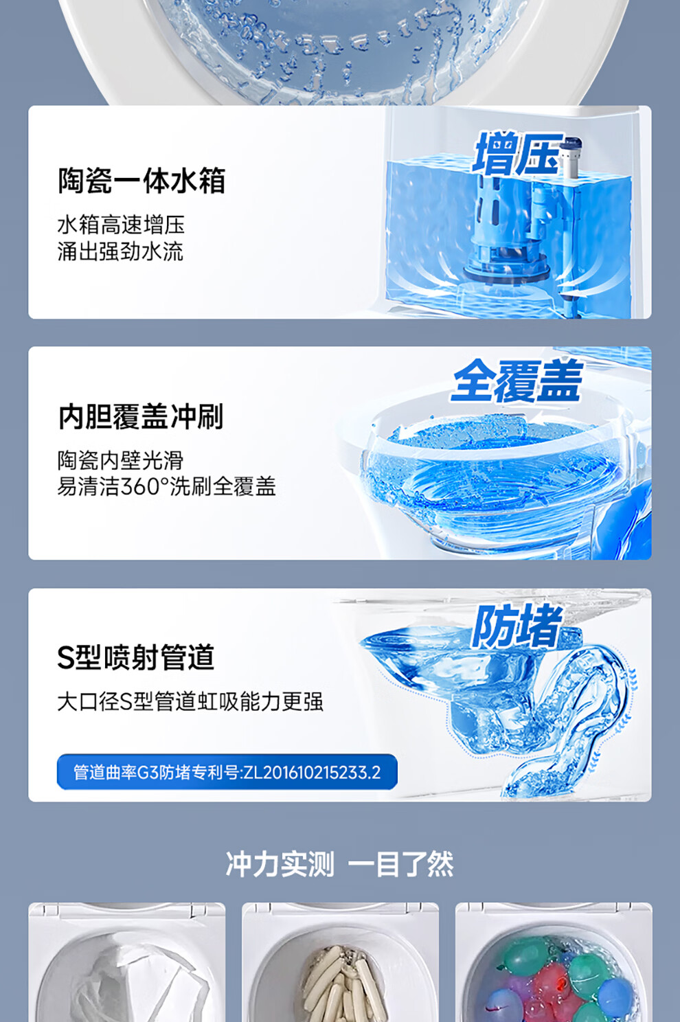 九牧(JOMOO)马桶家用防臭大冲力坐便器小户型大口径虹吸式抽水马桶陶瓷座便器 【一级水效抗菌大冲力】11264 305/300mm