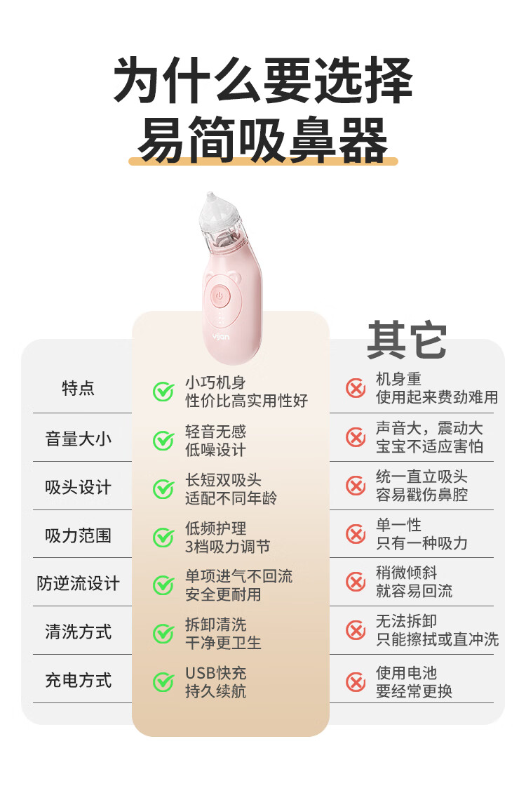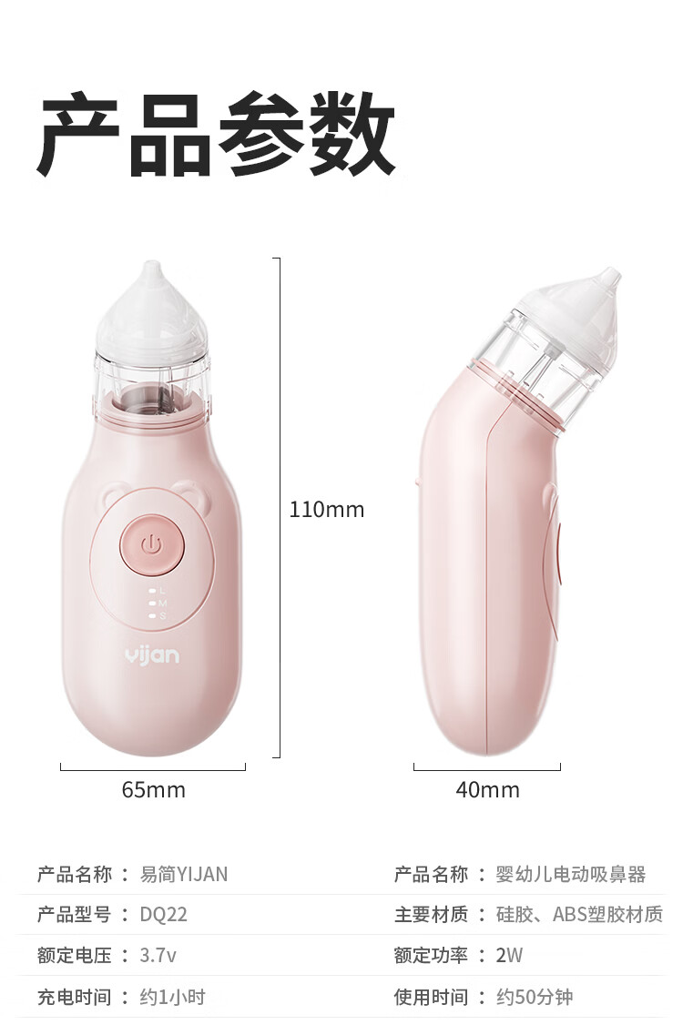 易简(yijan)电动吸鼻器婴儿洗鼻器新生儿宝宝儿童鼻涕鼻屎清理神器通鼻塞DQ22