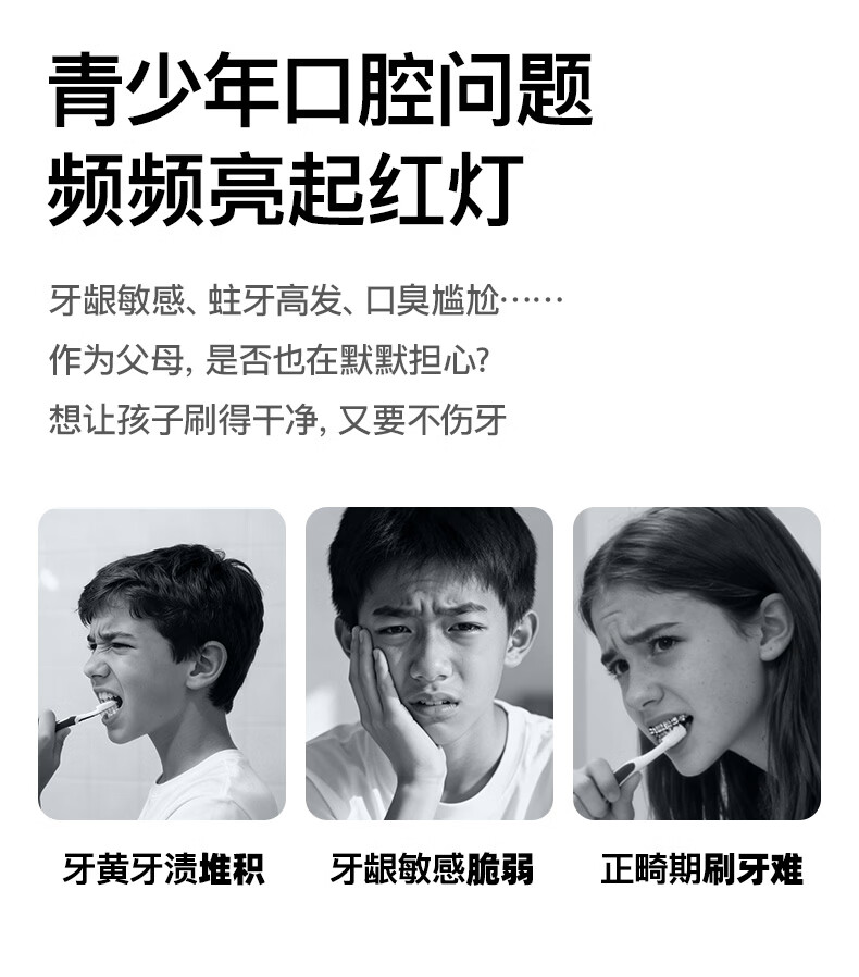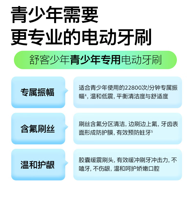 舒客少年青少年专用电动牙刷学生男女声波扫振胶囊缓震智能语音提醒牙刷Q1
