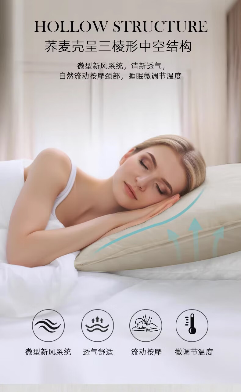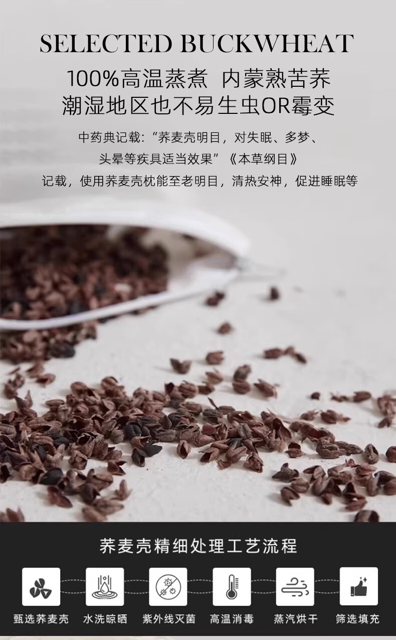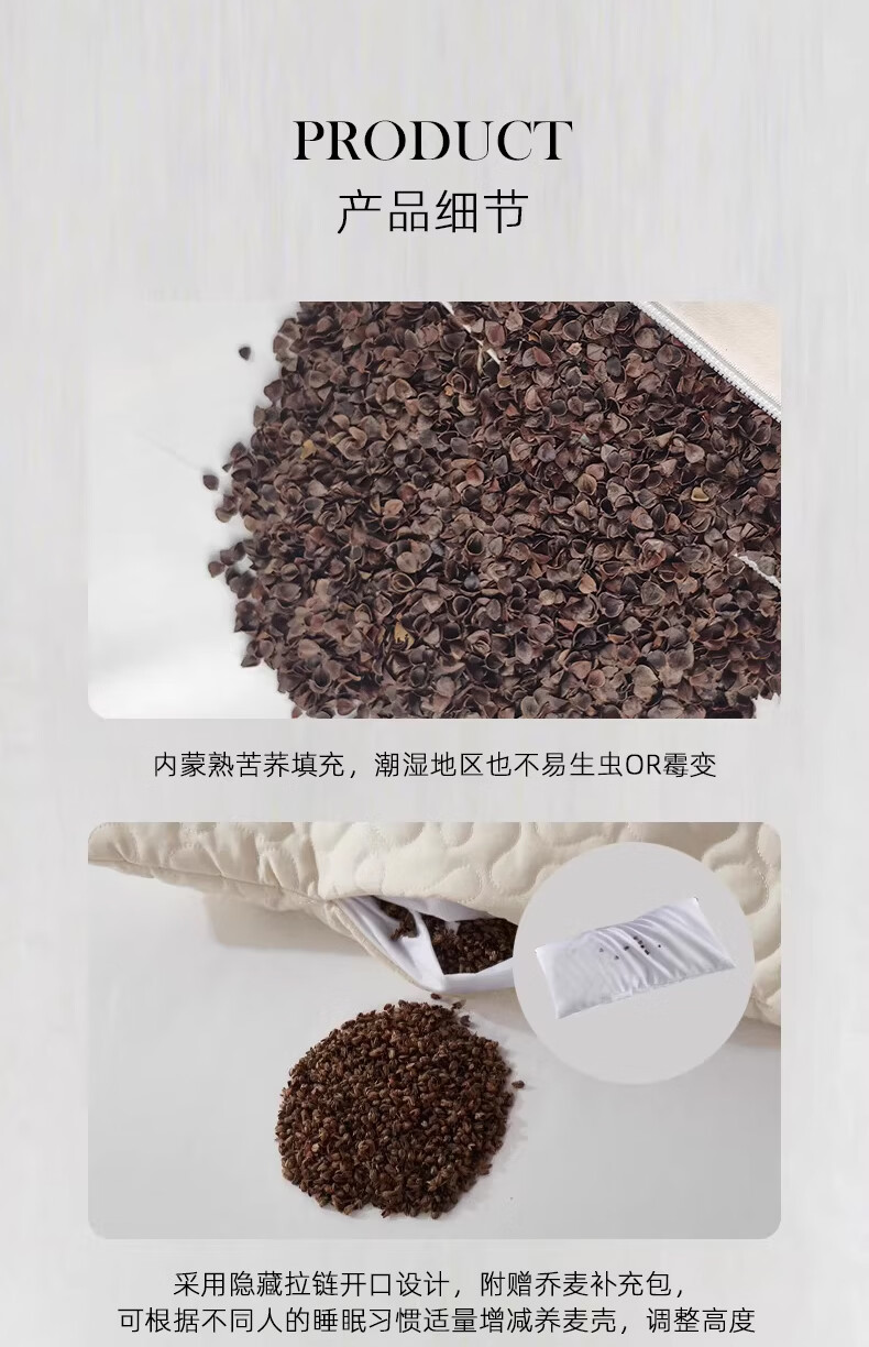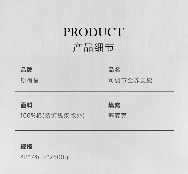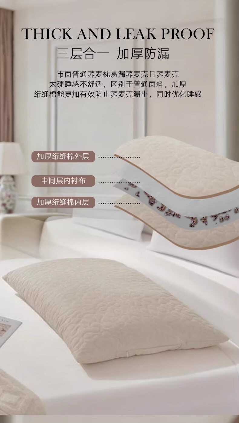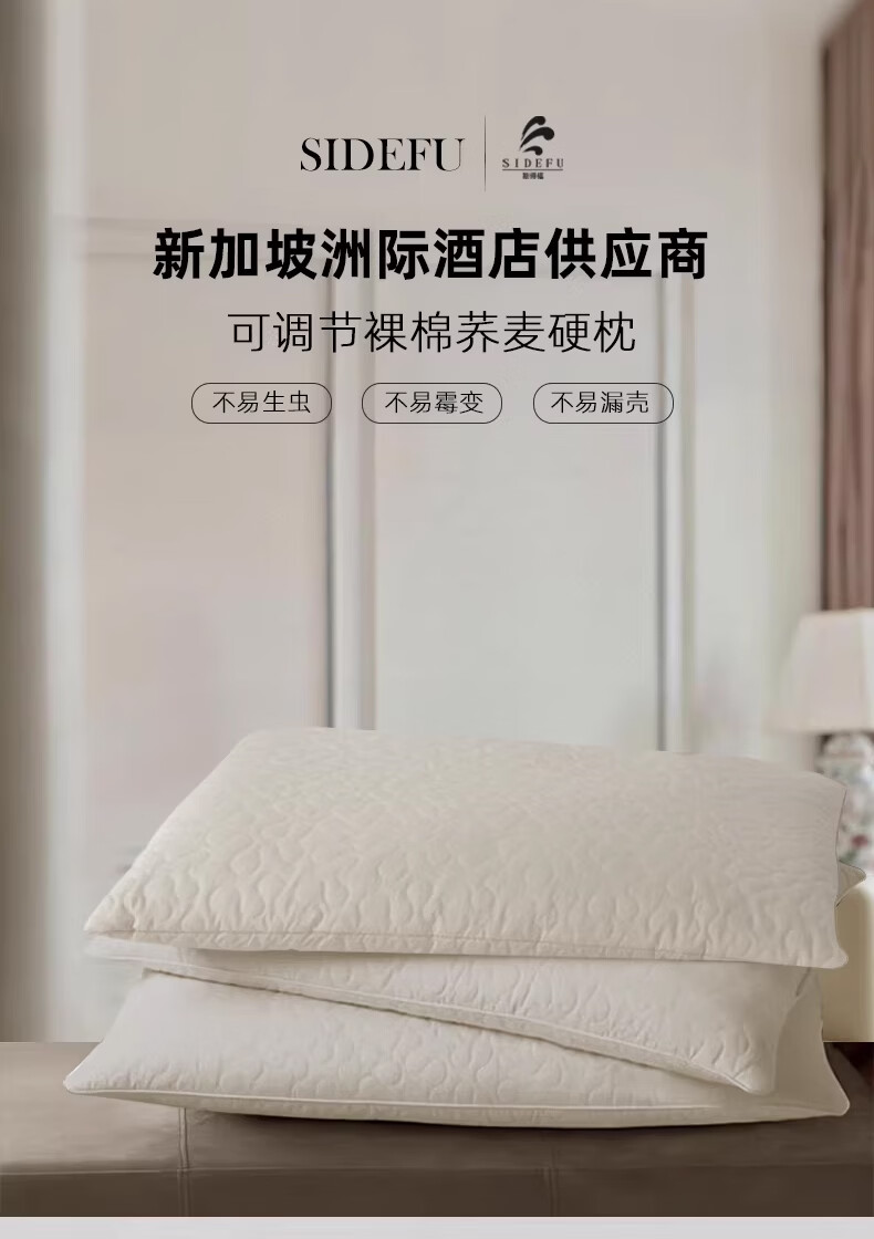 斯得福全棉纯棉全荞麦枕头单人草本酒店专用偏硬颈椎枕芯成人睡眠 可调节裸棉全荞麦枕48*74*2500g 单只