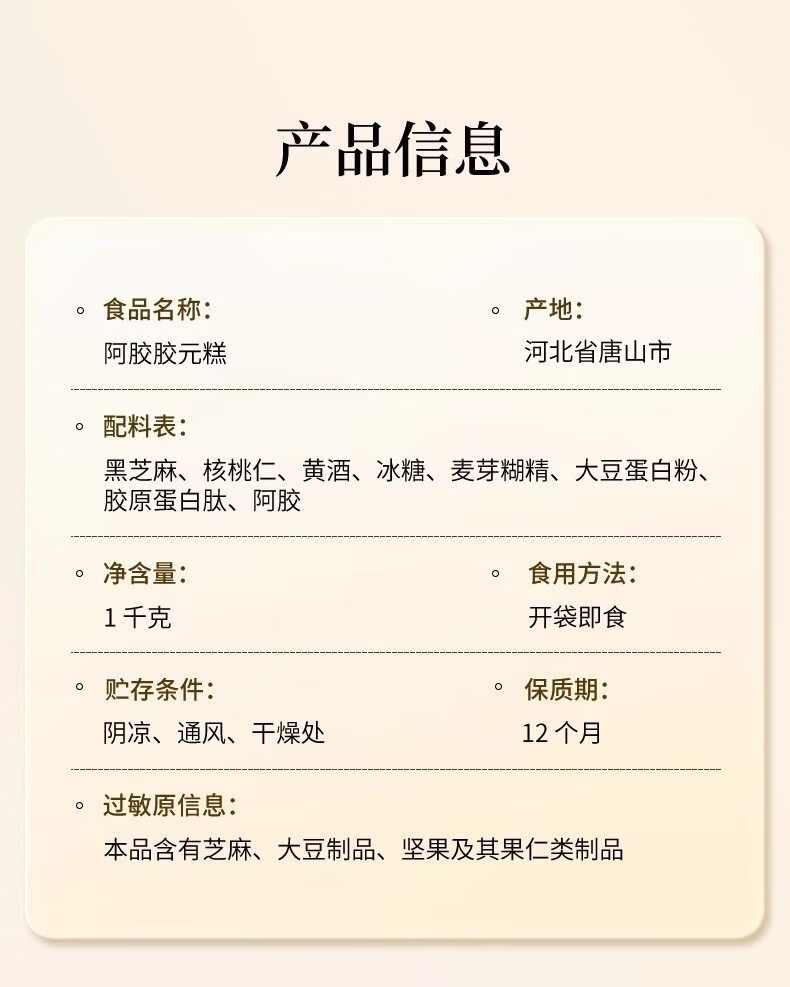 同仁堂低糖阿胶糕礼盒 营养补品滋养气血女送妈妈送长辈礼物 胶元糕 【精致礼盒】 520g*1盒 1份