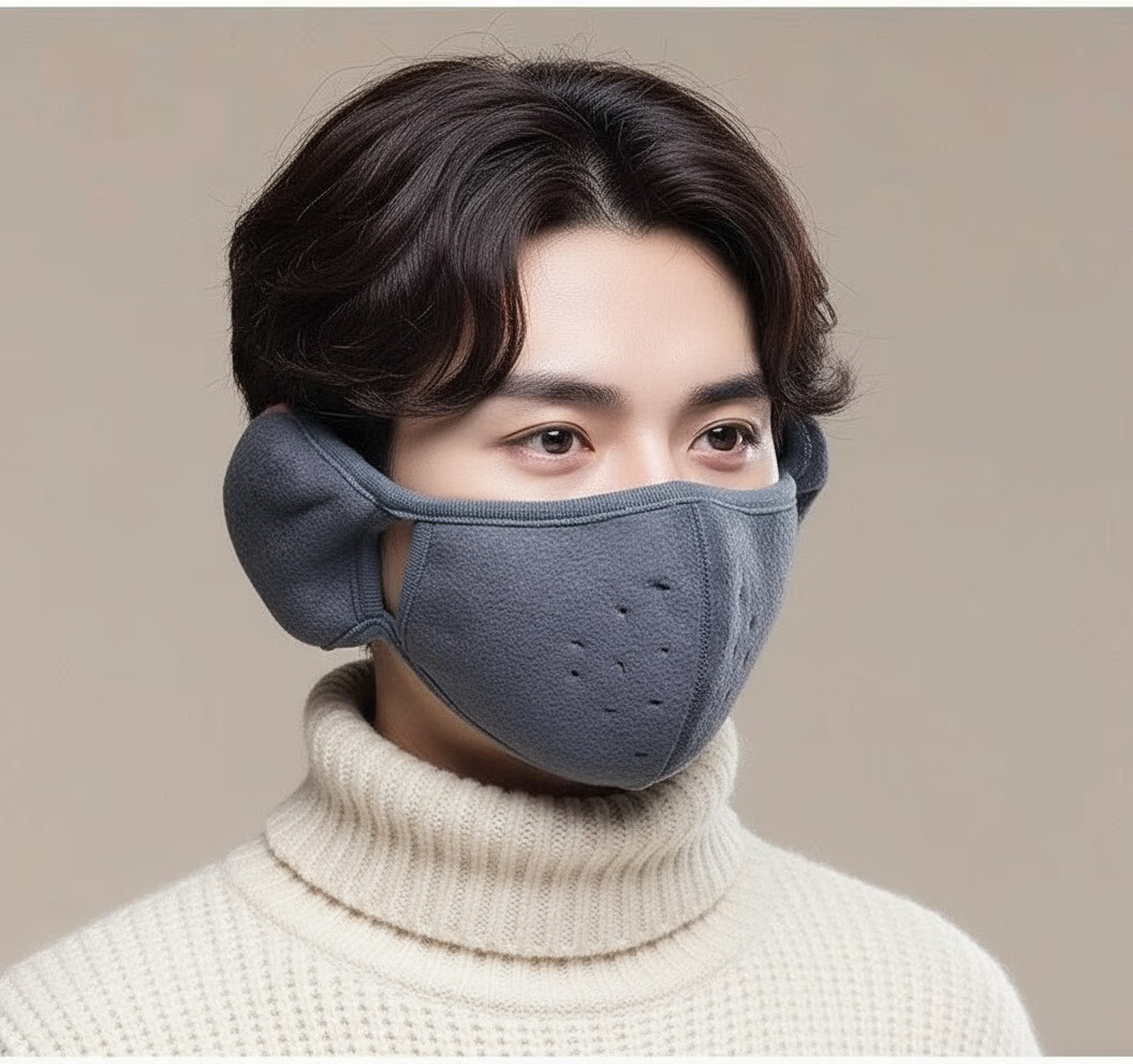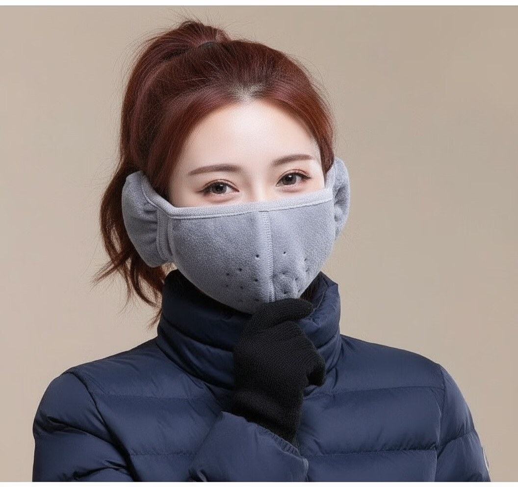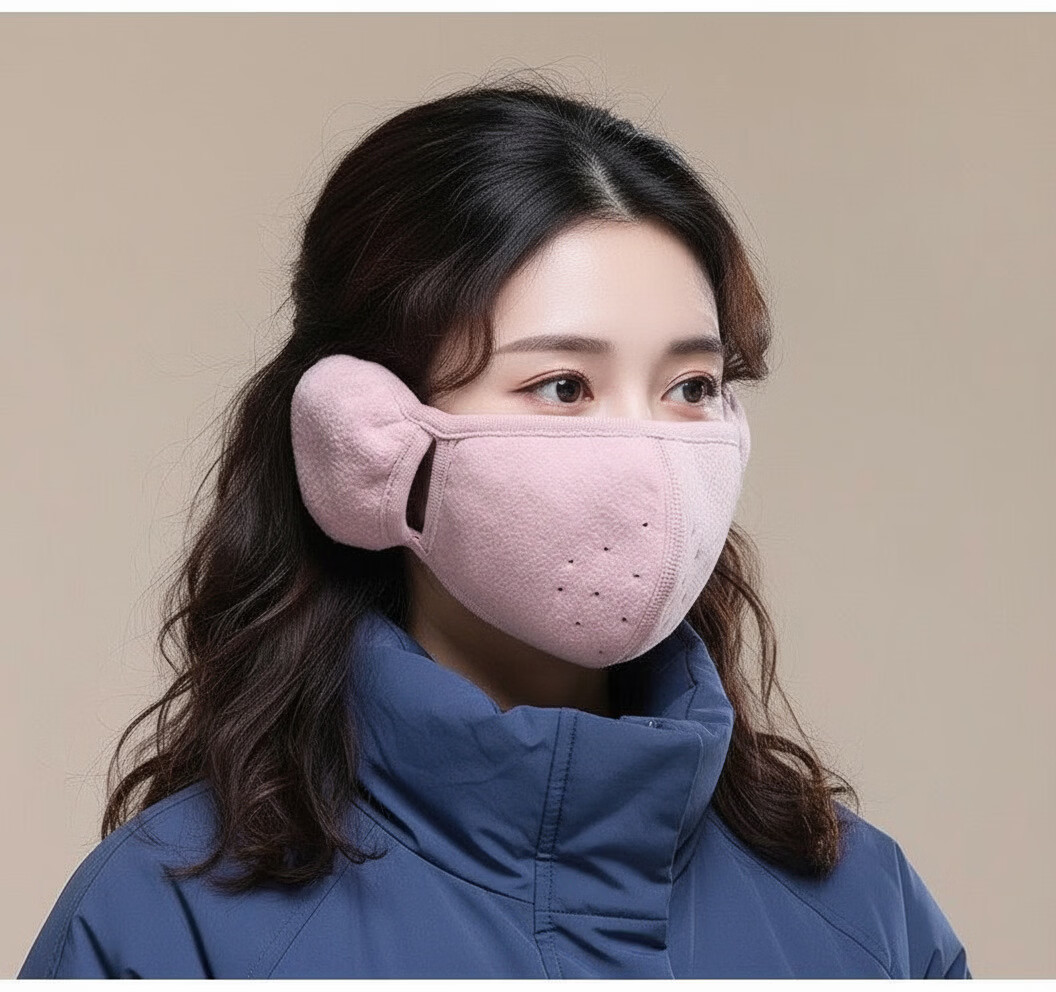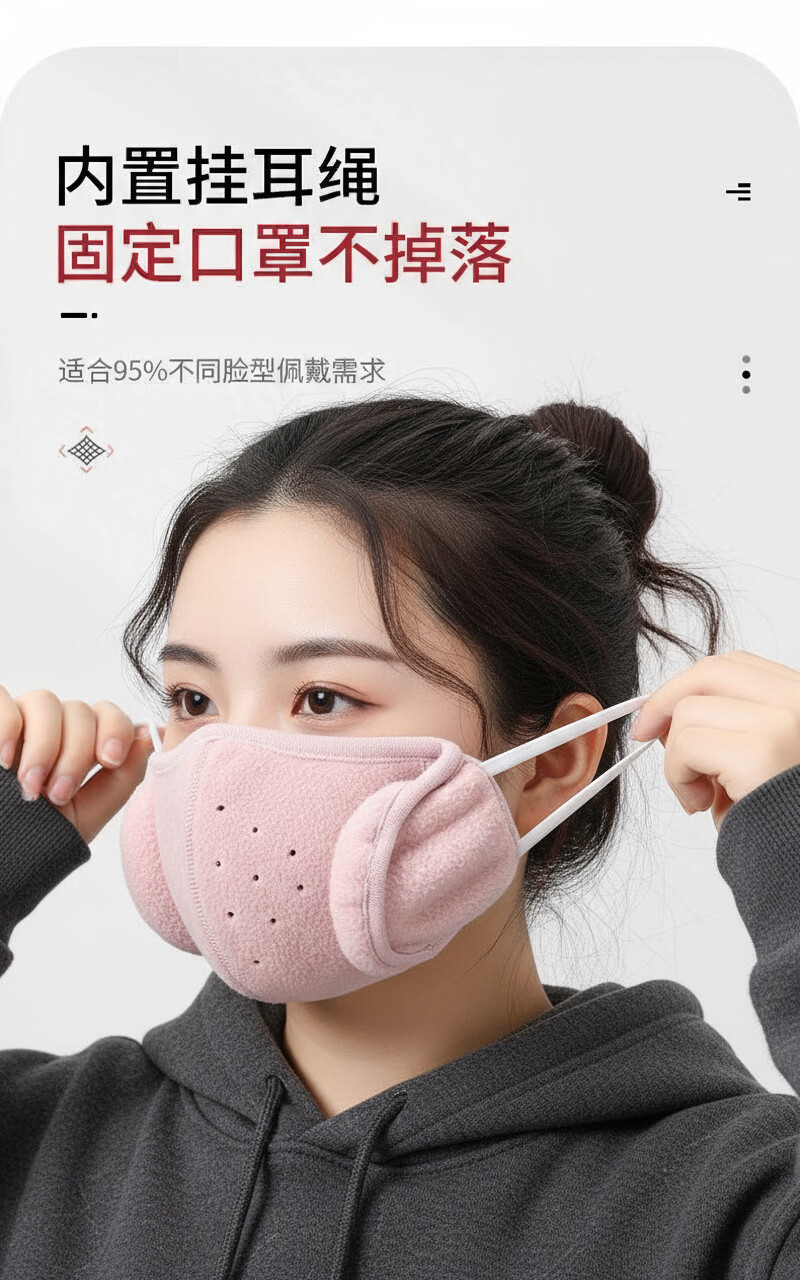 洋臣2026年新款冬季保暖耳朵防冻耳罩男女骑行防风全脸防寒加厚挡风 加长护耳-保暖口罩2个装【粉+灰色】