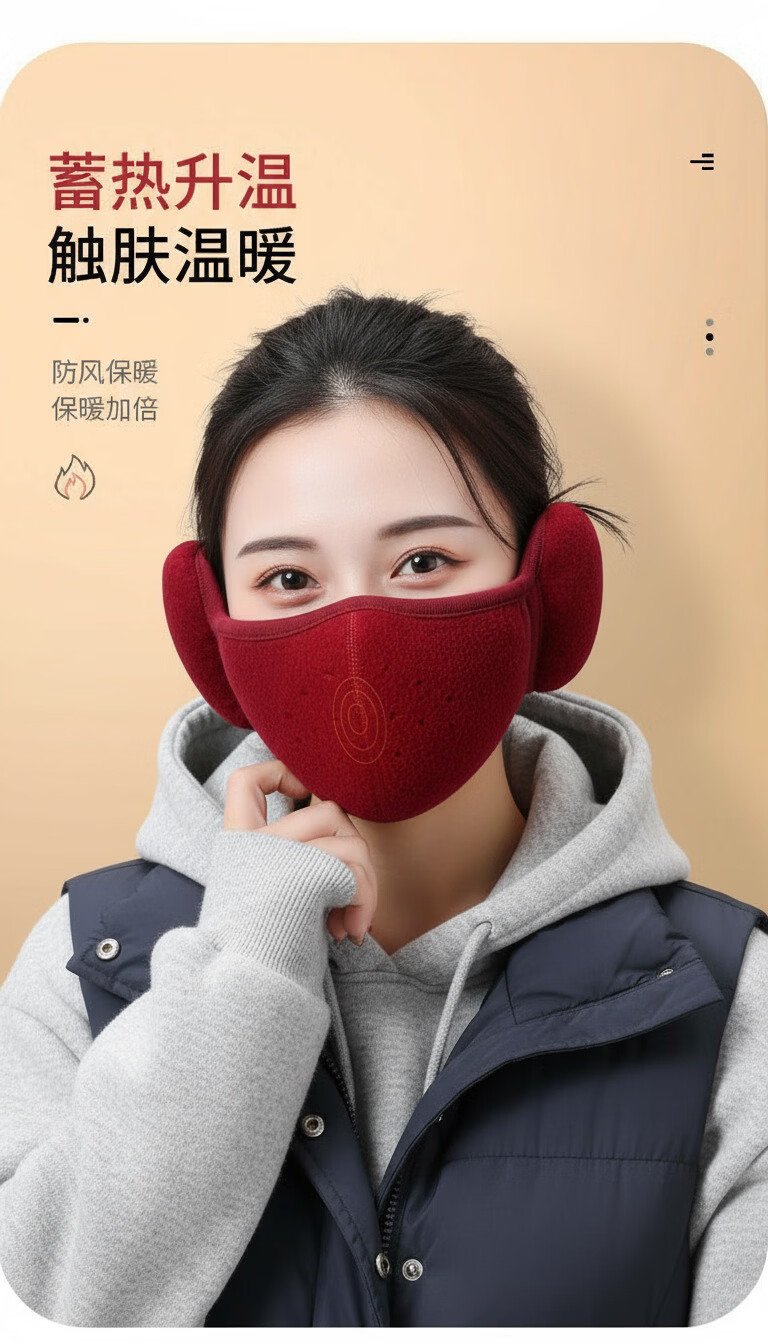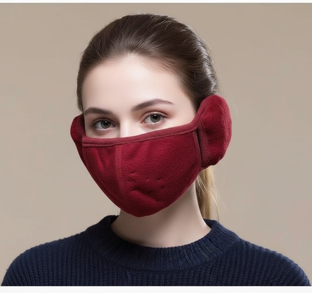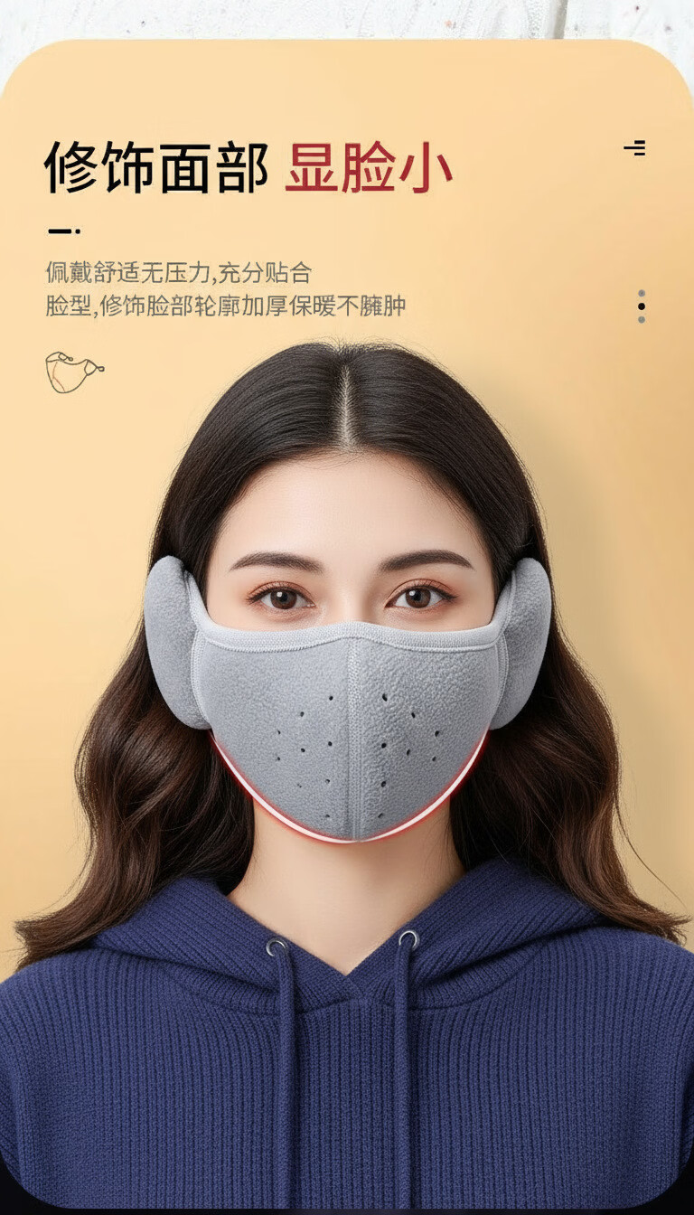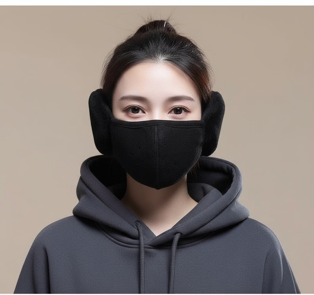 洋臣2026年新款冬季保暖耳朵防冻耳罩男女骑行防风全脸防寒加厚挡风 加长护耳-保暖口罩2个装【粉+灰色】