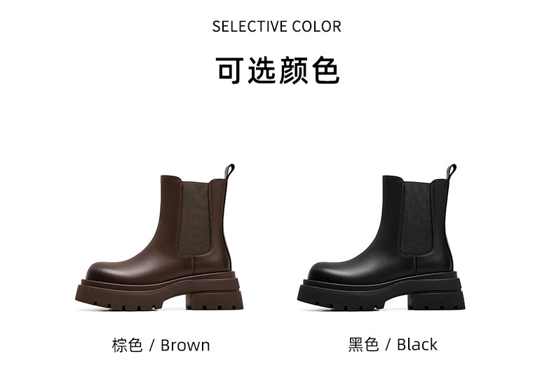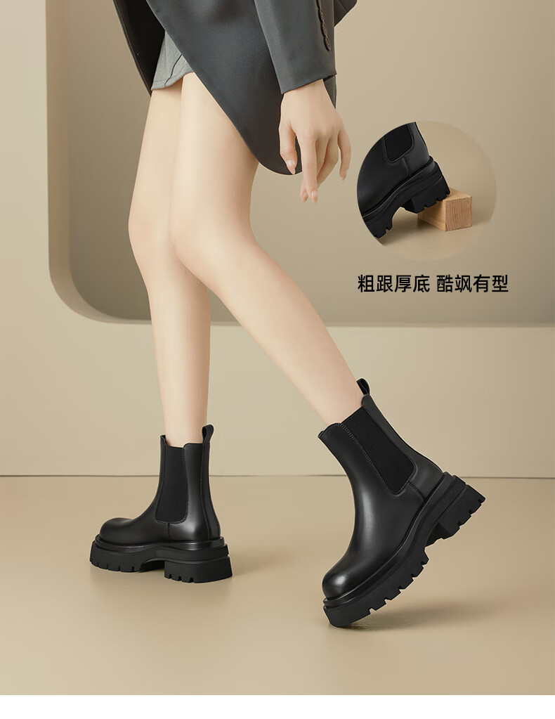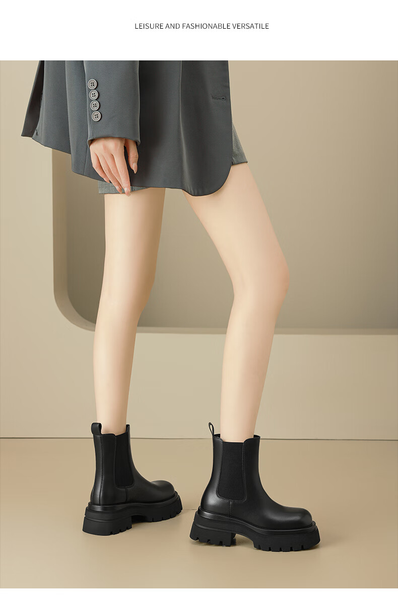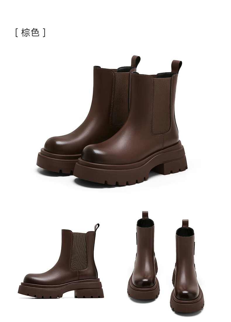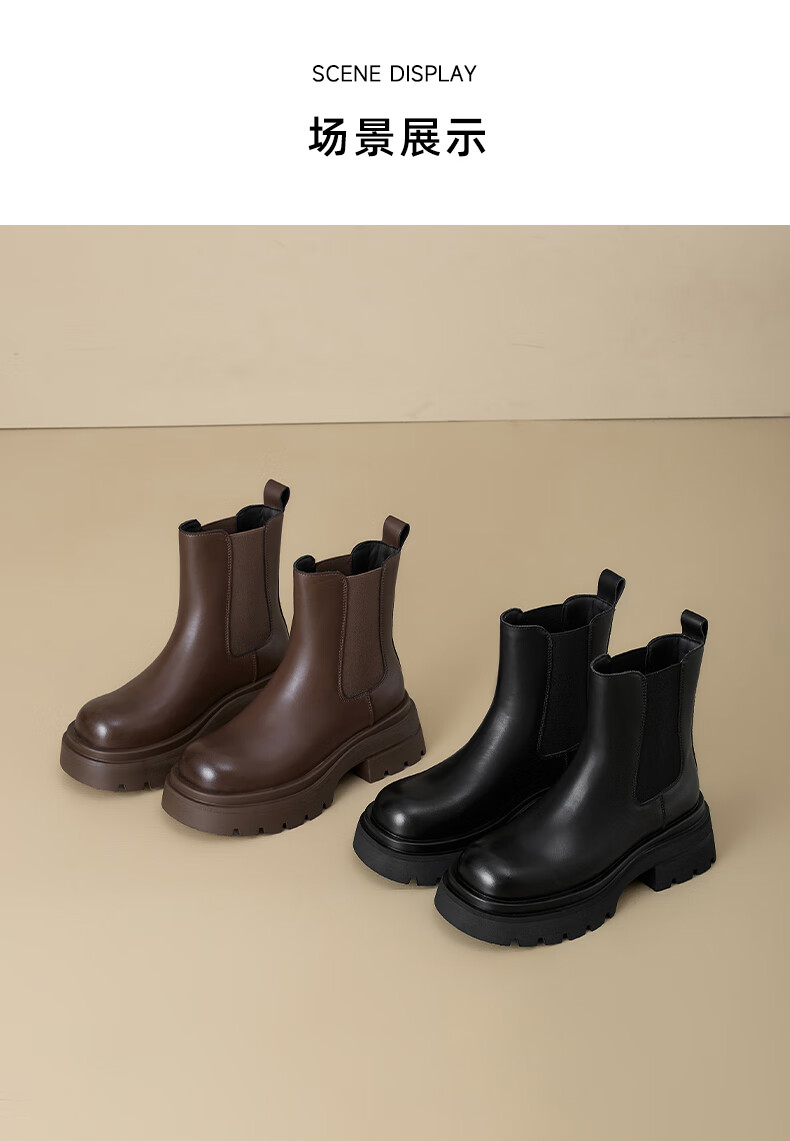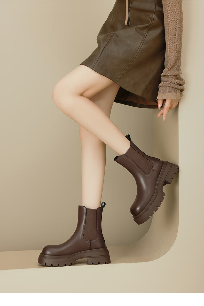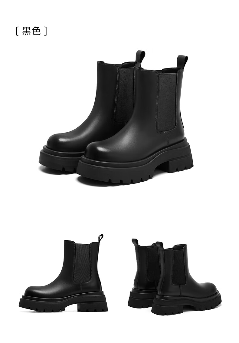 星期六马丁靴女2025新款秋冬棕色厚底小短靴美拉德英伦风切尔西靴子女 黑色 38