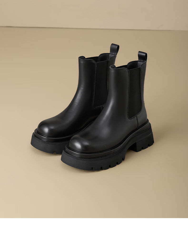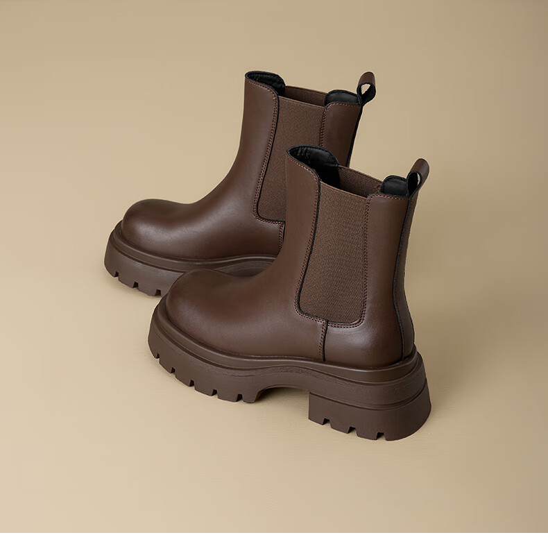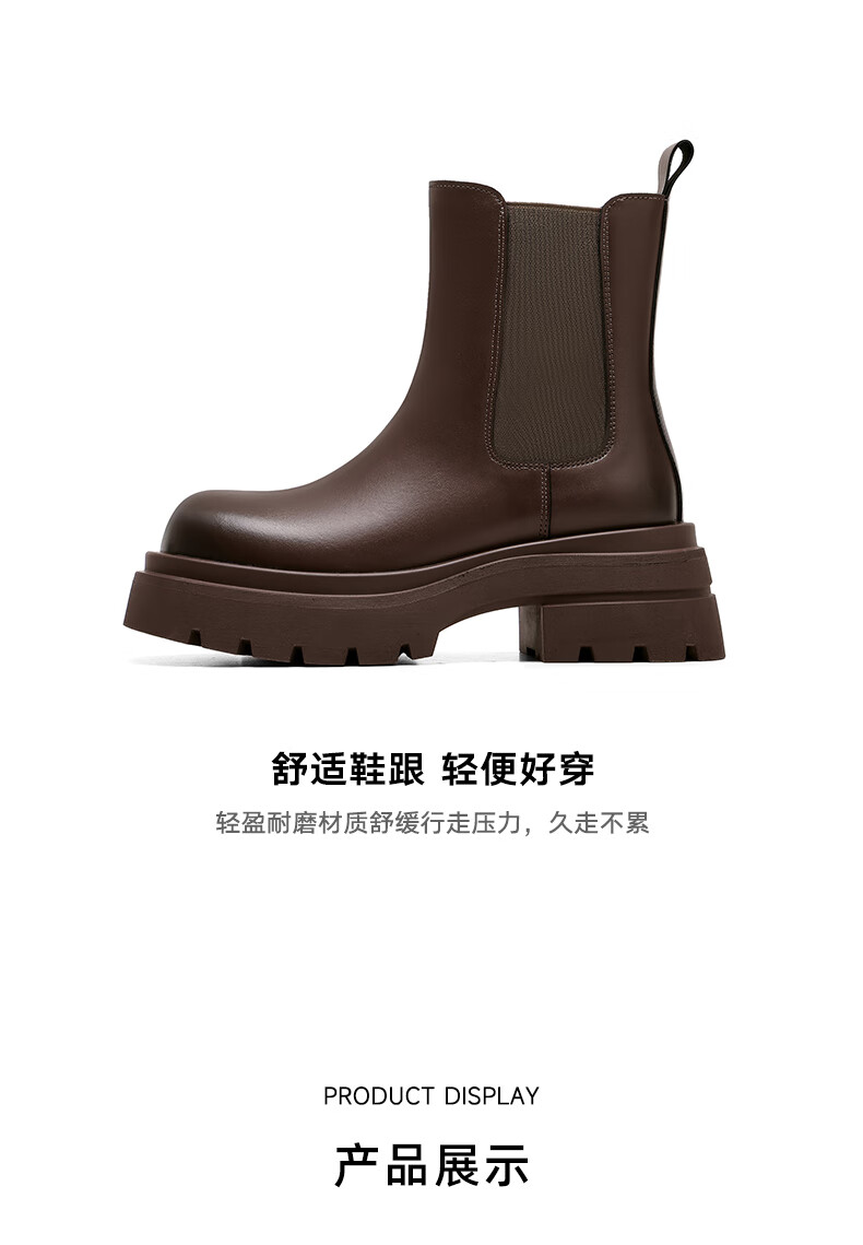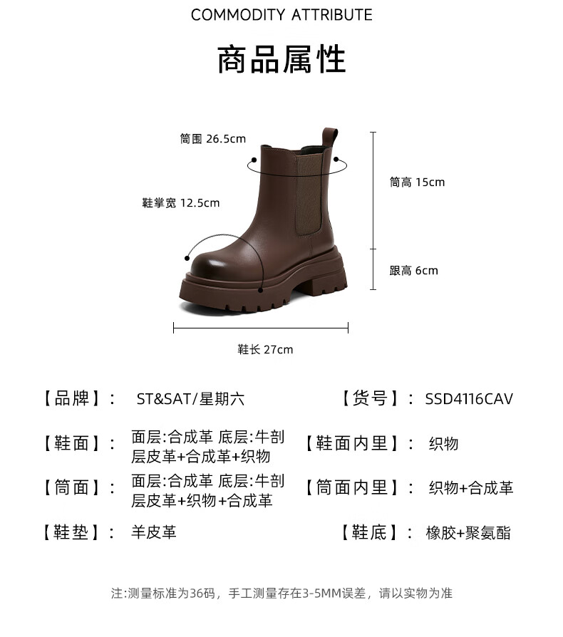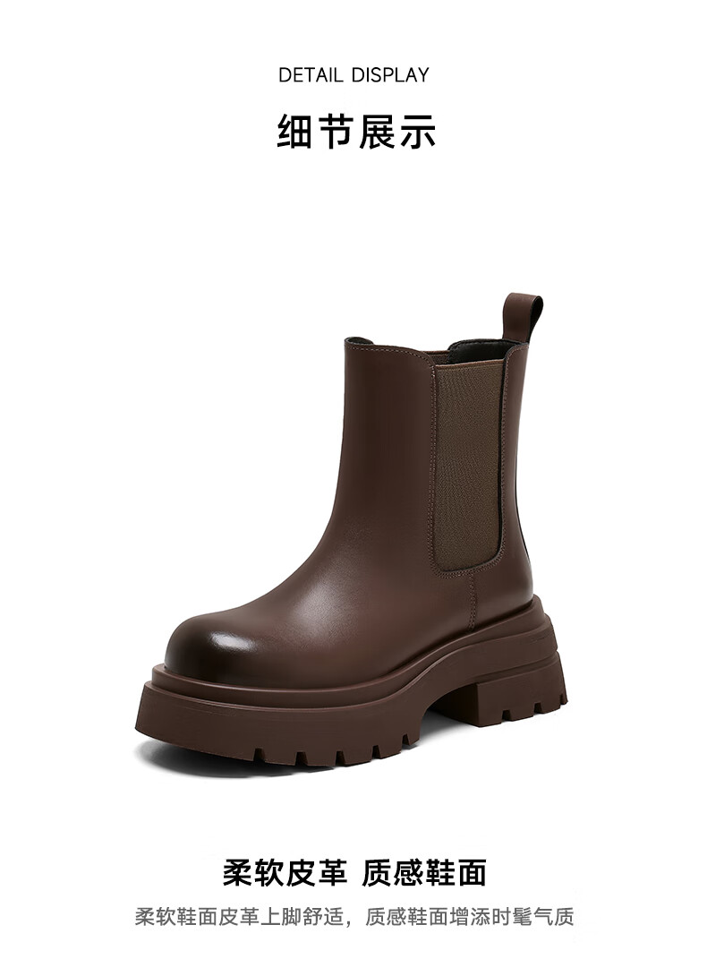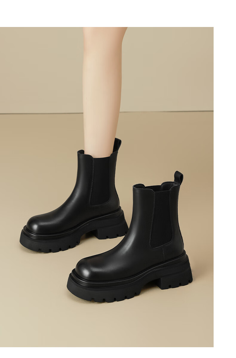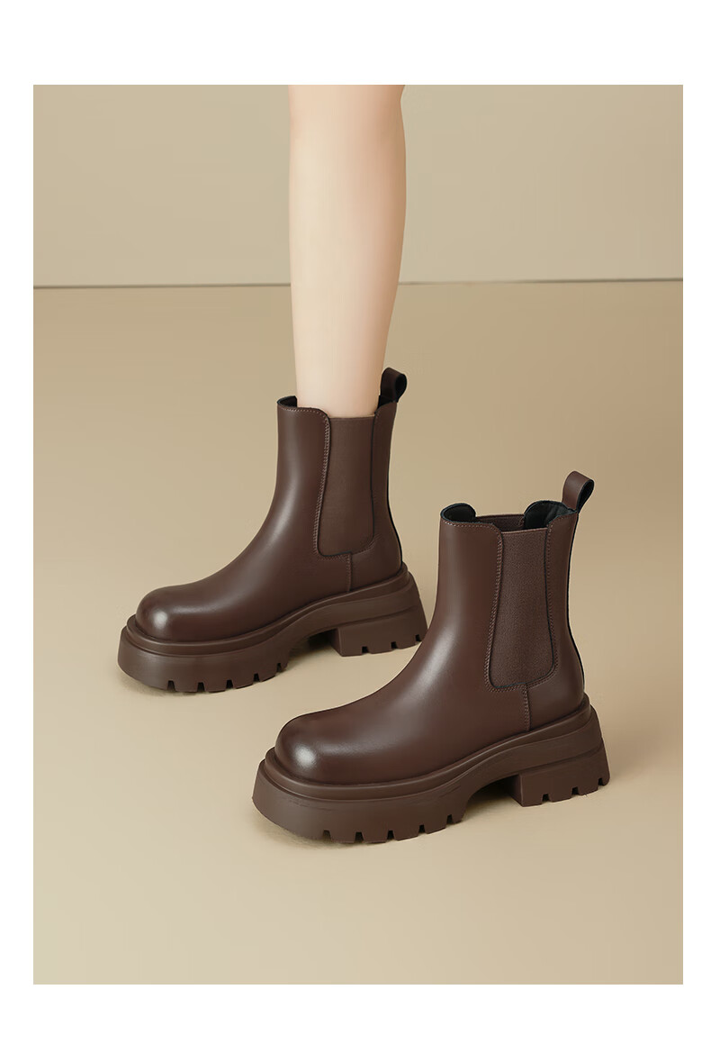 星期六马丁靴女2025新款秋冬棕色厚底小短靴美拉德英伦风切尔西靴子女 黑色 38
