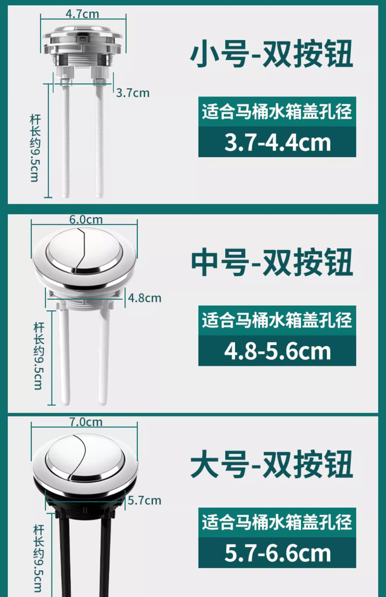 睦歌(MUGE)马桶按钮 双按通用马桶配件按压器马桶水箱盖冲水开关按钮按键 马桶按钮【中号口径6CM】通用型
