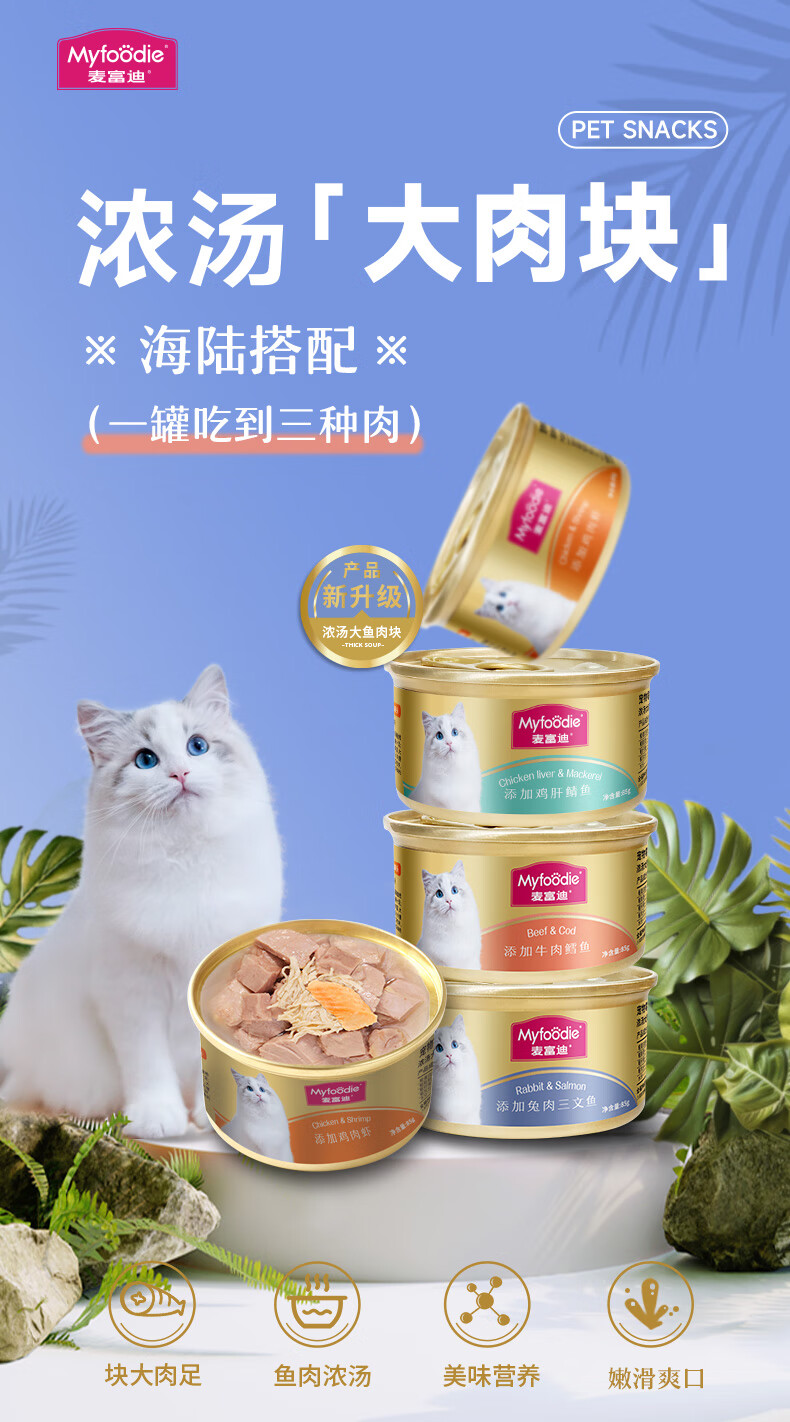 麦富迪猫罐头 三种肉鱼油小金罐猫罐头猫咪零食成幼猫补水亮毛85g*24罐