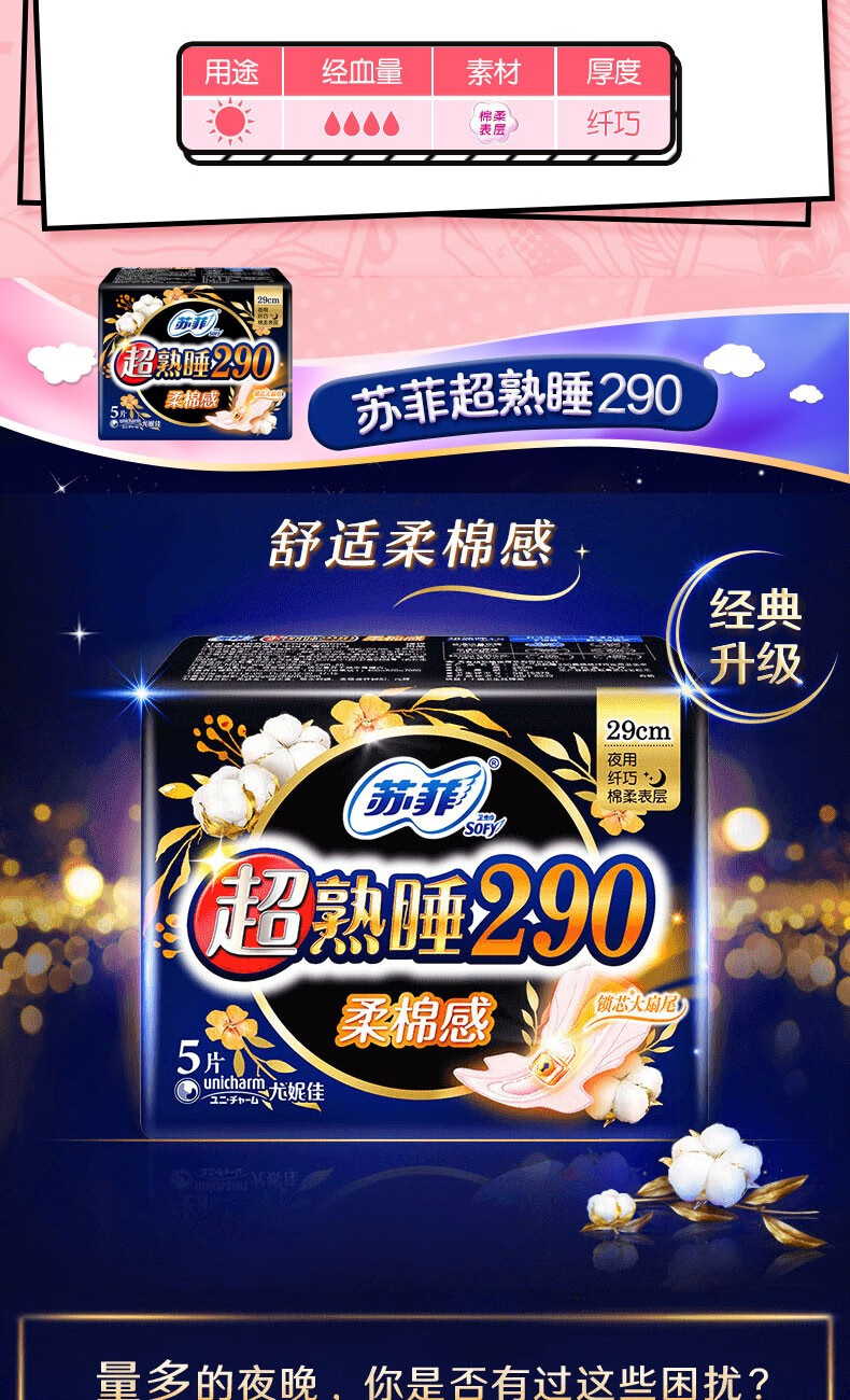 苏菲卫生巾日夜组合230+290迷你护垫140mm无香型丝薄柔滑超透气姨妈巾 超值日夜140+230+ 290mm 75片