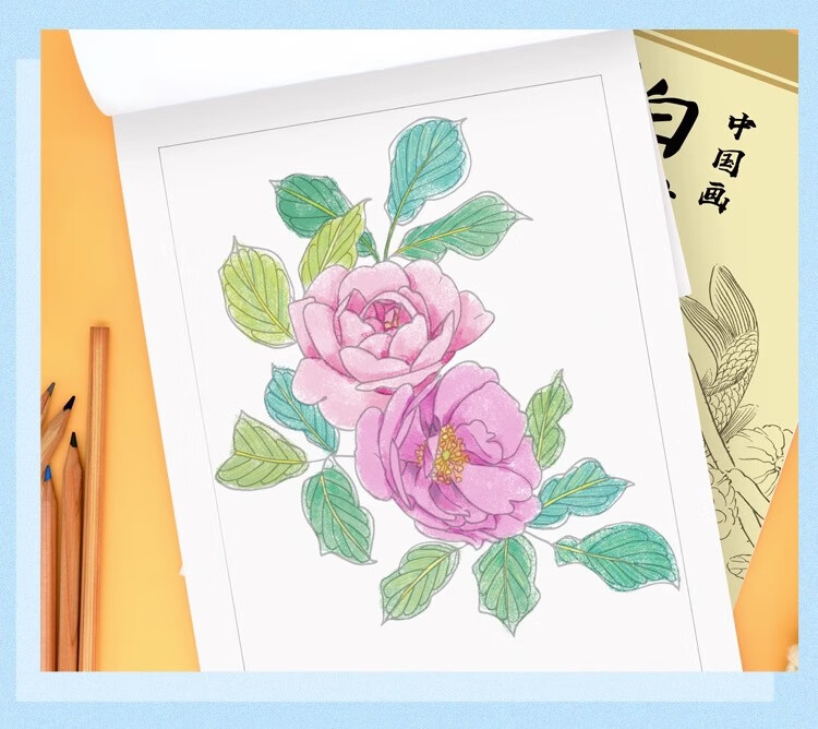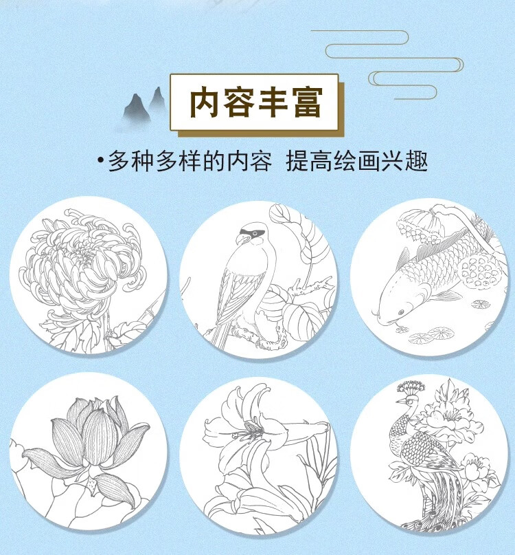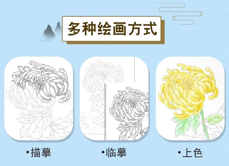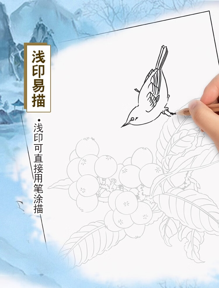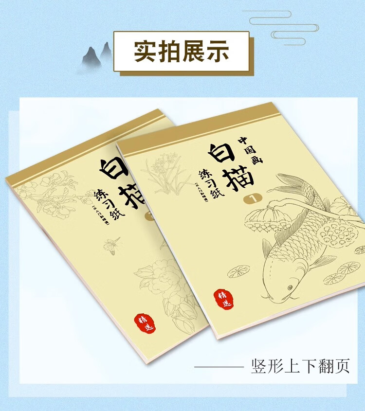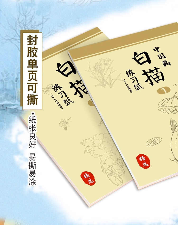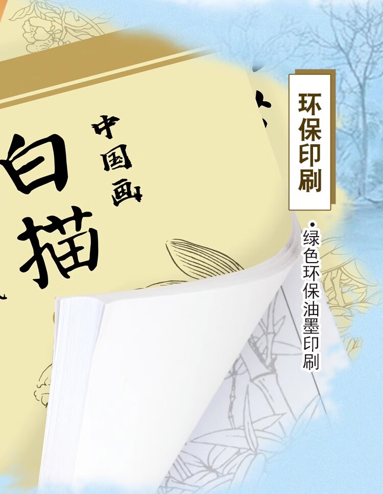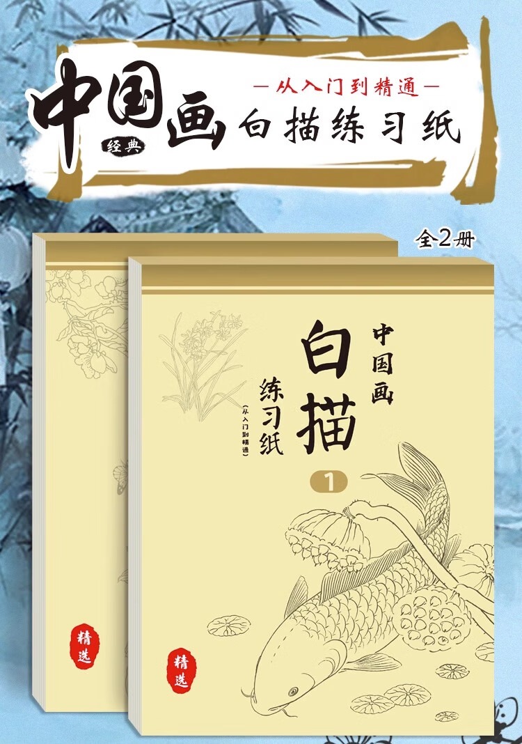 中国画白描入门篇 国画临摹画册 线描画册临摹儿童手绘描摹本绘画 中国风素描本【1+2两本】 无规格