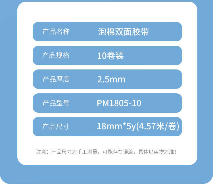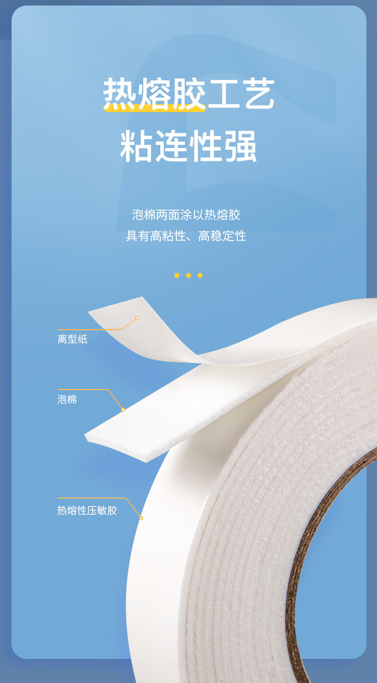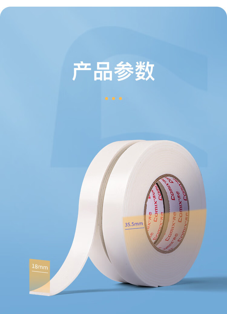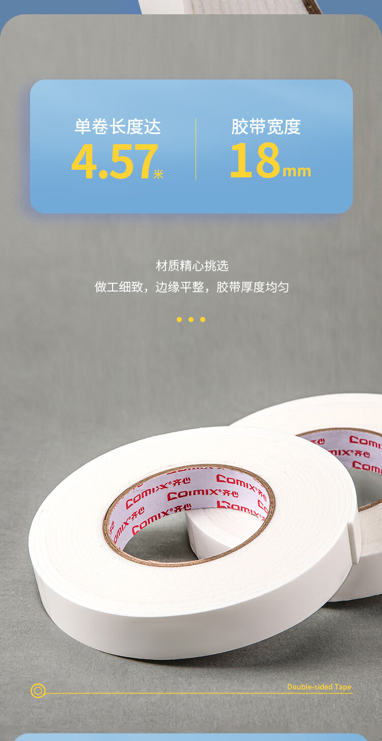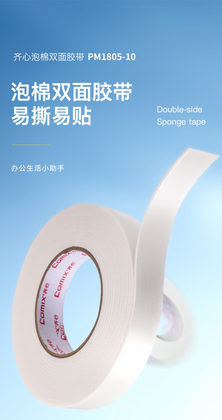 齐心(COMIX)高粘泡沫绵双面胶强力高粘度 18mm*5y(4.57米/卷)加厚泡沫双面胶强力胶 白色10卷 办公用品 EP034
