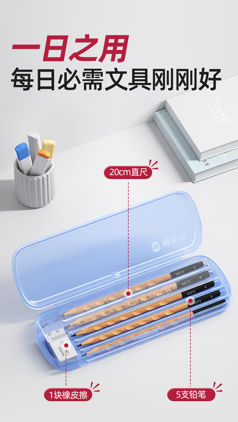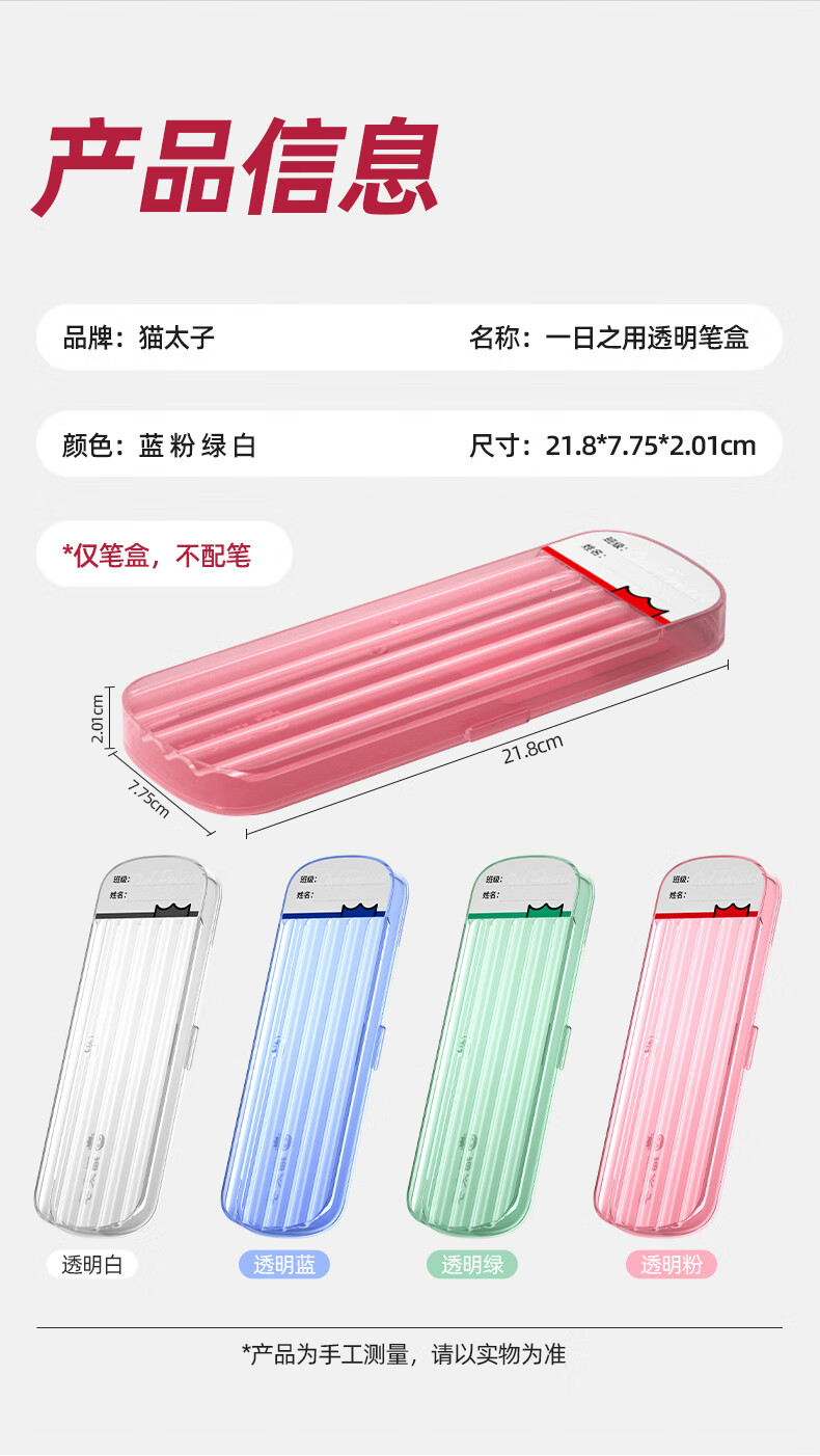 猫太子一日之用文具盒透明笔盒男孩女孩款小学生铅笔盒简约高颜值笔袋儿童一年级幼儿园铅笔袋2025新款 透明蓝(送班级姓名贴)