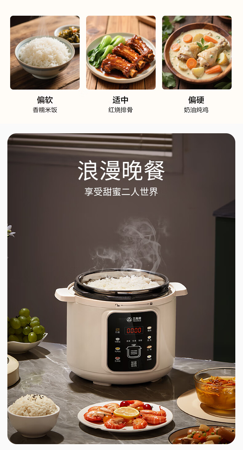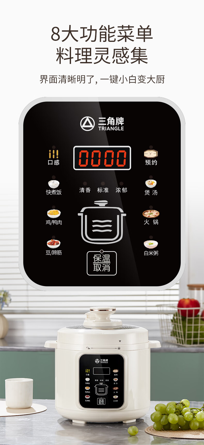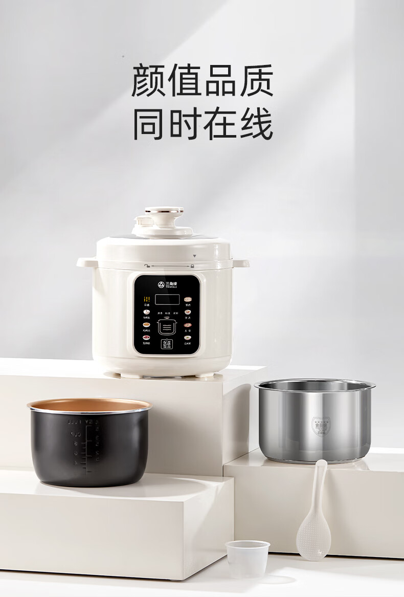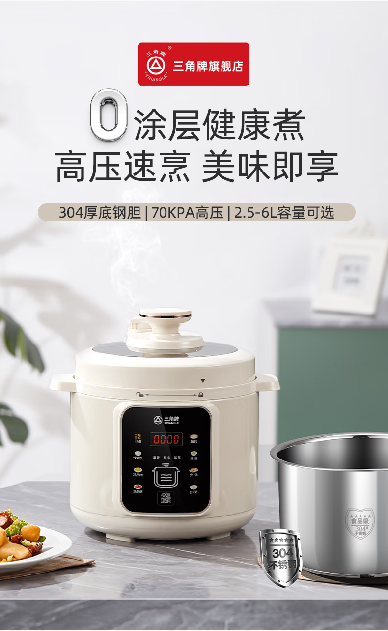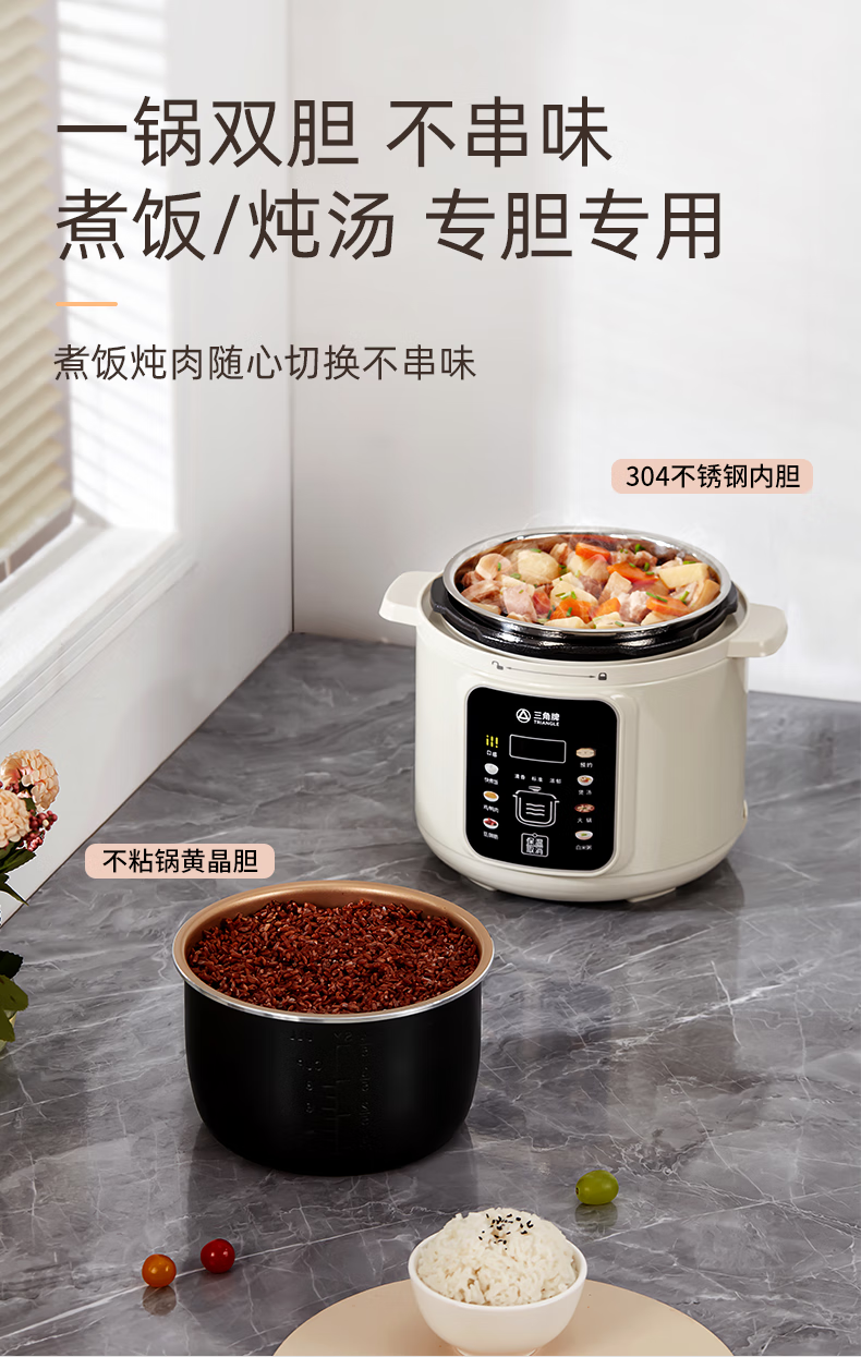 三角牌电压力锅家用单胆双胆2026新款多功能0涂层不锈钢高压饭锅5L6L 双胆【不粘胆+304不锈钢胆】 6L