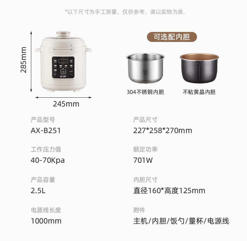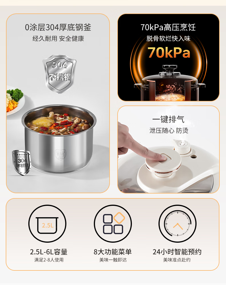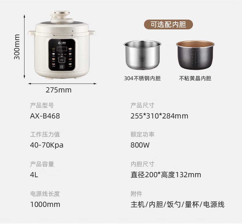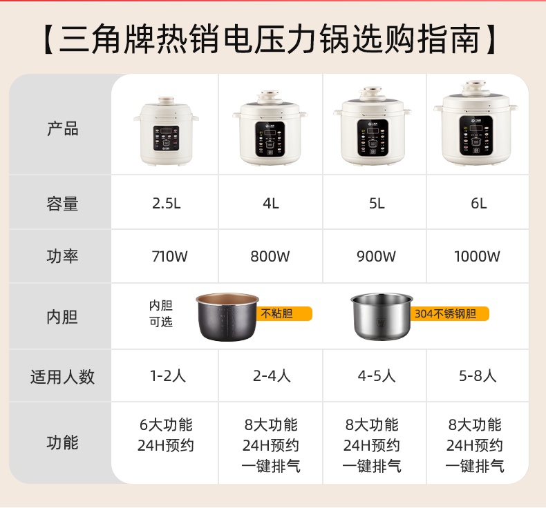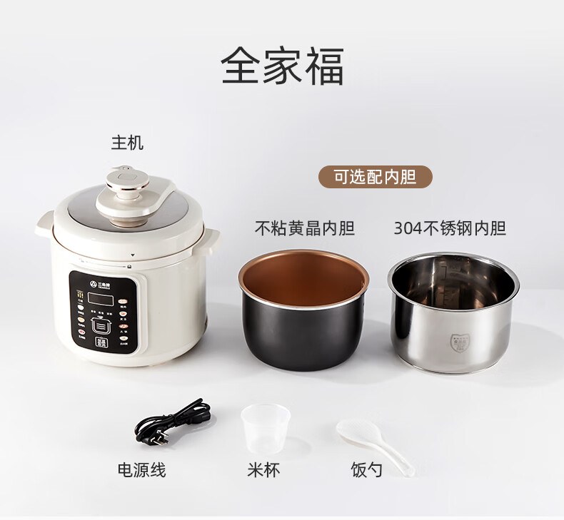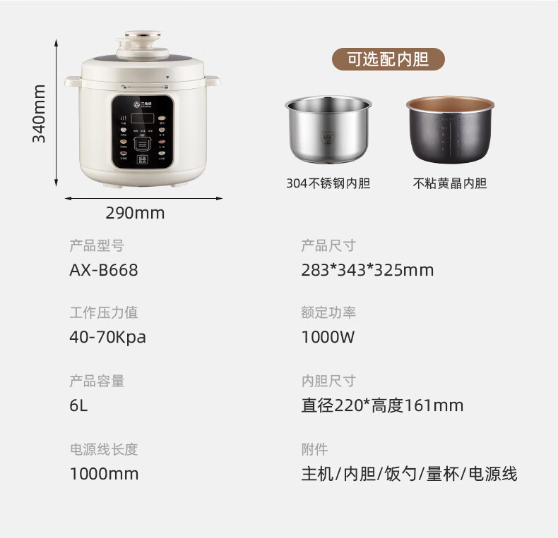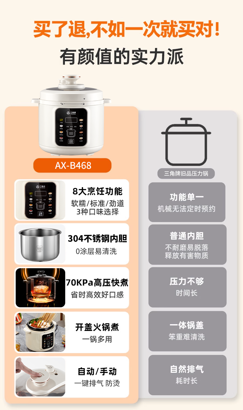 三角牌电压力锅家用单胆双胆2026新款多功能0涂层不锈钢高压饭锅5L6L 双胆【不粘胆+304不锈钢胆】 6L