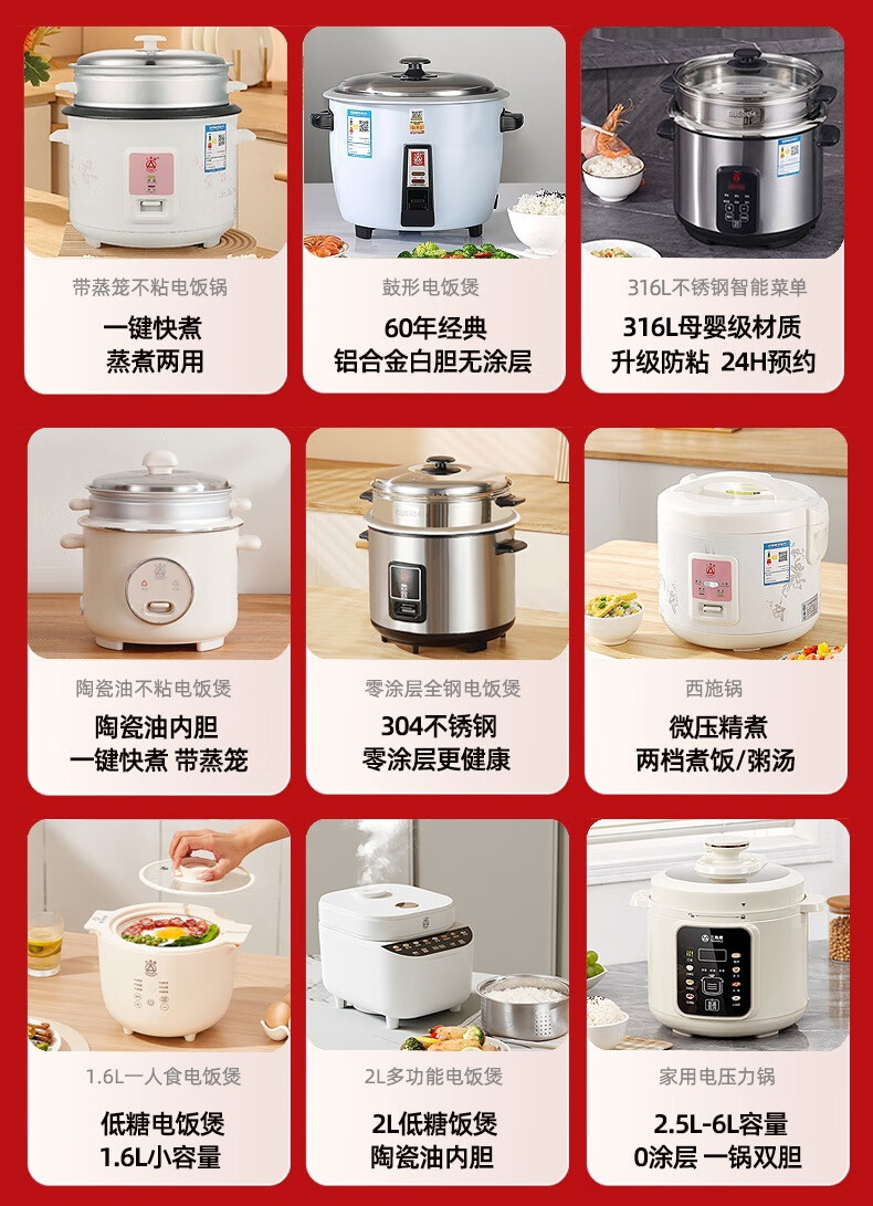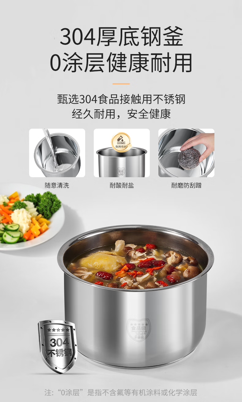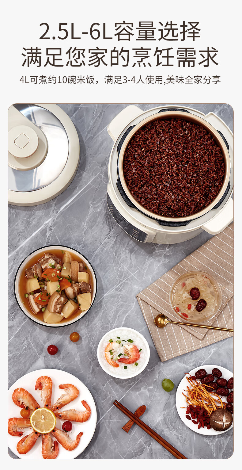 九阳(Joyoung)0氟系列珐琅瓷釜3升蜜罐电饭煲 4~6人家用0特氟龙电饭锅微压35分钟快煮多功能国家补贴30NF02
