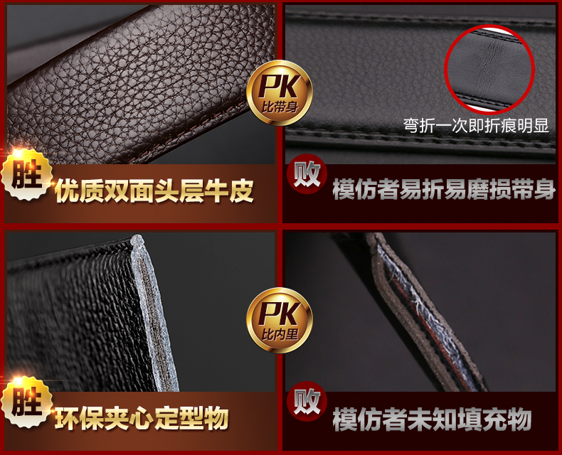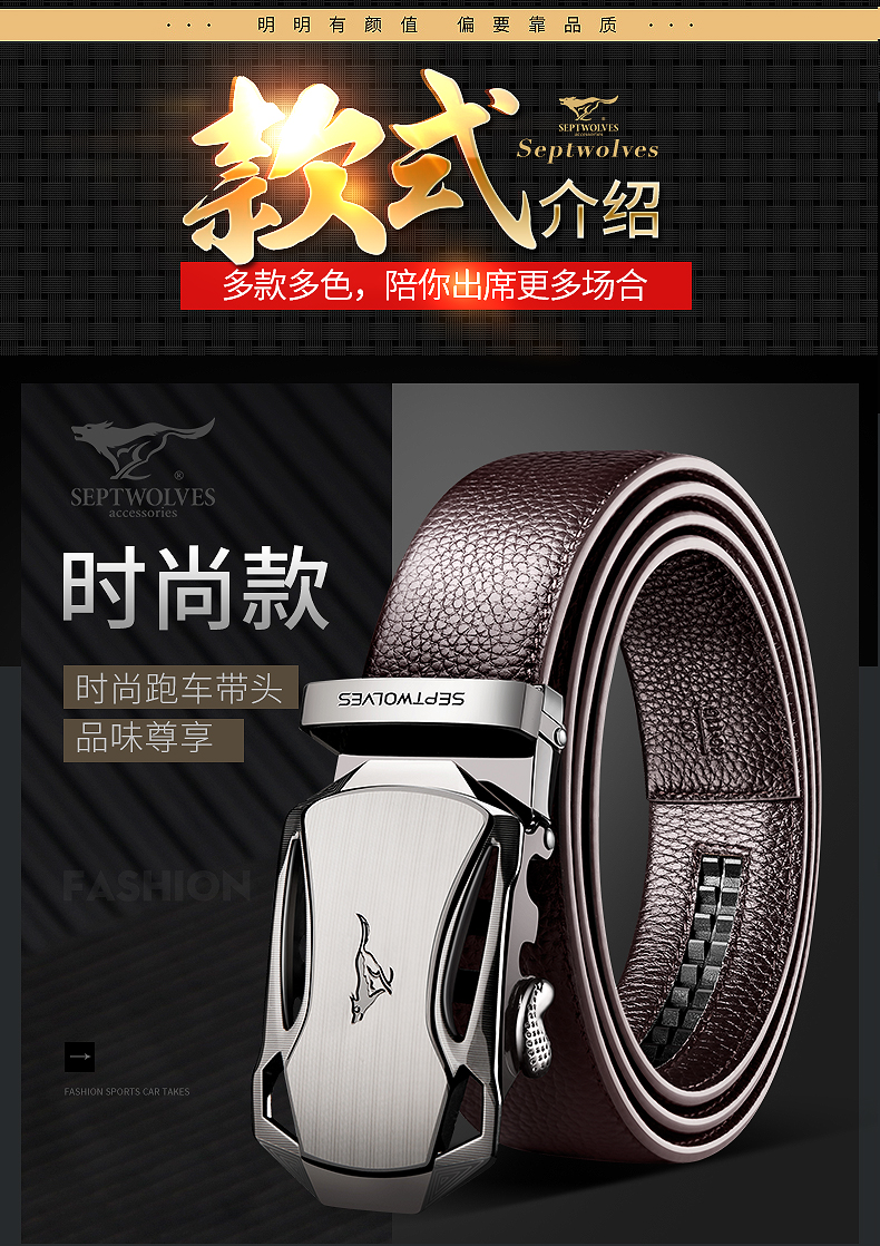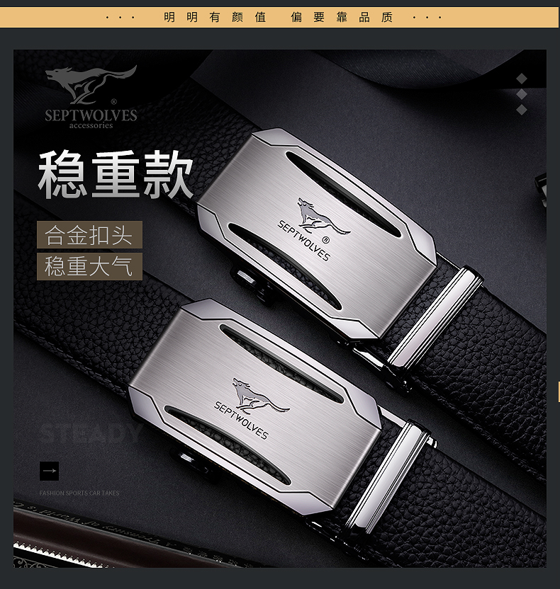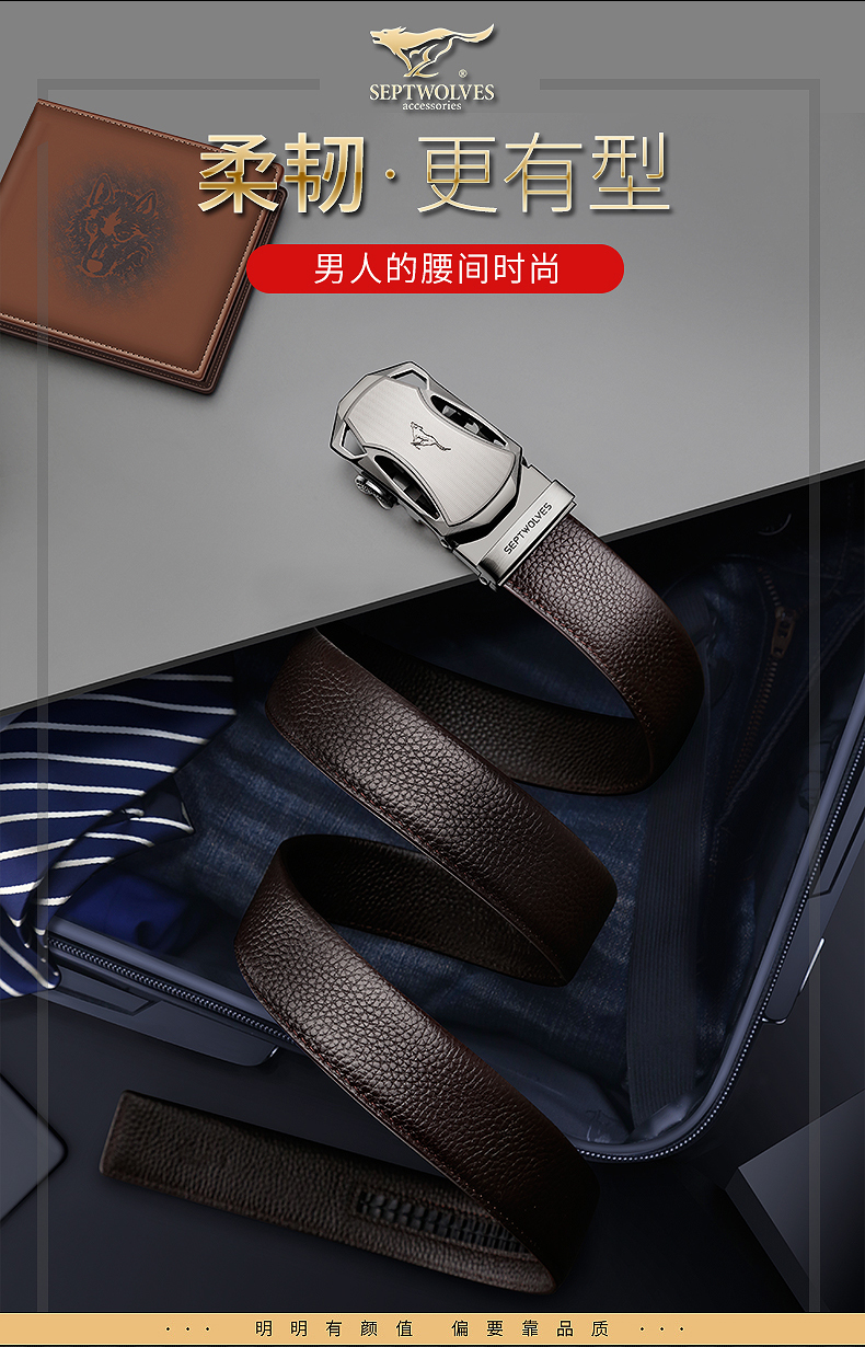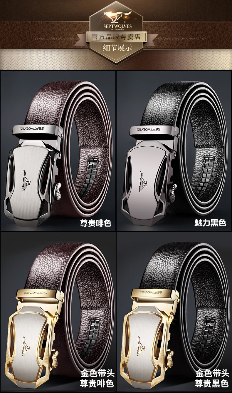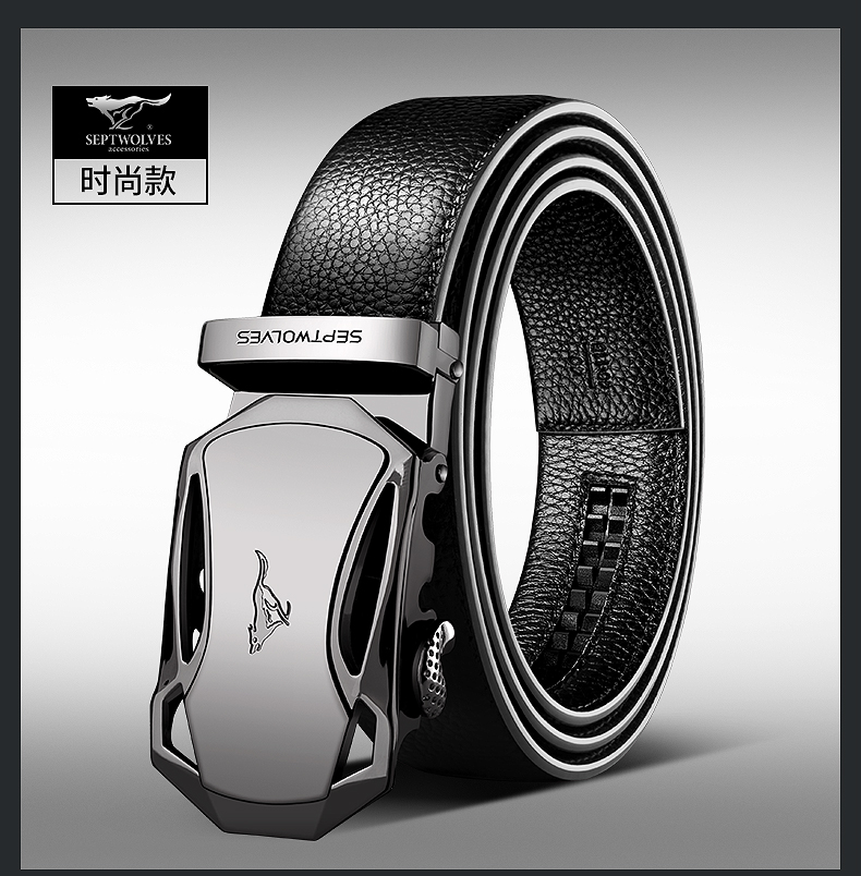 七匹狼 男士皮带头层牛皮青年休闲情人节腰带男真皮商务裤带送礼物老公 魅力黑色