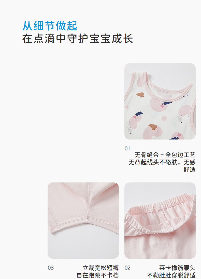 丽婴房(Les enphants)男女童夏季纯棉背心套装素色睡衣套装家居服套装夏季 粉色 120 cm/6岁