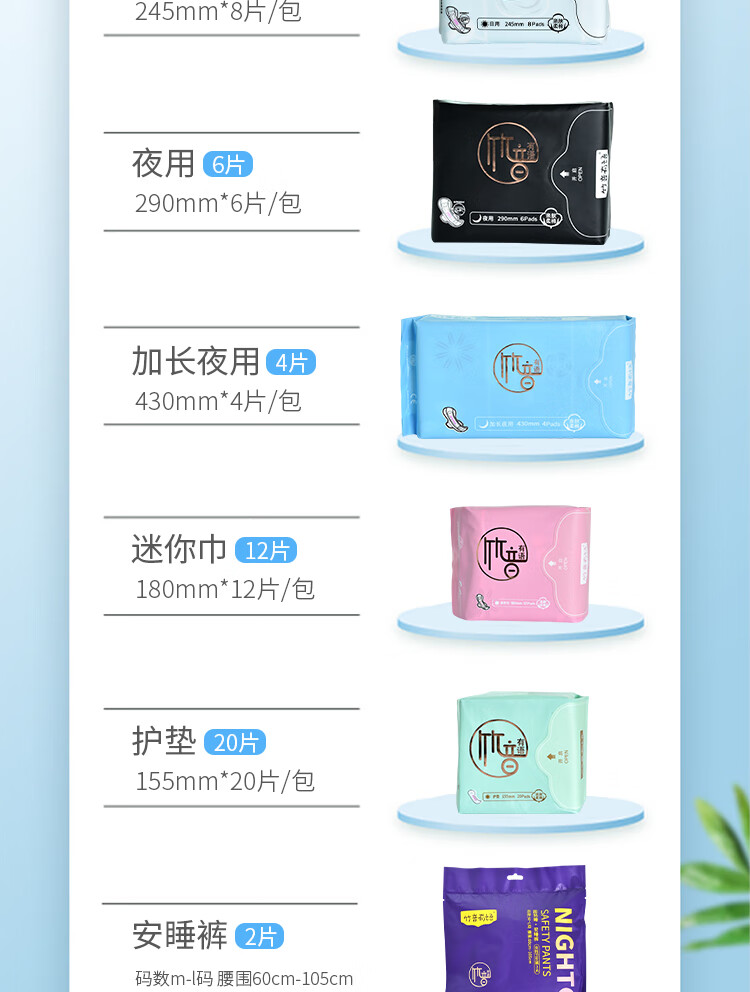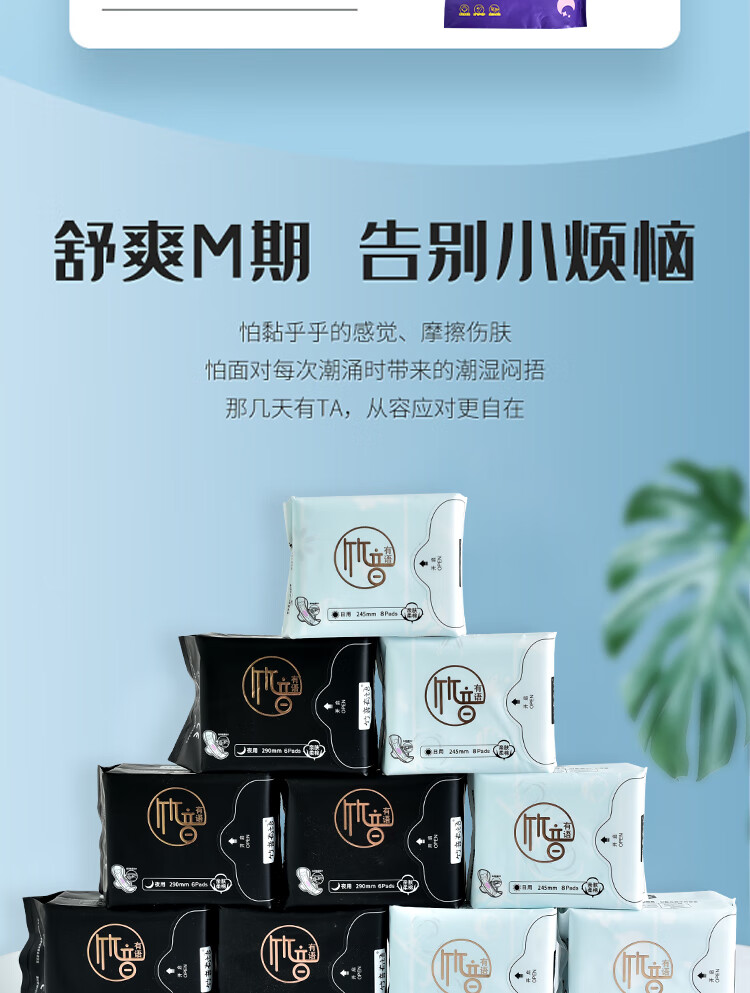 竹音有语红豆杉卫生巾【高端】负离子芯片夜用超长纯棉柔日用迷你巾大姨妈 6包任意组合【联系客服备注】
