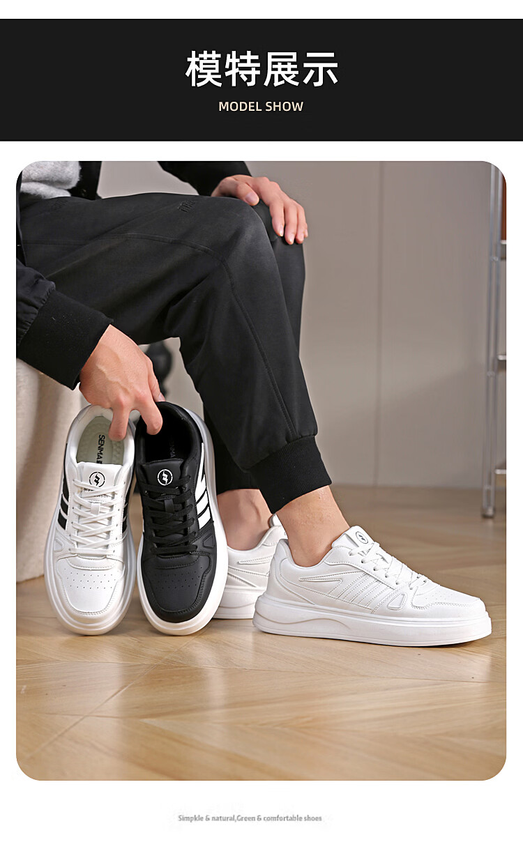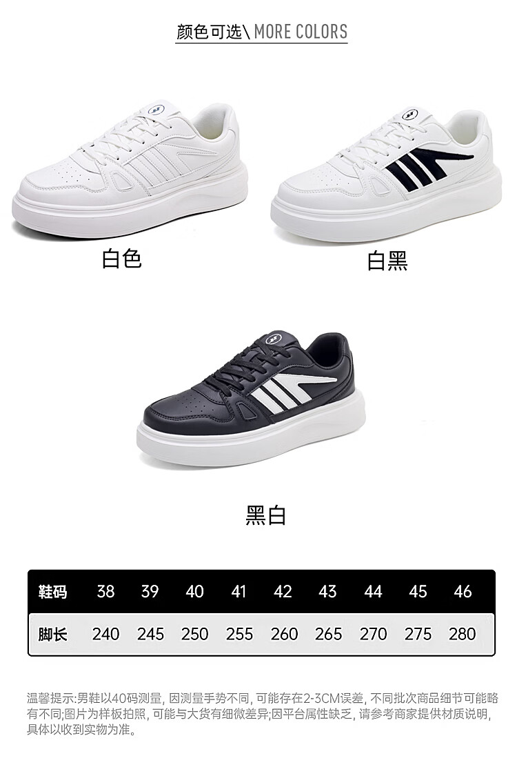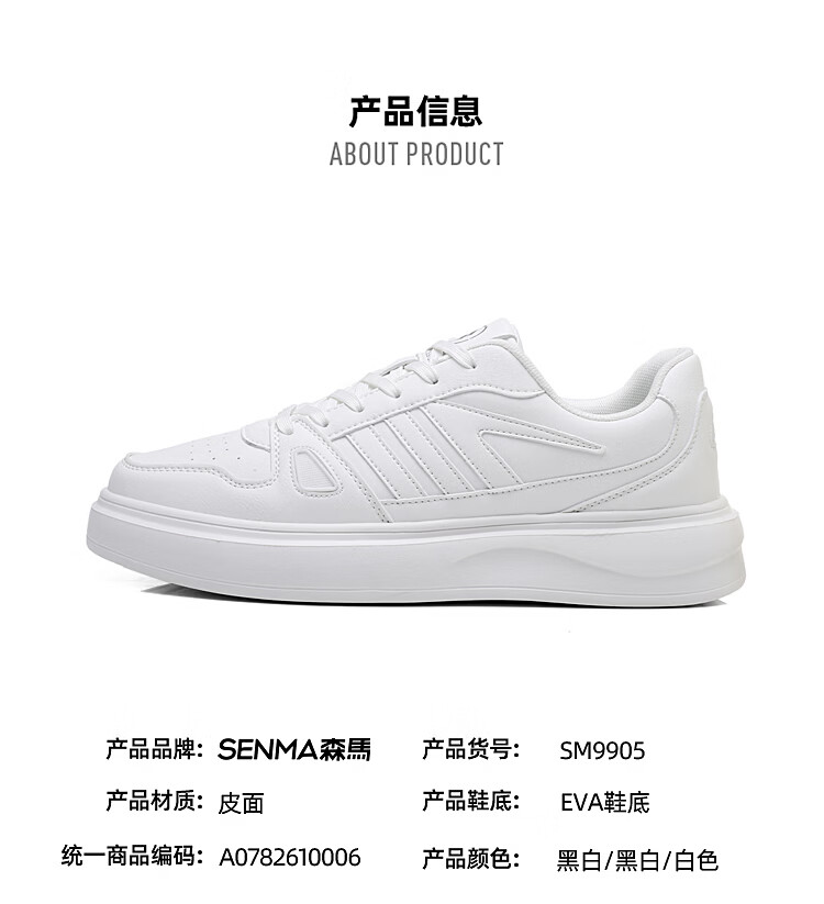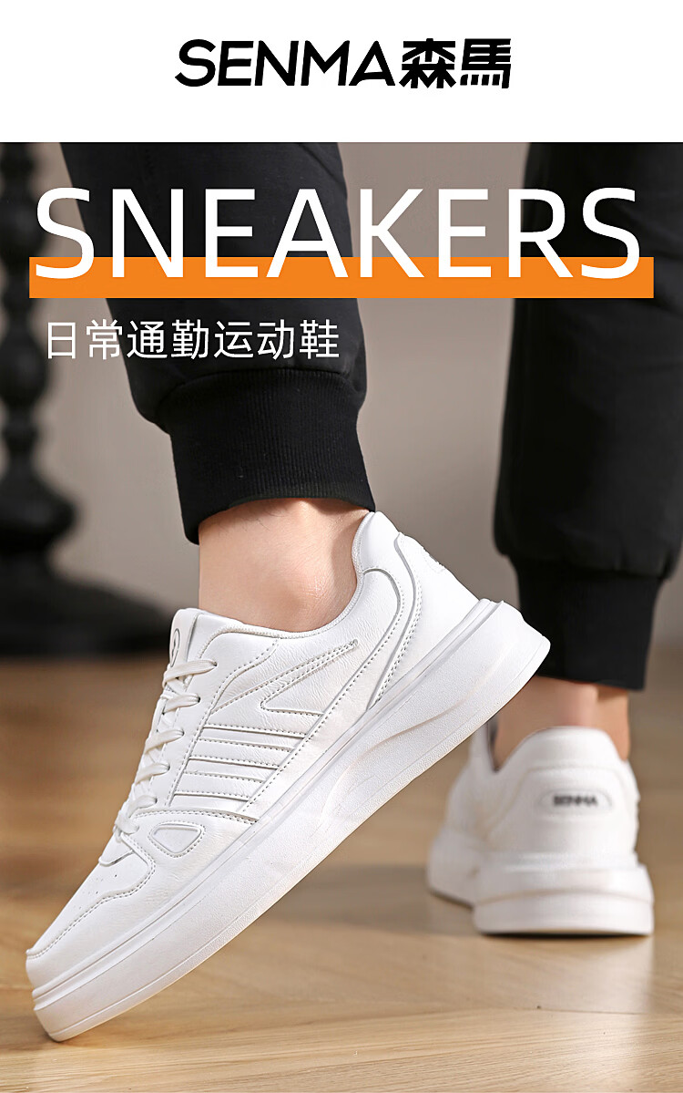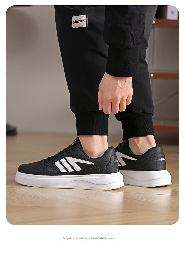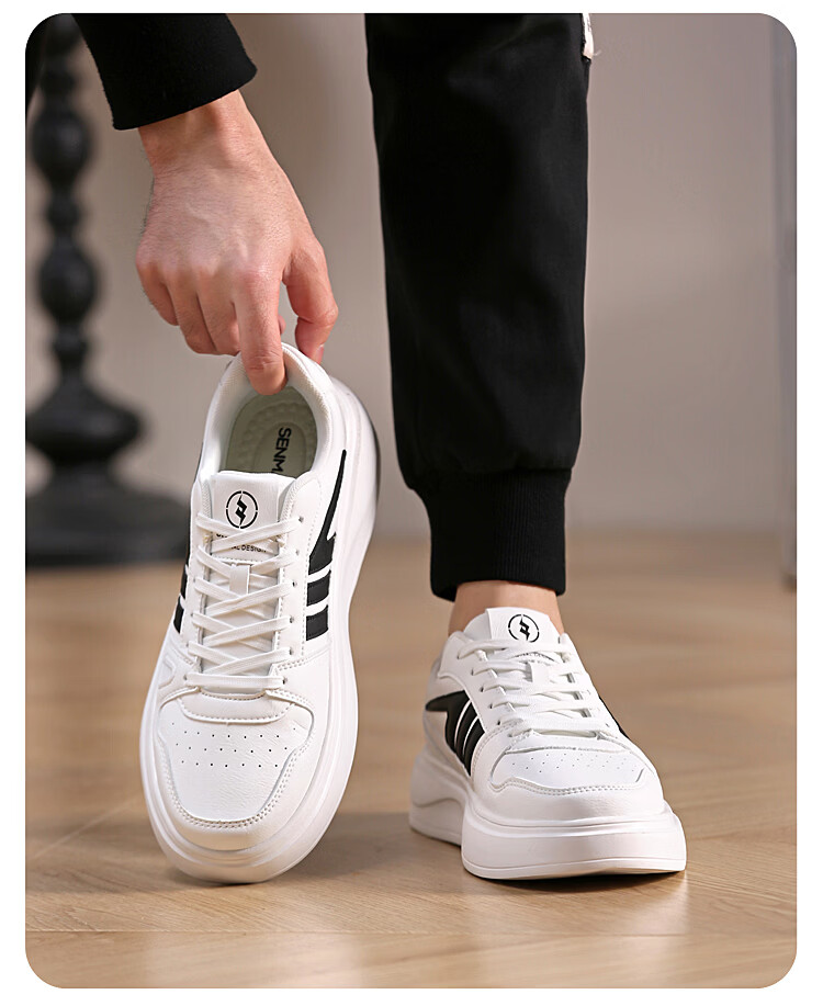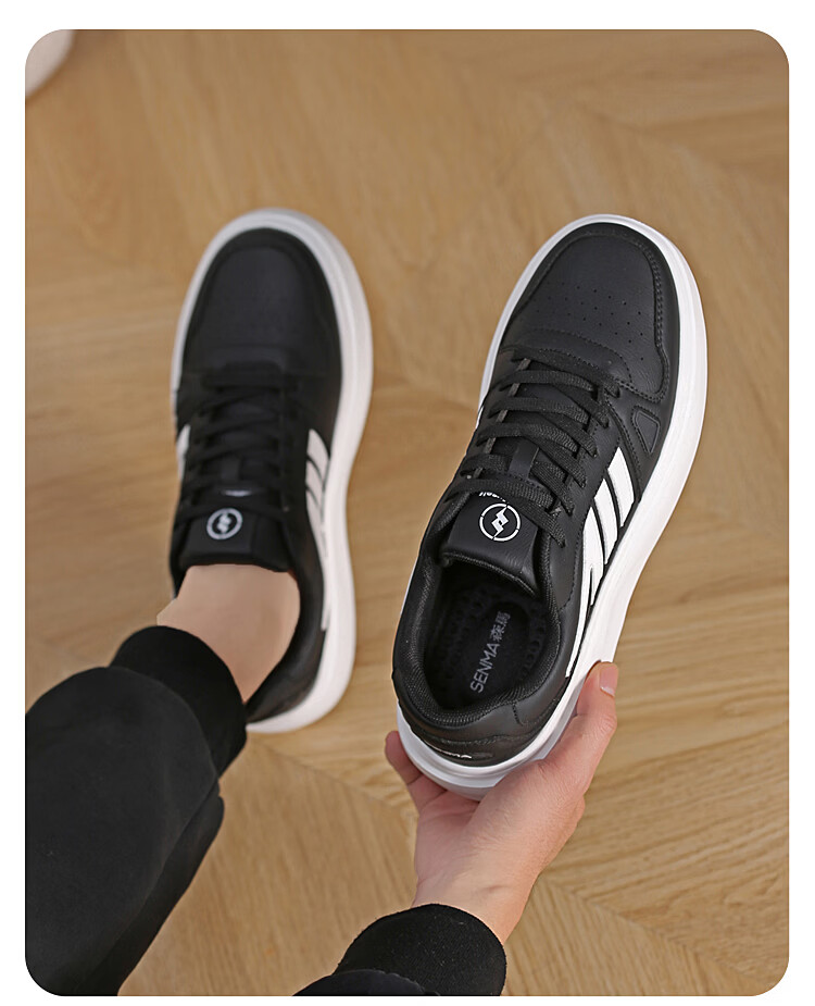 森馬(senma)森马春季新款小白鞋男士板鞋休闲鞋百搭时尚男鞋男运动鞋软底透气 白黑 35