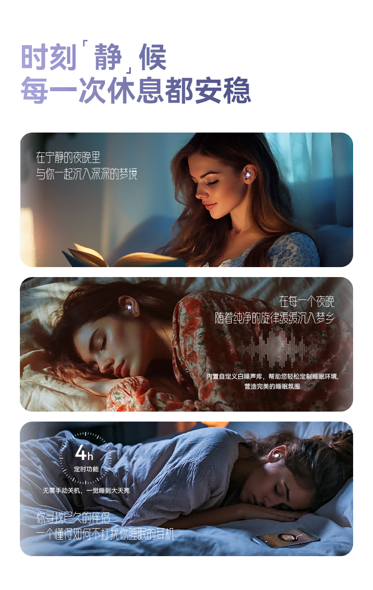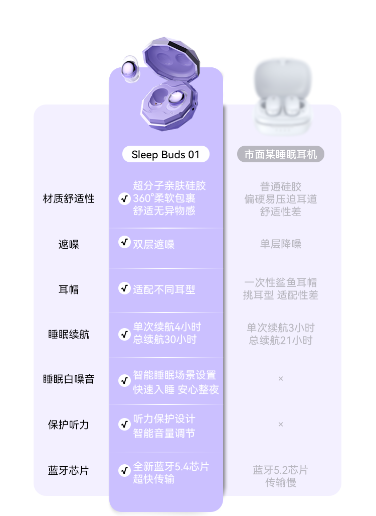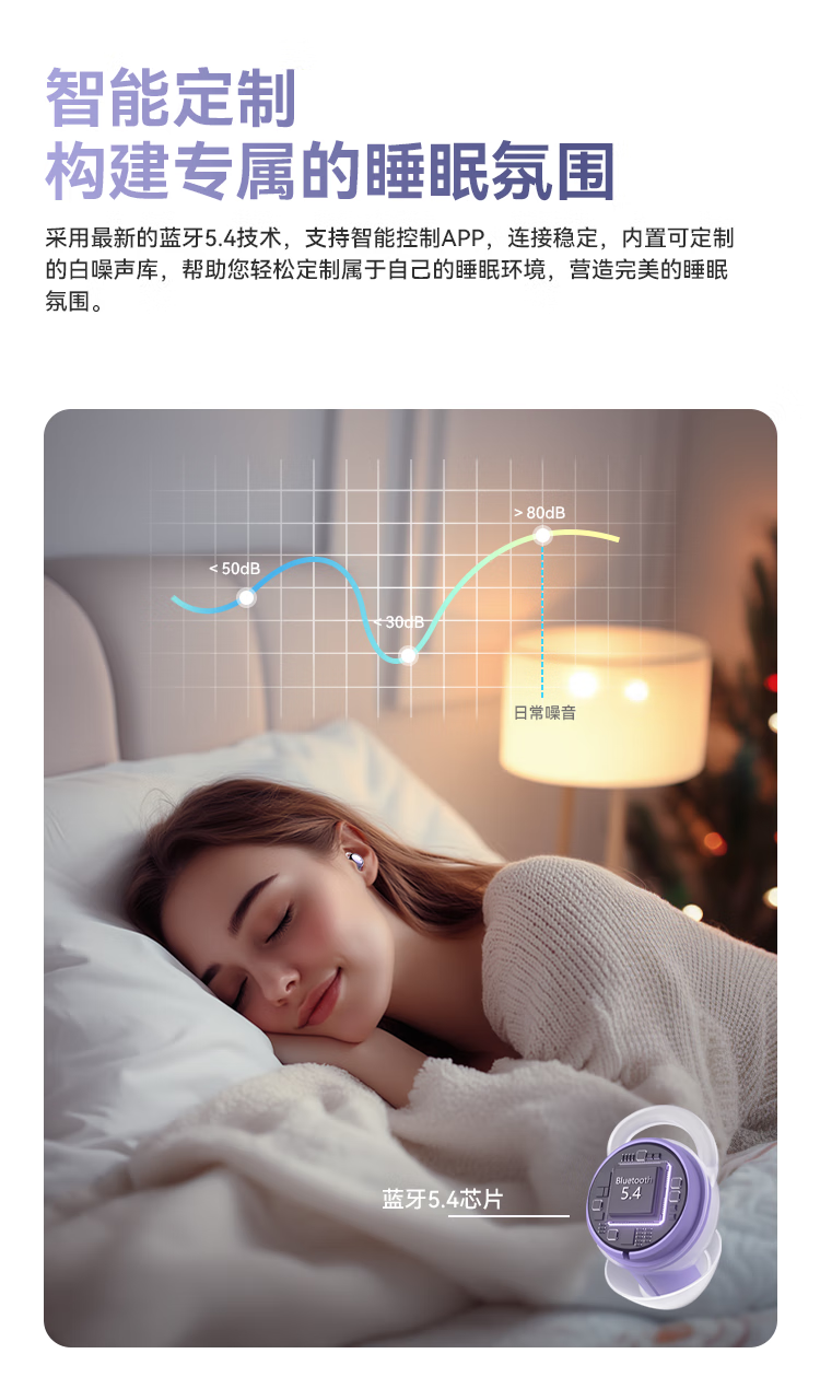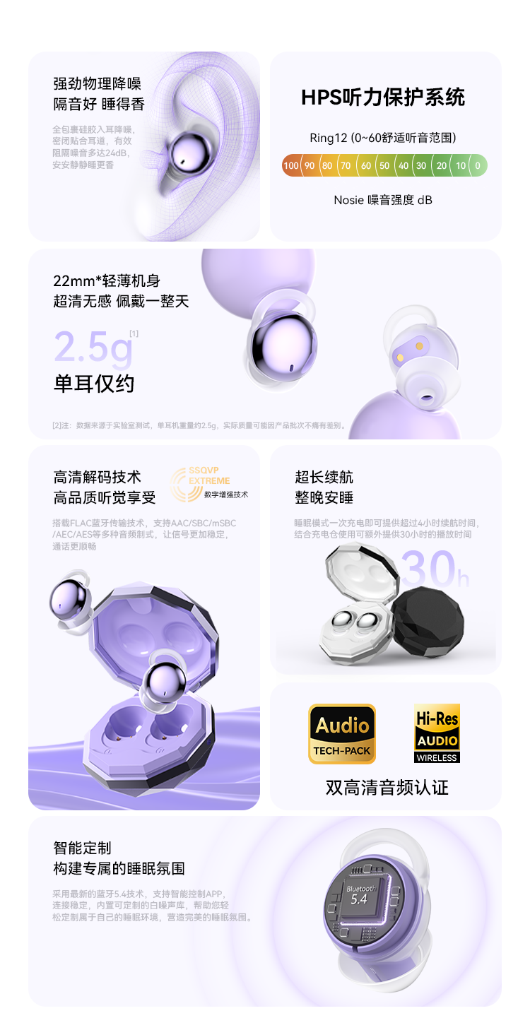 SLUB【2025新款】睡眠蓝牙耳机无线入耳式主动降噪睡觉专用侧睡不压耳asmr迷你耳塞隐形手机通用 梦幻紫【主动降噪|ACS全景音效】