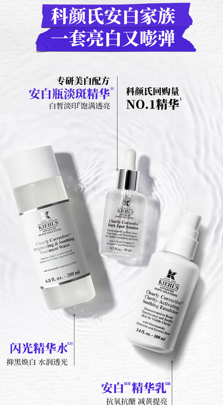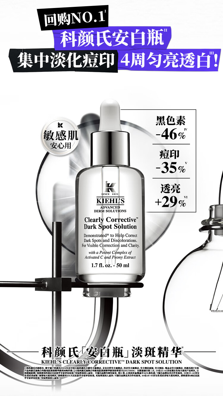 科颜氏(Kiehl's)安白瓶淡斑精华液30ml 美白紧致VC护肤品礼盒生日礼物