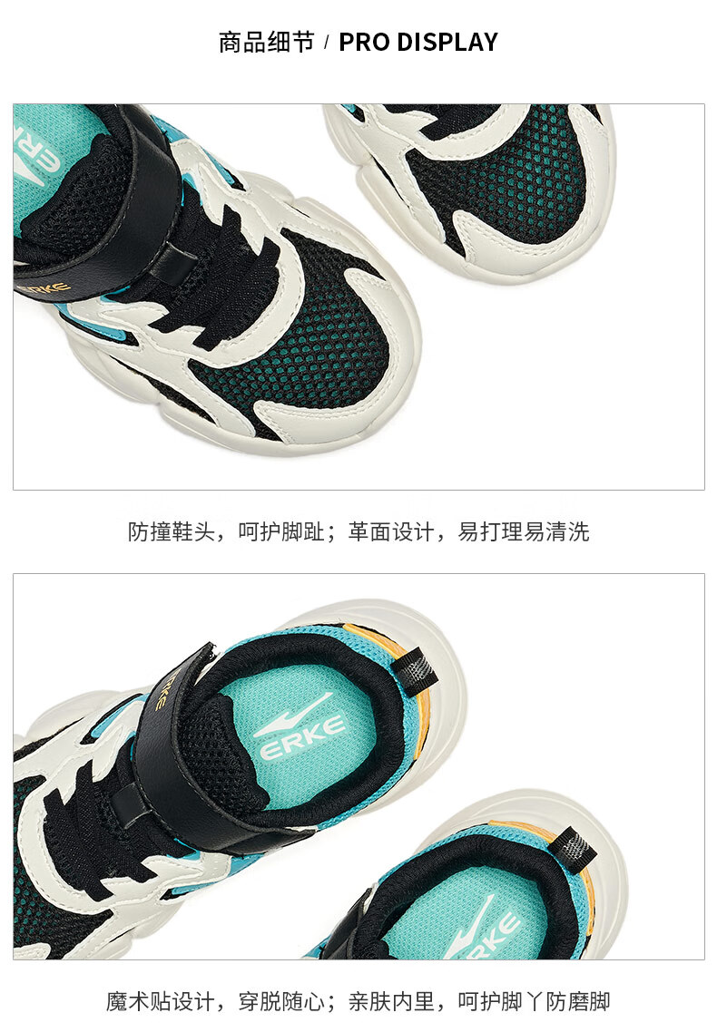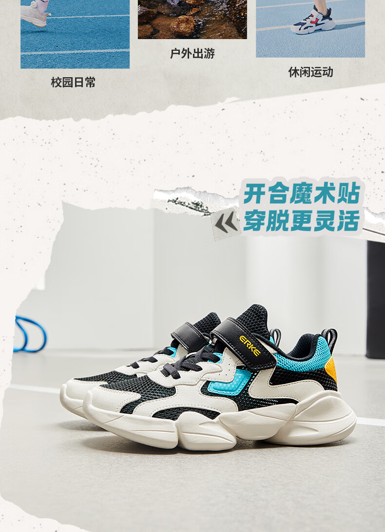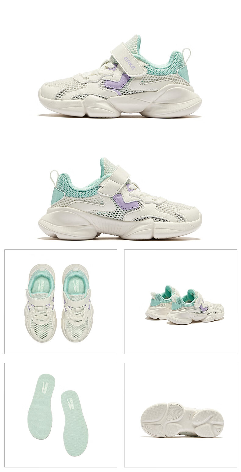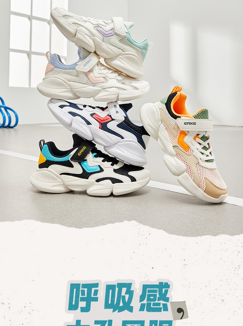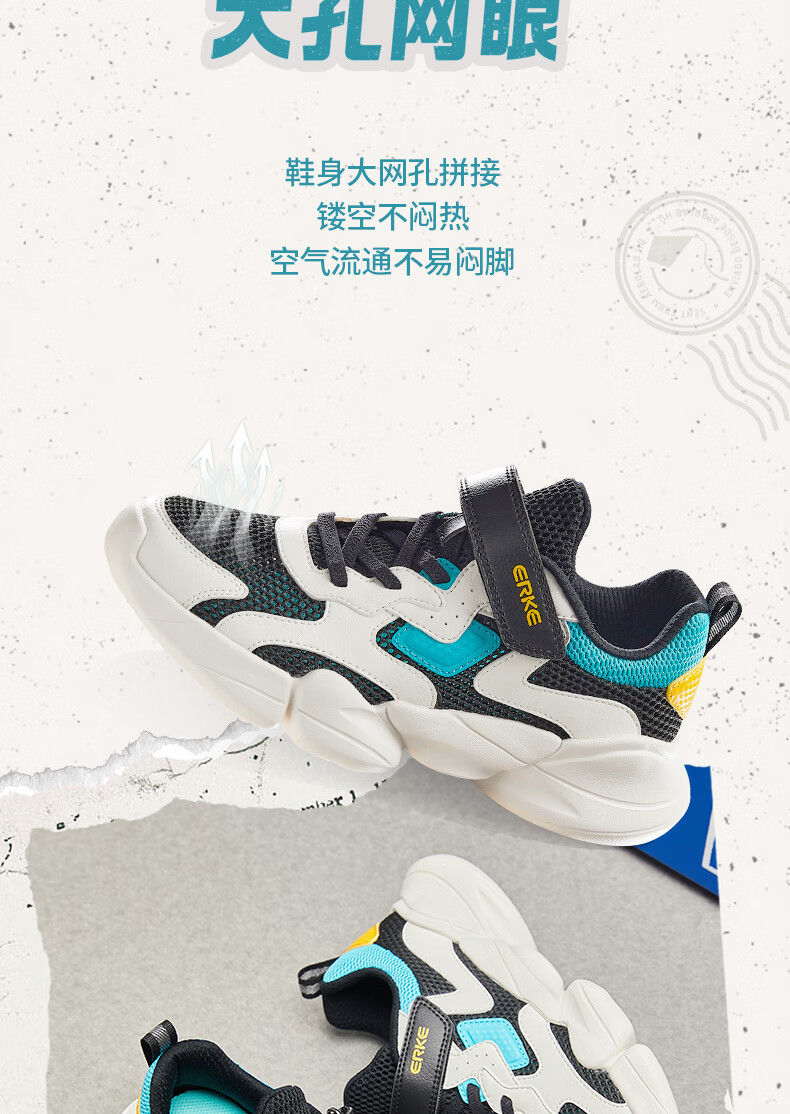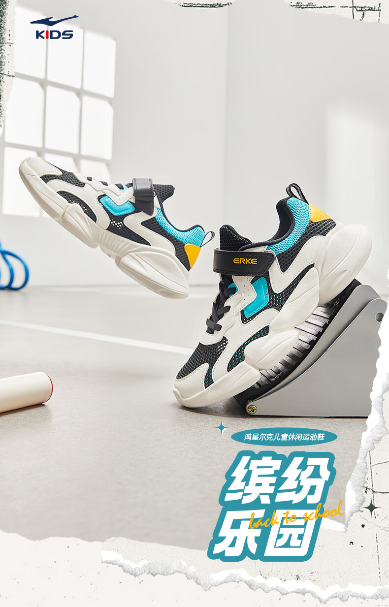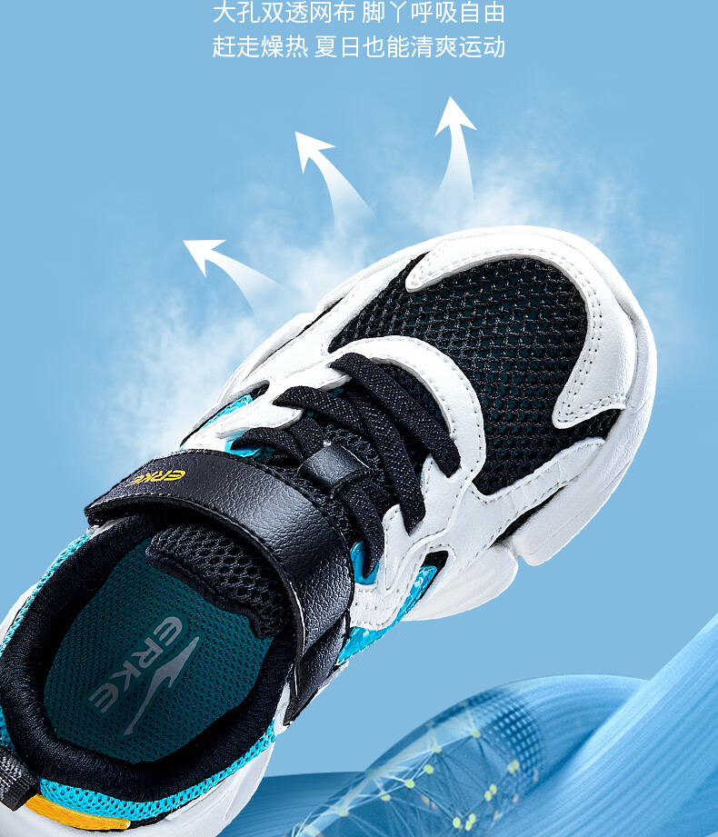 鸿星尔克(ERKE)童鞋中性大小童休闲鞋大网孔透气运动鞋微晶白/正黑33