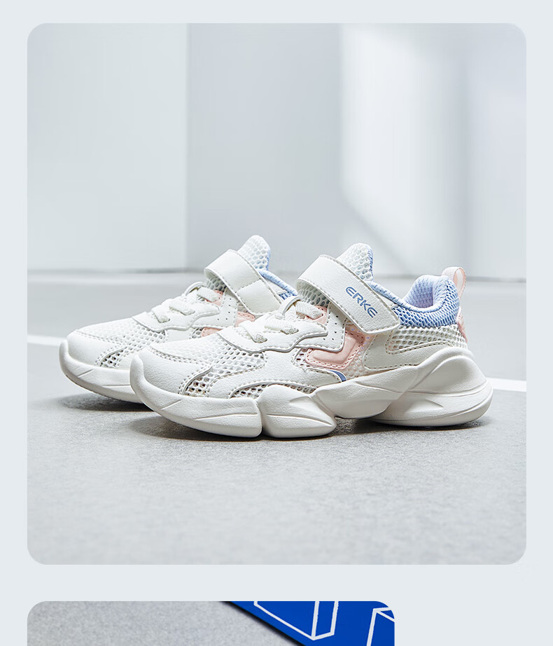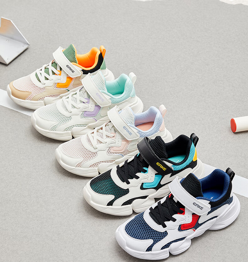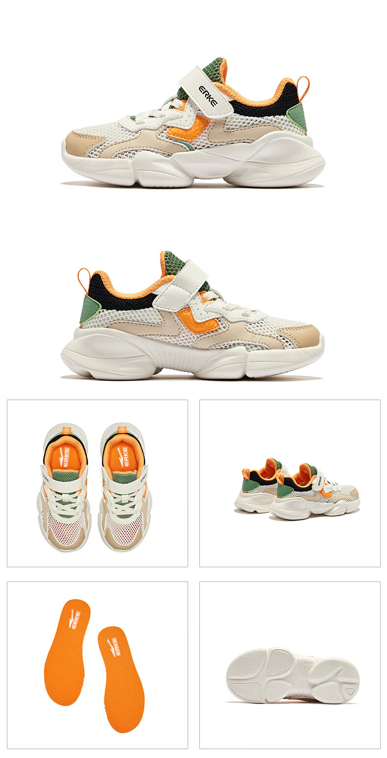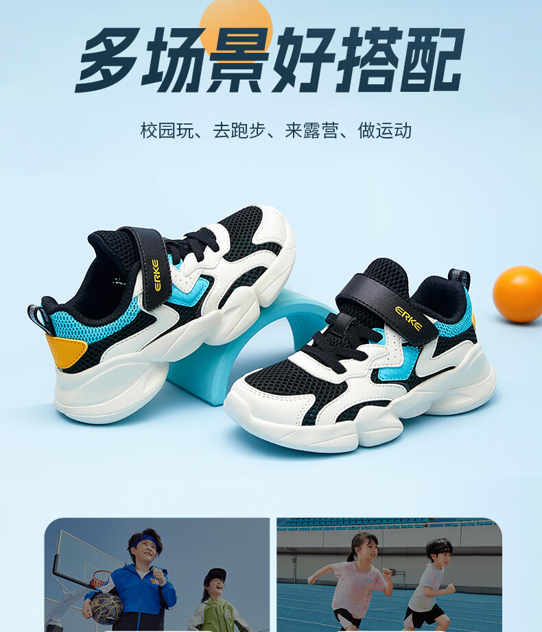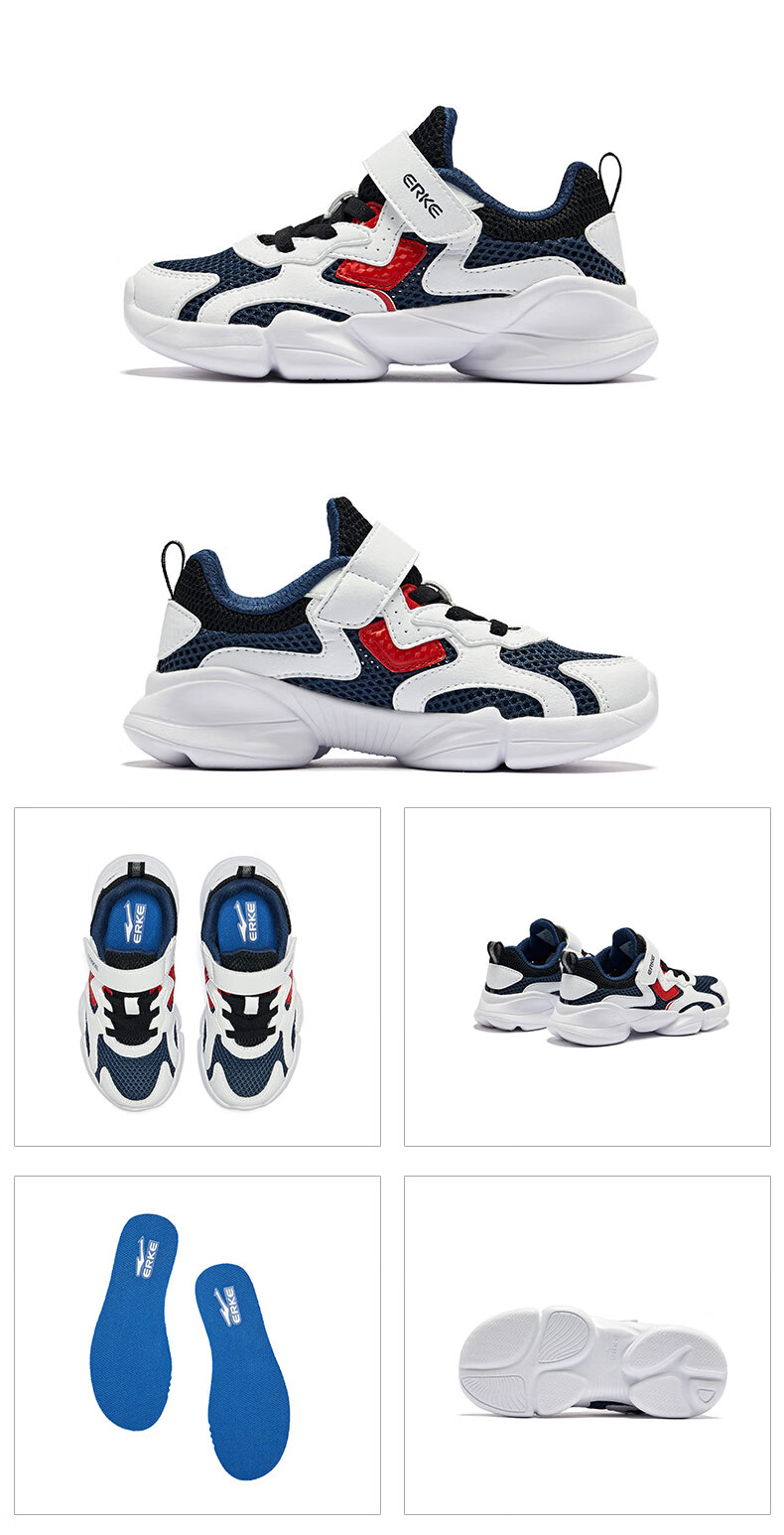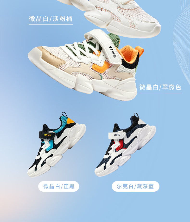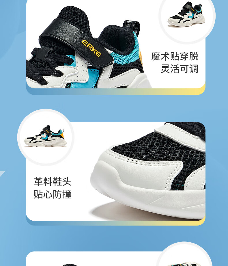 鸿星尔克(ERKE)童鞋中性大小童休闲鞋大网孔透气运动鞋微晶白/正黑33
