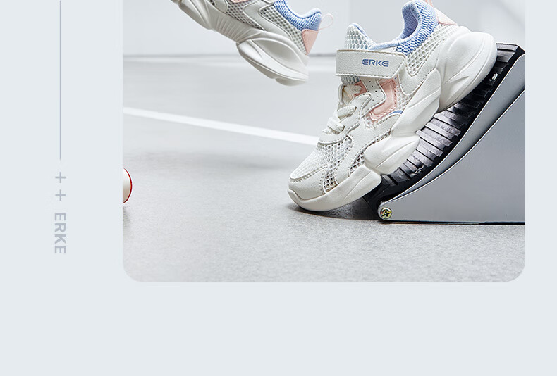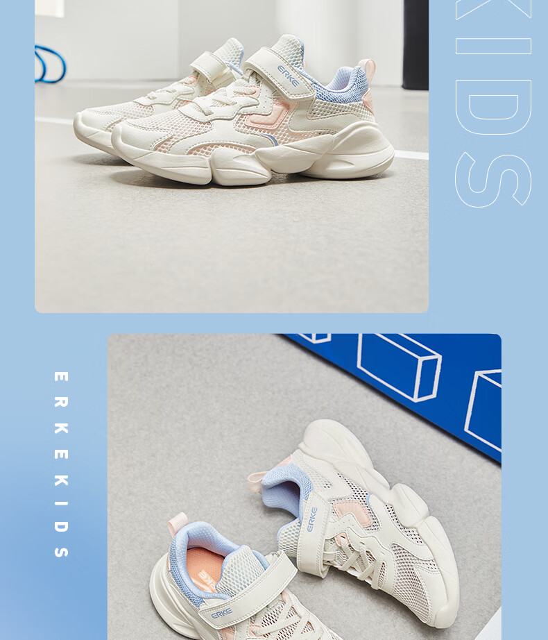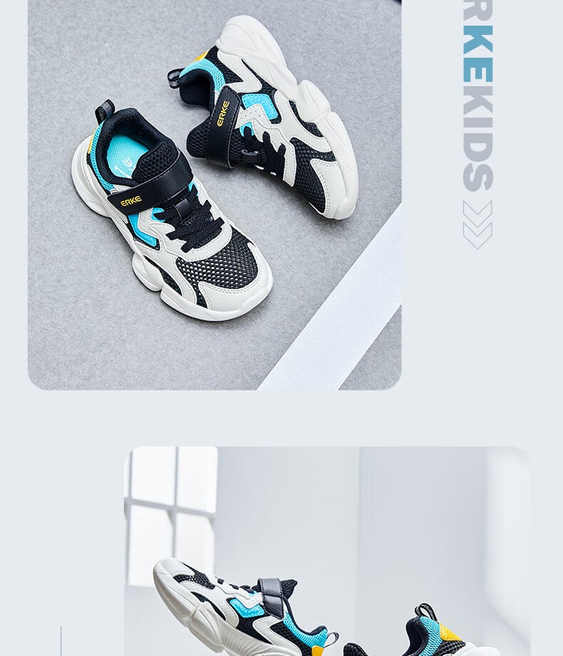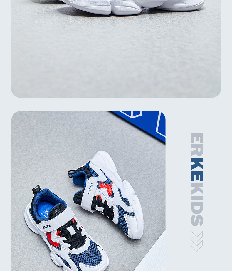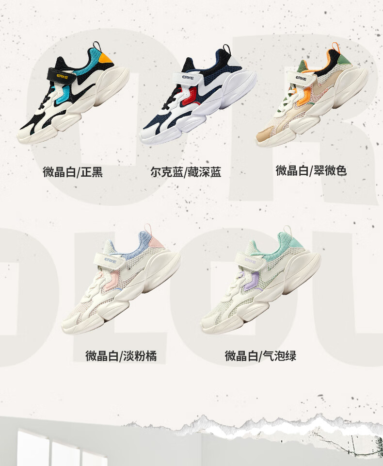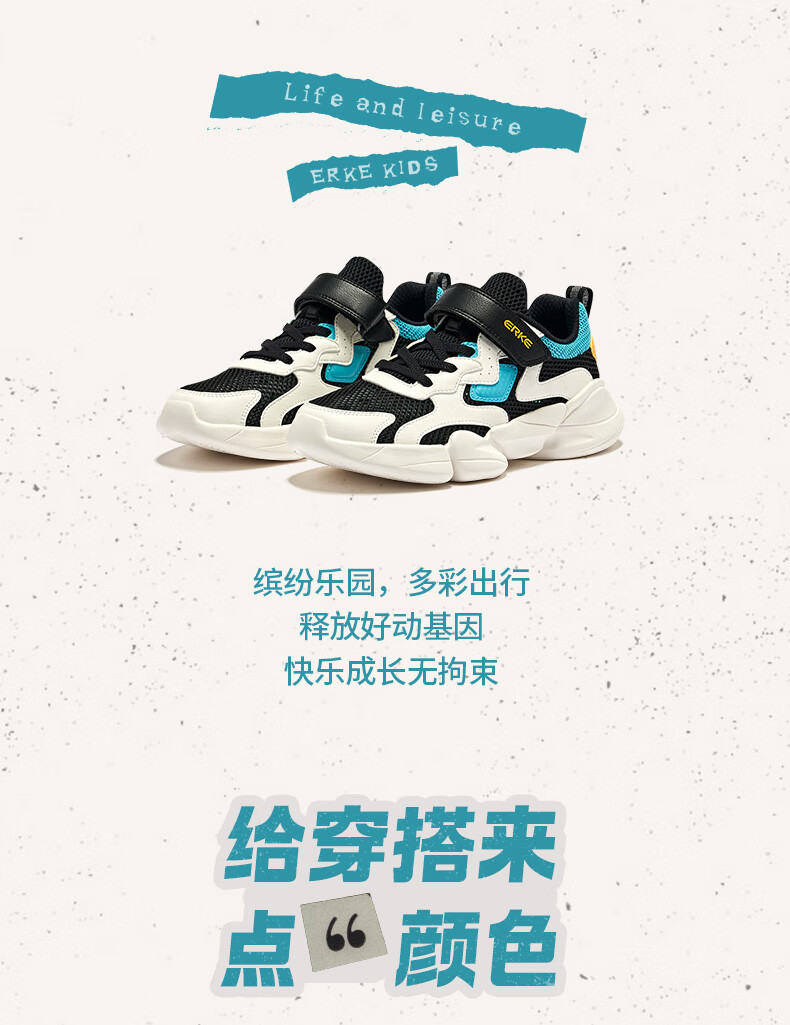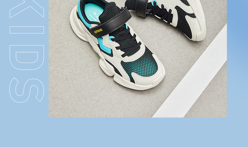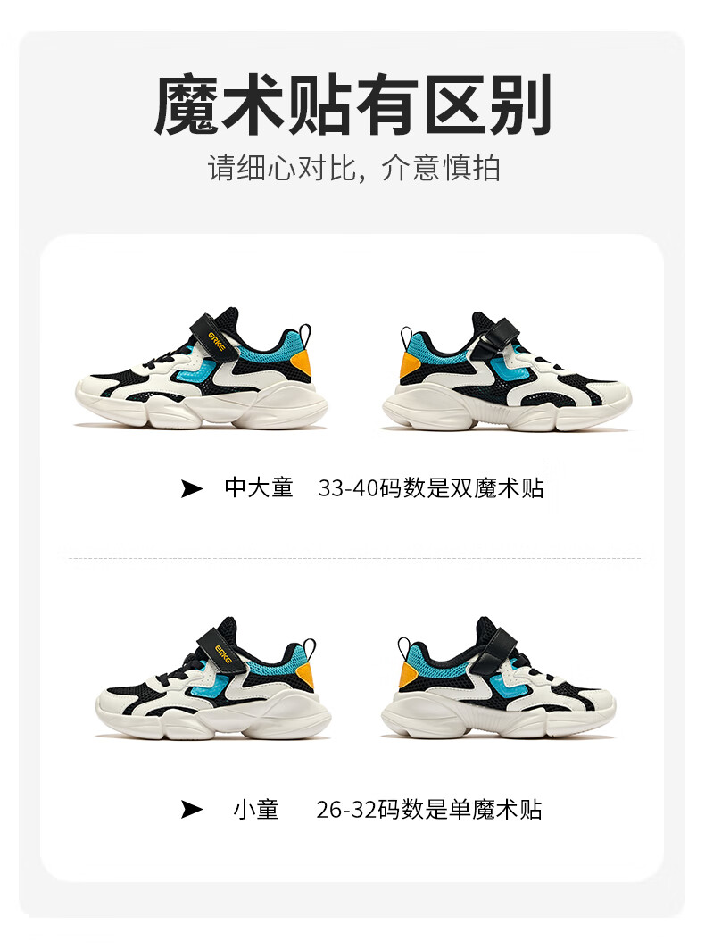 鸿星尔克(ERKE)童鞋中性大小童休闲鞋大网孔透气运动鞋微晶白/正黑33