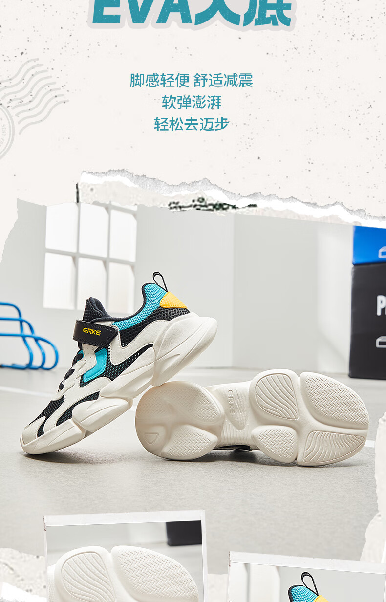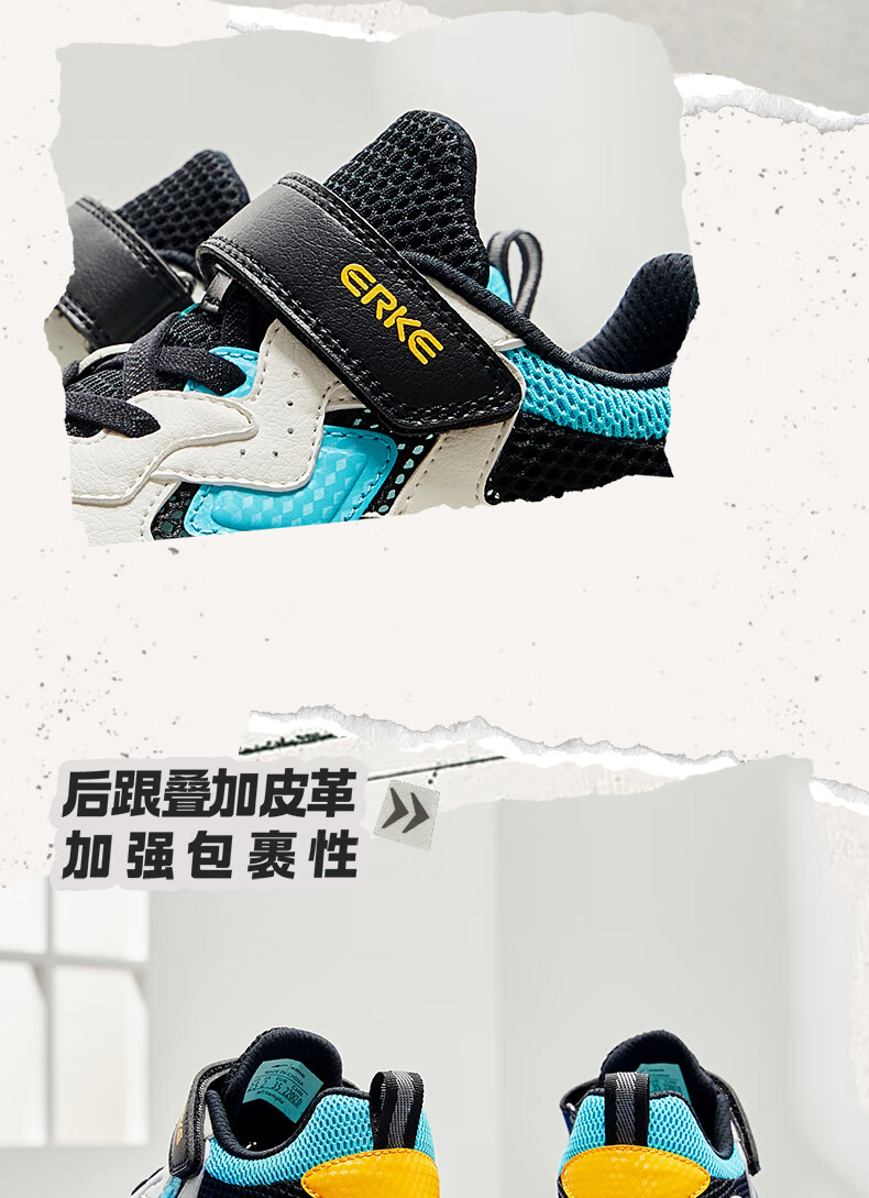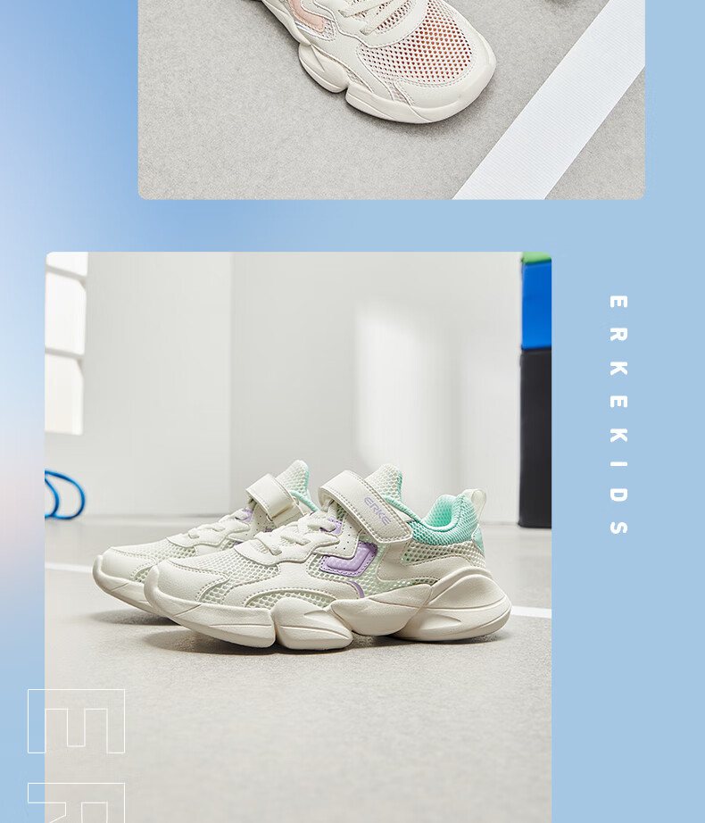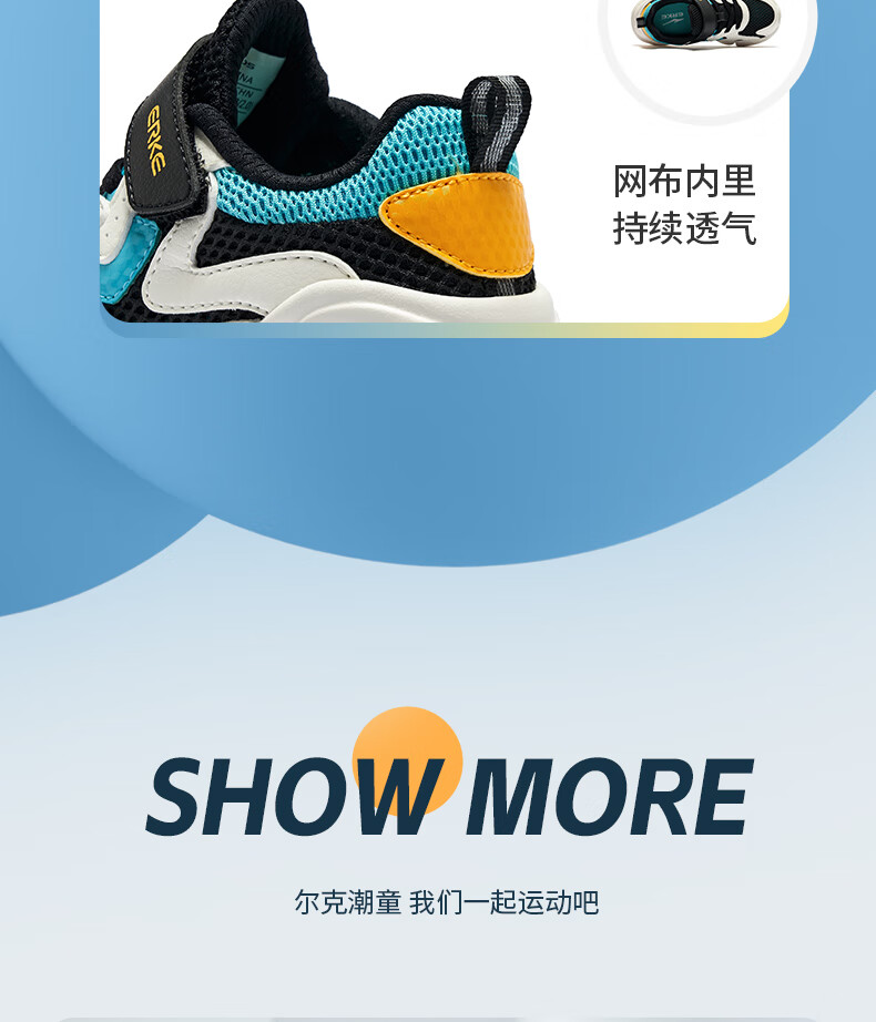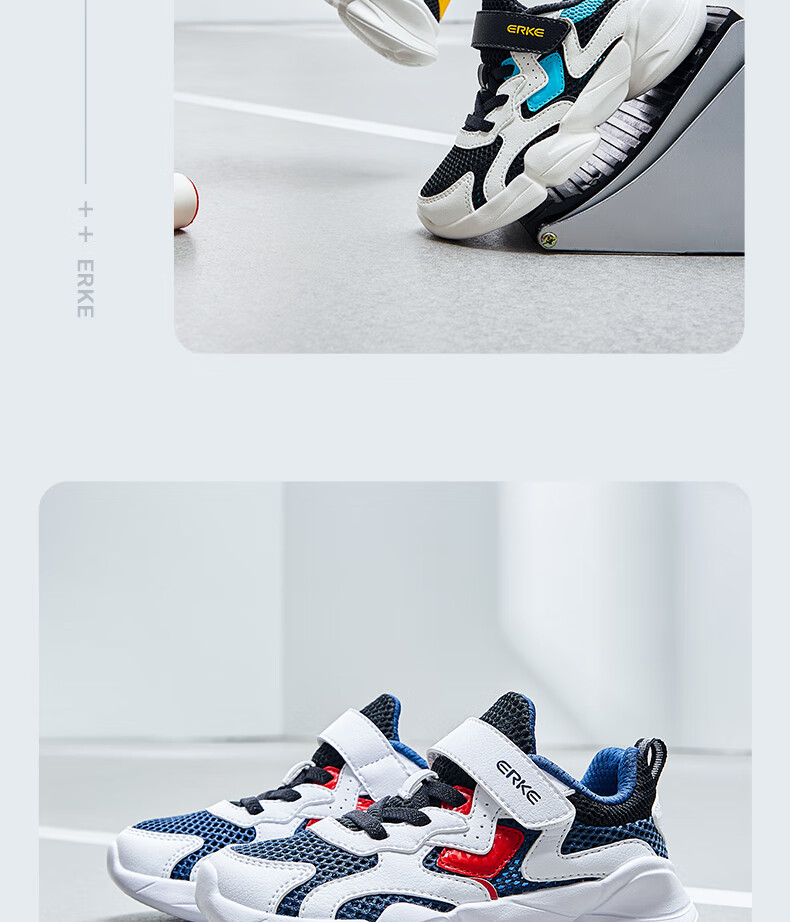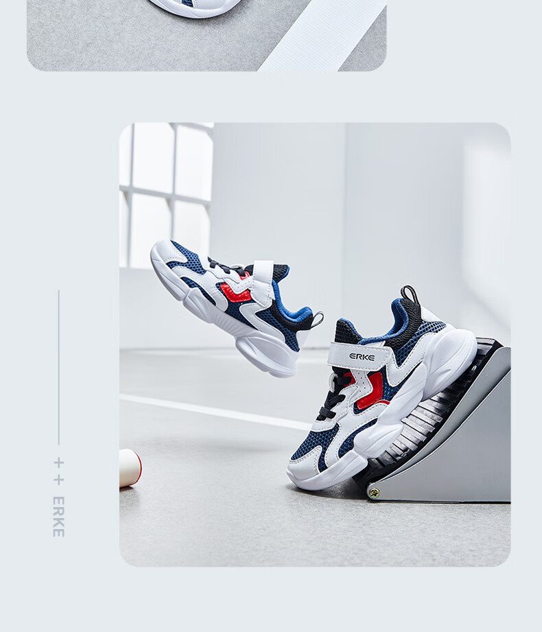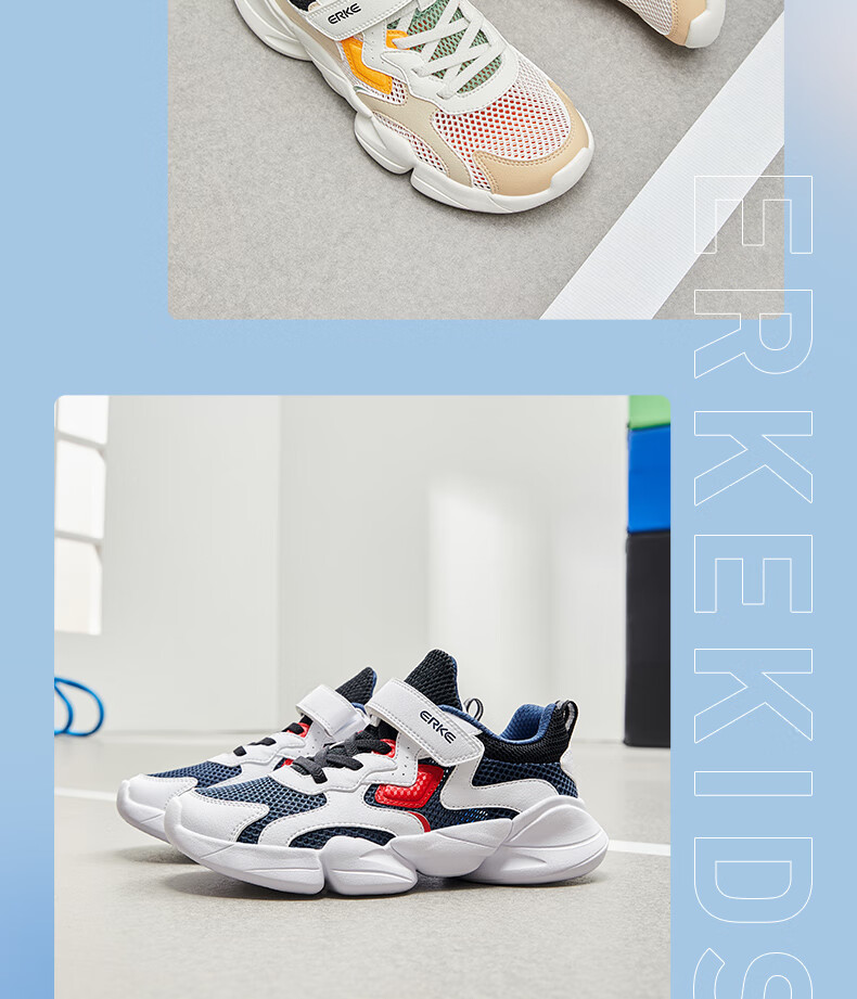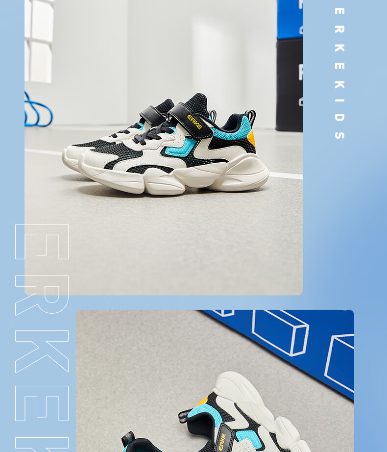 鸿星尔克(ERKE)童鞋中性大小童休闲鞋大网孔透气运动鞋微晶白/正黑33
