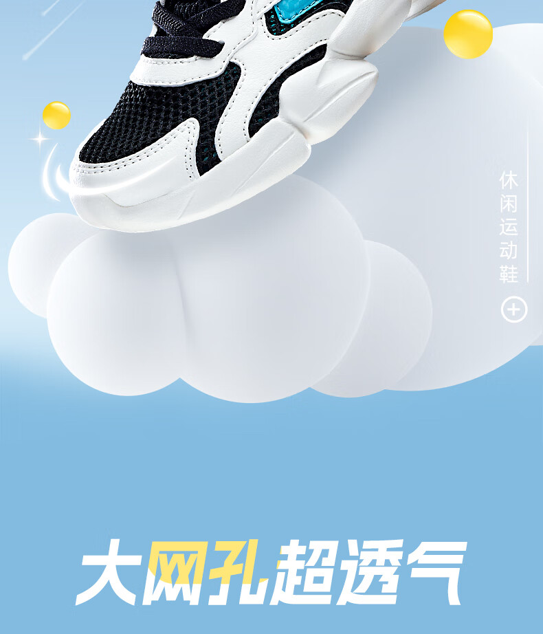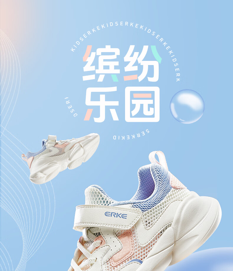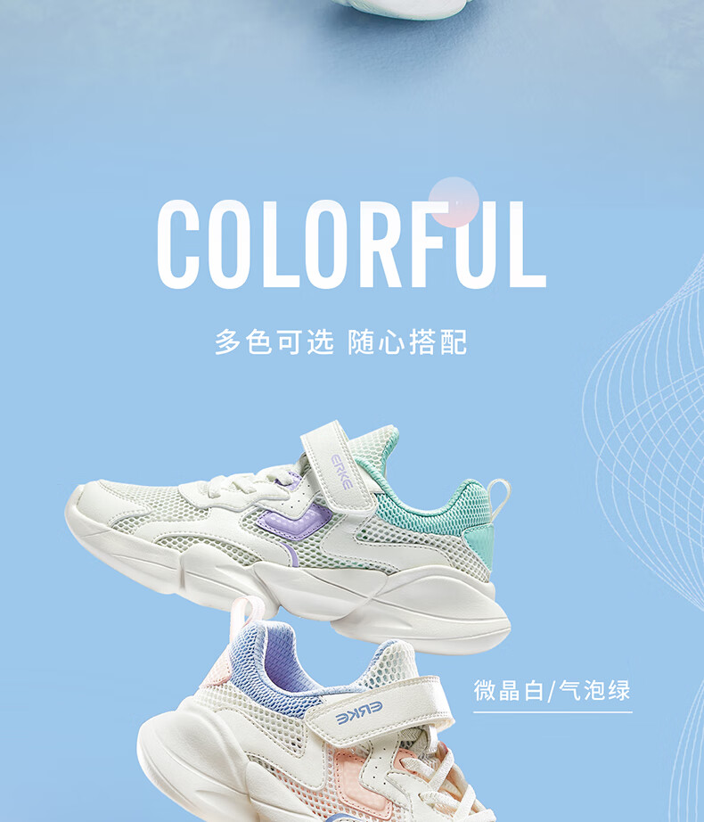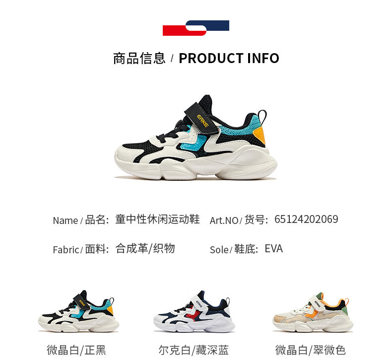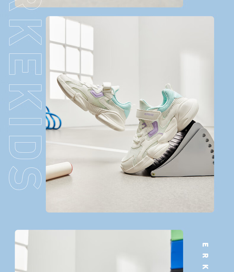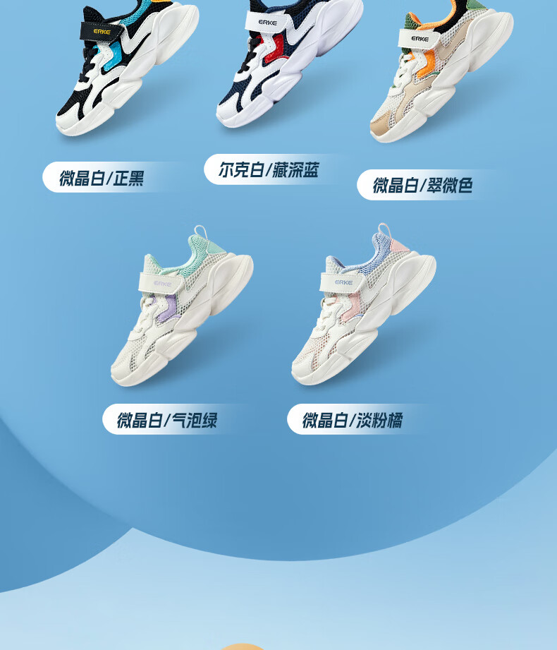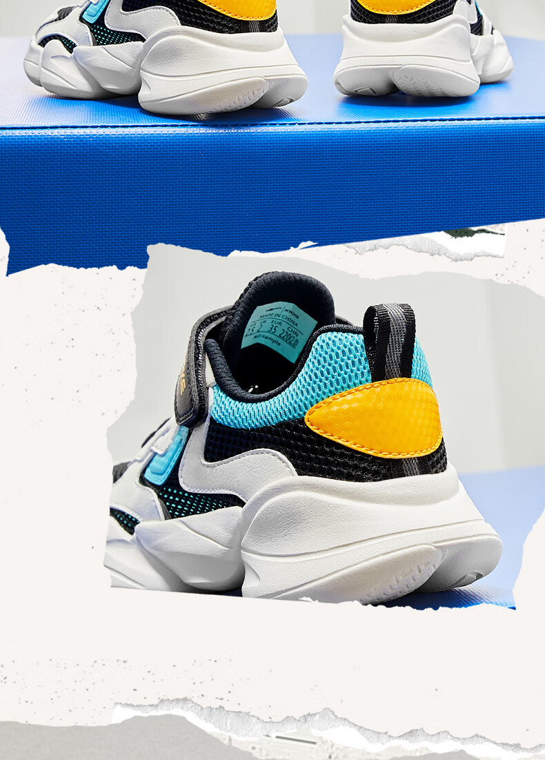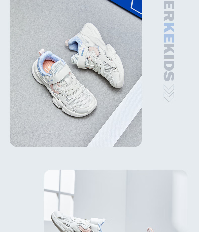鸿星尔克(ERKE)童鞋中性大小童休闲鞋大网孔透气运动鞋微晶白/正黑33
